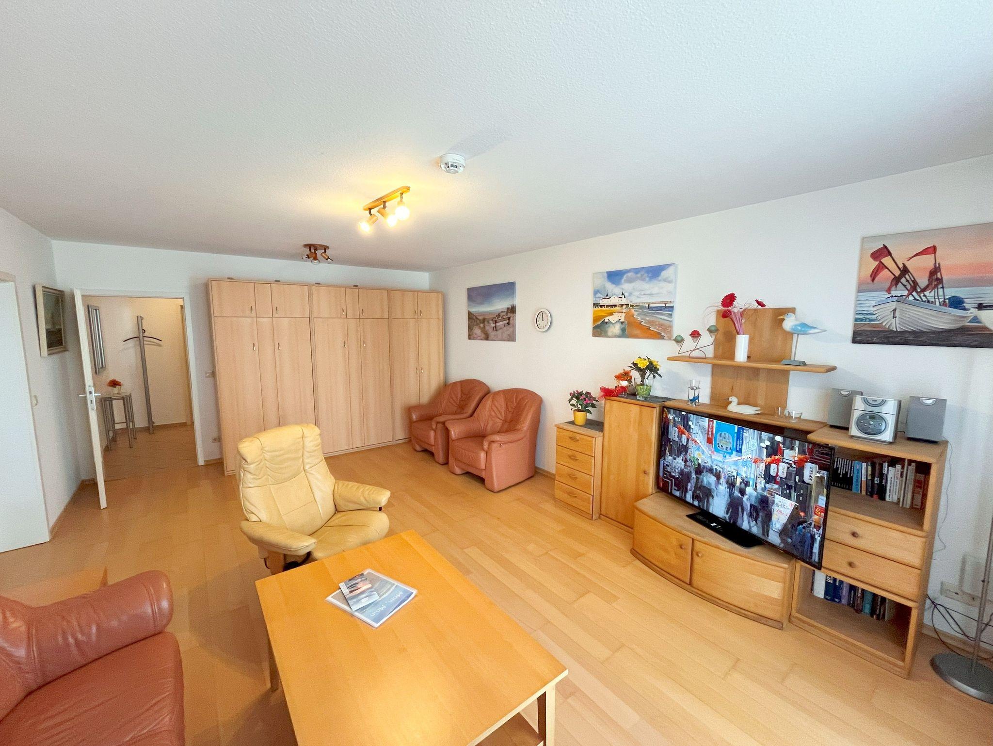 Diese gemütlich eingerichtete Ferienwohnung befindet sich im Erdgeschoss einer charmanten Appartement-Anlage und bietet Ihnen eine kleine, möblierte Terrasse, auf der Sie entspannen können. In nur etwa 3 Minuten Fußweg erreichen Sie die wunderschöne Strandpromenade des Seebades Ahlbeck sowie den feinen Sandstrand - ideal für entspannte Tage am Meer. Das Ortszentrum mit seinen zahlreichen Geschäften und Restaurants ist ebenfalls nur ca. 500 m entfernt, sodass Sie alles Wichtige bequem zu Fuß erreichen können. Für Ihren Komfort steht Ihnen ein kostenfreier Stellplatz direkt vor dem Haus zur Verfügung. Wenn Sie mit dem Fahrrad unterwegs sind, können Sie Ihre Räder in einem separaten Abstellraum unterbringen oder die kostenfrei zur Verfügung gestellten Fahrräder nutzen. Diese finden Sie im Wohnungskeller (zweite Tür links). Bitte beachten Sie, dass der Vermieter keine Haftung für Schäden oder Verlust der Räder übernimmt. Bei eventuellen Schäden bitten wir Sie, die Räder bei den ansässigen Unternehmen instand setzen zu lassen. Und das Beste: Ihr kleiner Vierbeiner (bis 30 cm Schulterhöhe) ist herzlich willkommen! Eine kleine Gebühr fällt hierfür an. Zudem steht Ihnen ein kostenfreies W-LAN-Netz zur Verfügung, damit Sie immer verbunden bleiben können.