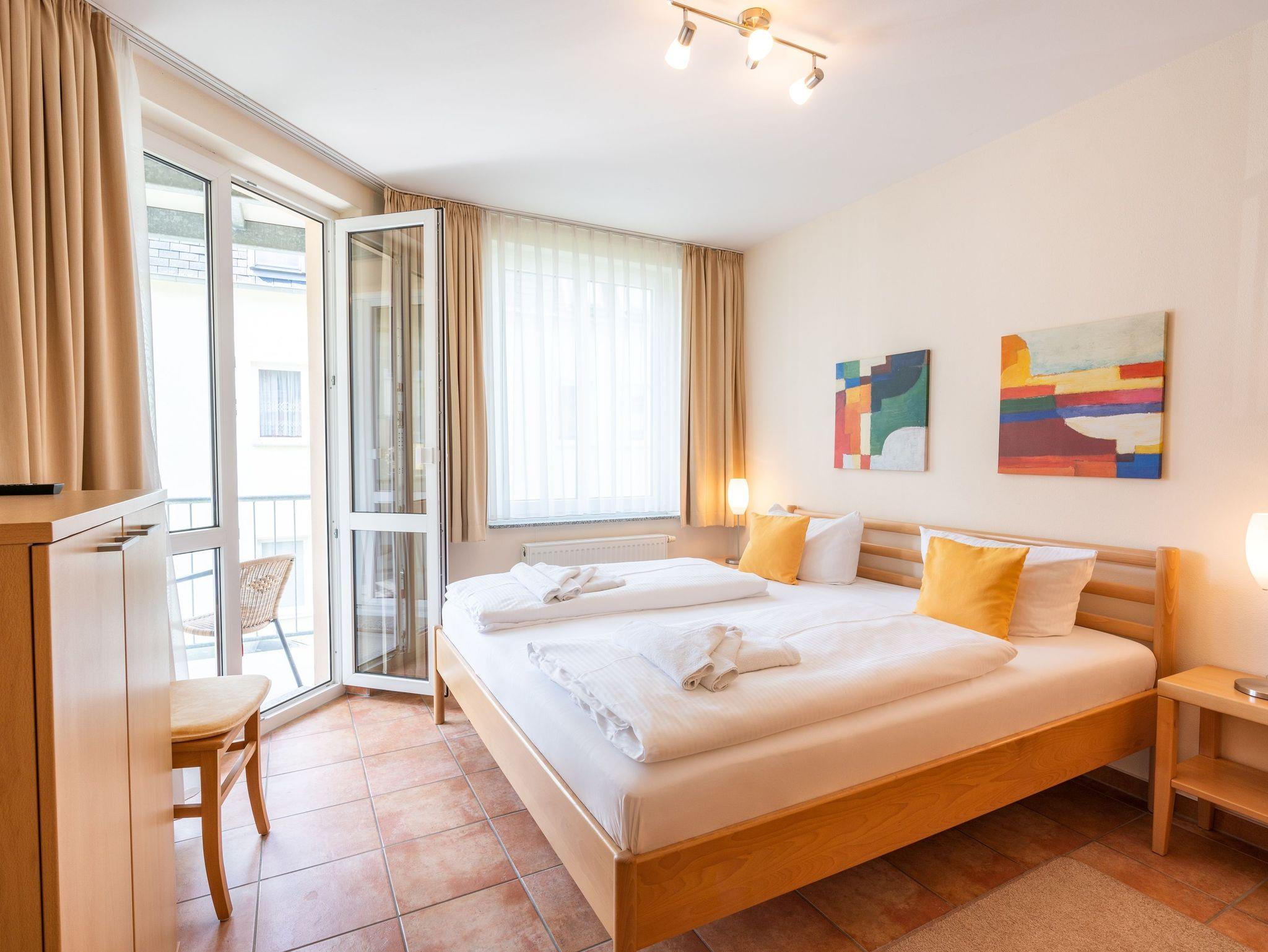 Die helle und freundliche Ferienwohnung befindet sich im Erdgeschoss des Neubaus der Villa Linquenda. Die 65 qm große Wohnung ist hochwertig eingerichtet und bietet Platz für bis zu vier Personen. Sie verfügt über ein Wohnbereich mit Sitzgruppe & Flat-TV, eine komplett ausgestattete Küchenzeile, ein Schlafzimmer mit Doppelbett ( 1,80m x 2,00m) und zusätzlichem Flat-TV sowie ein zweites Schlafzimmer mit zwei Einzelbetten. Das Bad verfügt über eine Dusche und WC. Zwei Balkone runden das Angebot der Wohnung ab.