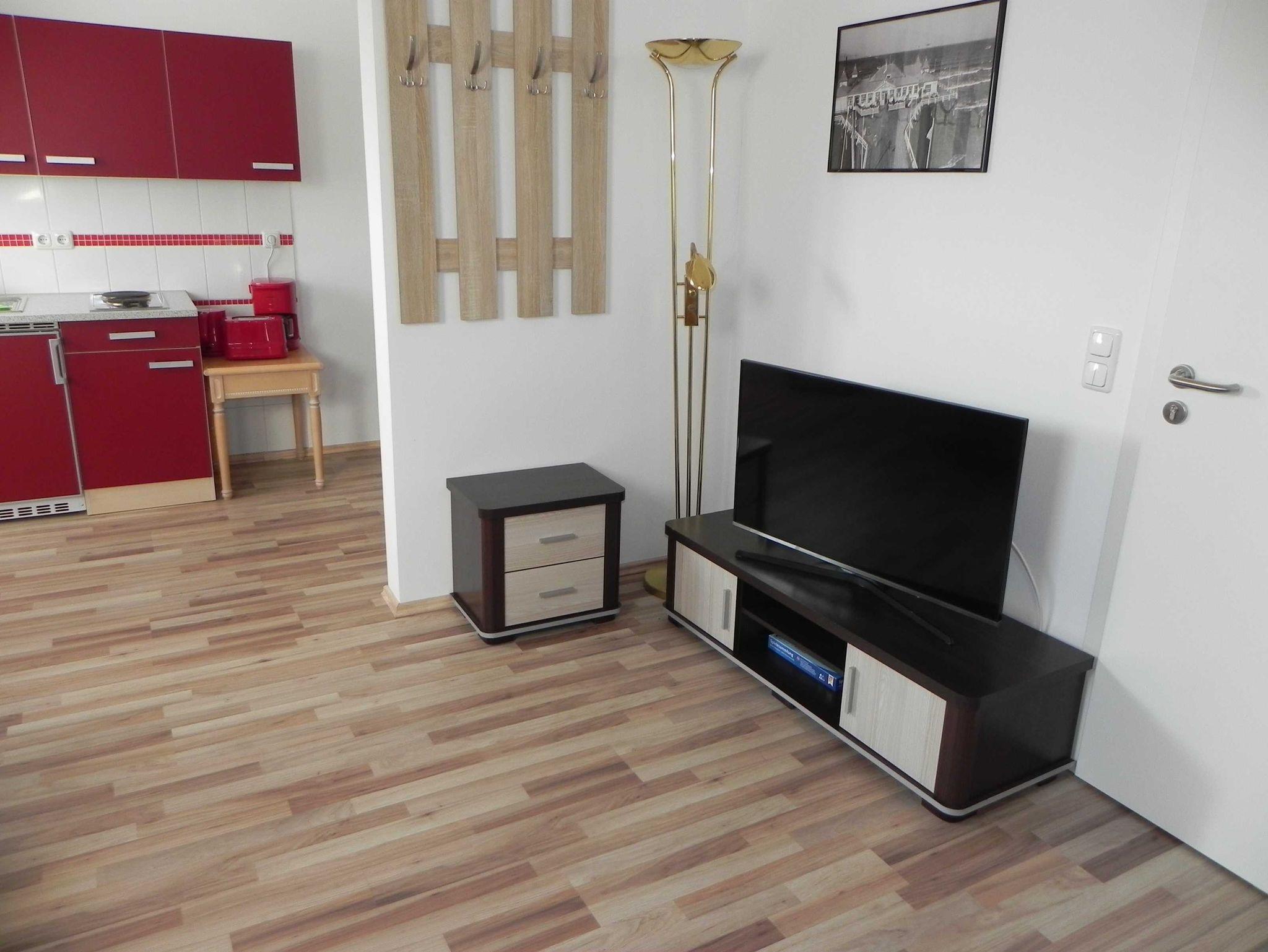 Die ca. 30 qm große neu renovierte 1 Raum Ferienwohnung befindet sich im Dachgeschoss und ist ideal für 2 Personen geeignet. Der Schlafbereich mit Doppelbett und Kleiderschrank befindet sich in dem offenen Wohnraum, optisch von der Sitzecke getrennt. Innerhalb der Ferienwohnung befindet sich eine kleine Küchzeile. Diese verfügt über 2 Kochplatten, Kühlschrank, Spüle, Wasserkocher, Toaster und Geschirr. Das große Bad mit Fenster verfügt über eine große Dusche und WC. Die Erstausstattung Bettwäsche und Handtücher ist im Preis enthalten.