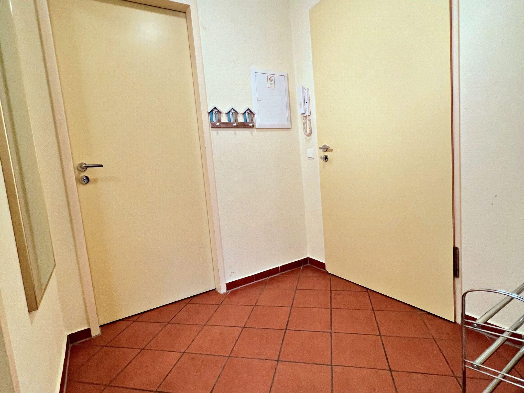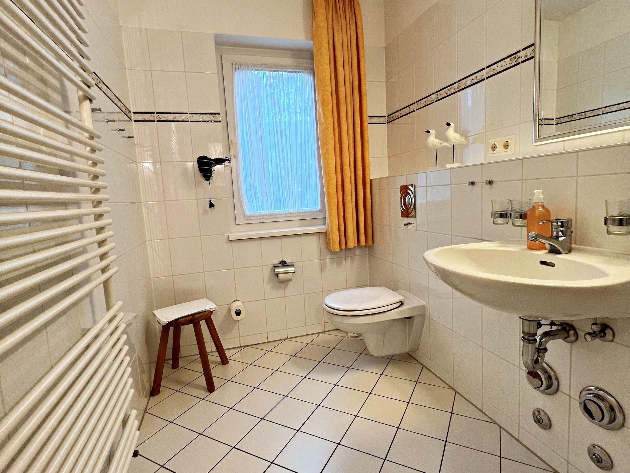 Diese 46 qm große helle und freundliche 2-Raum-Ferienwohnung befindet sich im Erdgeschoss (Süd-Ostlage) der Appartementanlage und hier können bis zu 4 Personen einen erholsamen Urlaub verleben. Die Wohnung verfügt über ein Wohnzimmer mit einem gemütlichen Sofa, welches auch zum Schlafen geeignet ist. Für die Unterhaltung sorgt ein Flachbild-TV und eine Stereo-Anlage. Die vollständig ausgestattete Küche mit Ceranherd, Backofen, Mikrowelle, Kühlschrank mit Gefrierfach und Spülmaschine lässt keine Wünsche offen. Im gemütlichen Schlafzimmer befindet sich ein Doppelbett (2,10 m lang) sowie ein zweiter Flachbild-TV. Das Tageslicht-Bad ist mit Dusche/WC, Haarfön nebst Kosmetikspiegel ausgestattet. Eine Terrasse lädt zum Sitzen und Verweilen ein. Hier können Sie bei schönstem Wetter schon morgens Ihren Kaffee genießen oder den Tag bei Glas Wein ausklingen lassen. WLAN steht Ihnen in der gesamten Wohnung kostenfrei zur Verfügung. Ein Kinderbett mit Wäsche sowie ein Hochstuhl können auf Anfrage gegen eine Gebühr von einmalig 50 € vom Verwalter zur Verfügung gestellt werden. In der Zeit vom 15.04. bis 15.10. steht ein Strandkorb am Strand zur Nutzung zur Verfügung.