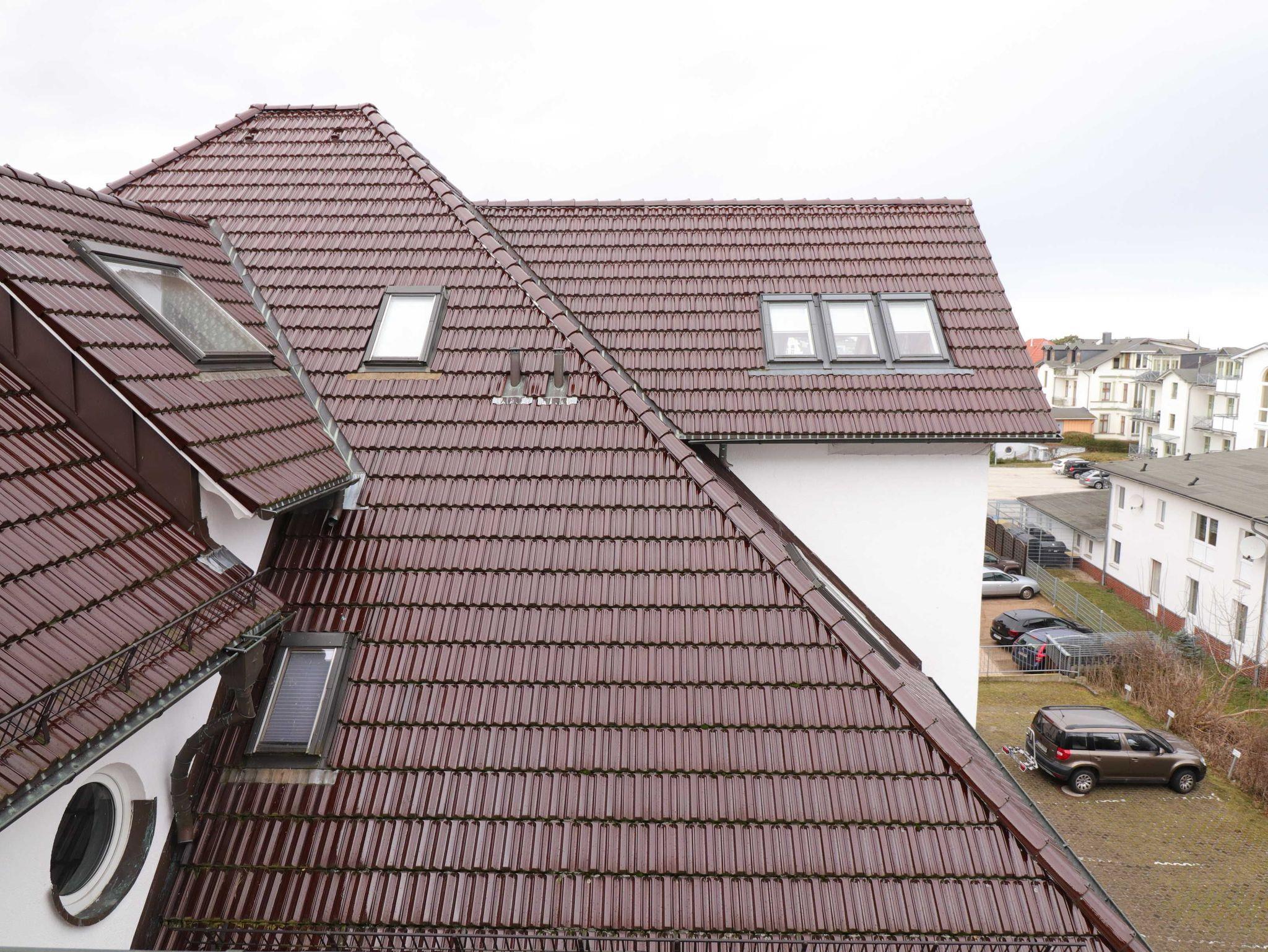 Das Türmchenzimmer mißt aufrund der Dachschrägen nur 17qm, die Grundfläche beträgt allerdings fast 20 qm, so dass zwei Personen in dem Zimmer bequem Platz finden. Die Dachschrägen beginnen ab einer Wandhöhe von ca. 0,8 m und stellen auch für groß gewachsenen Menschen keinerlei Einschränkungen der Bewegungsfreiheit in dem Zimmer dar. Durch die beiden Fenster mit Blick auf die umgebenden Häuser werden Küche und Wohnzimmer vollständig natürlich beleuchtet.