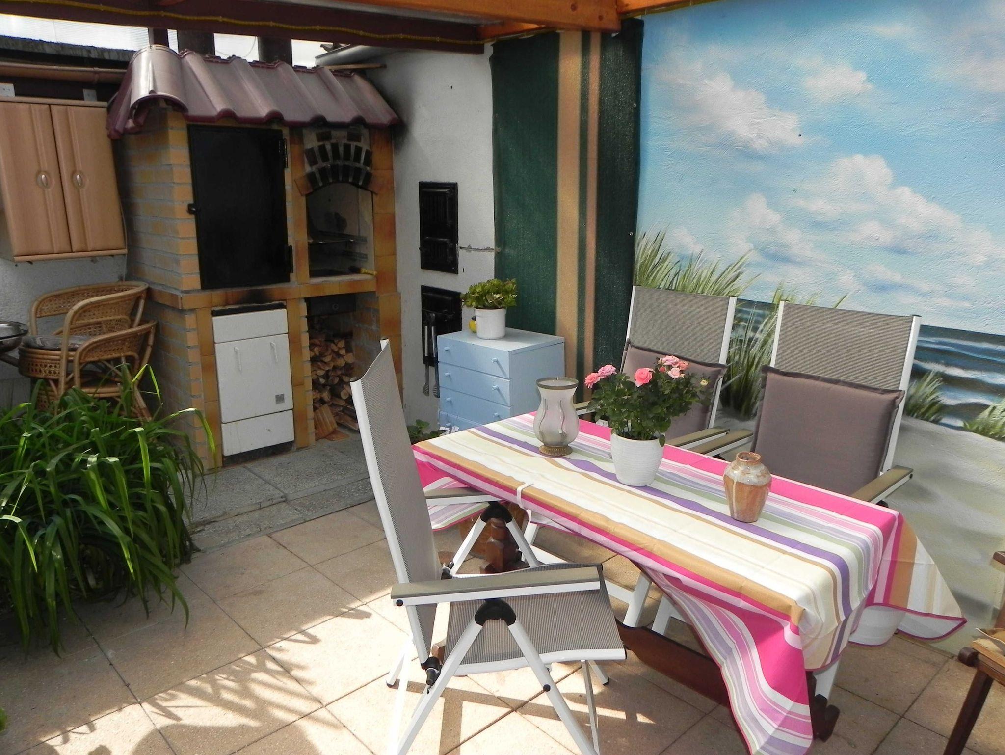 Auf dem Grundstück steht Ihnen eine gemütliche, überdachte Sitzecke zur Verfügung, die zum Verweilen einlädt. Gerne können Sie, nach Absprache mit dem Vermieter, frischen Fisch, den Sie selbst gefangen oder gekauft haben im Räucherofen gemeinsam mit dem Vermieter zubereiten.