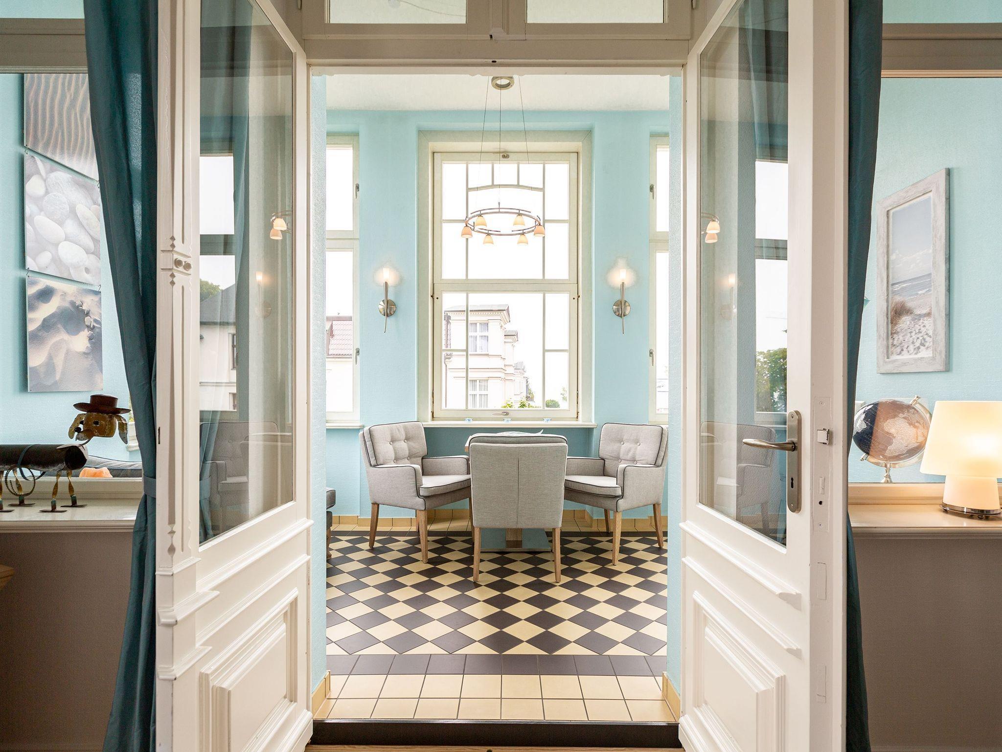 Mit diesem Domizil entscheiden Sie sich für eine exklusive Möglichkeit, Ihren Urlaub in den Kaiserbädern zu verbringen. Die 1898, im wilhelminischen Baustil errichtete Villa, präsentiert Ihnen seit Januar 2005 hochherrschaftliches Wohnen in ruhiger Lage. Großzügige Räumlichkeiten, historische Veranden und Balkone sorgen für rundherum gelungene Urlaubstage. Der große Saunabereich (kostenfrei) im Untergeschoss der Villa bietet Ihnen an kälteren Tagen eine angenehme Abwechslung. Für jede Wohnung steht ein PKW-Stellplatz am Haus zur Verfügung (größtenteils überdacht), für Fahrräder gibt es teilweise separate Abstellräume (abschließbar). Waschmaschine und Trockner (im Untergeschoss) im Haus sind gegen eine Gebühr nutzbar. Das WLAN-Netz steht kostenfrei zur Verfügung.
