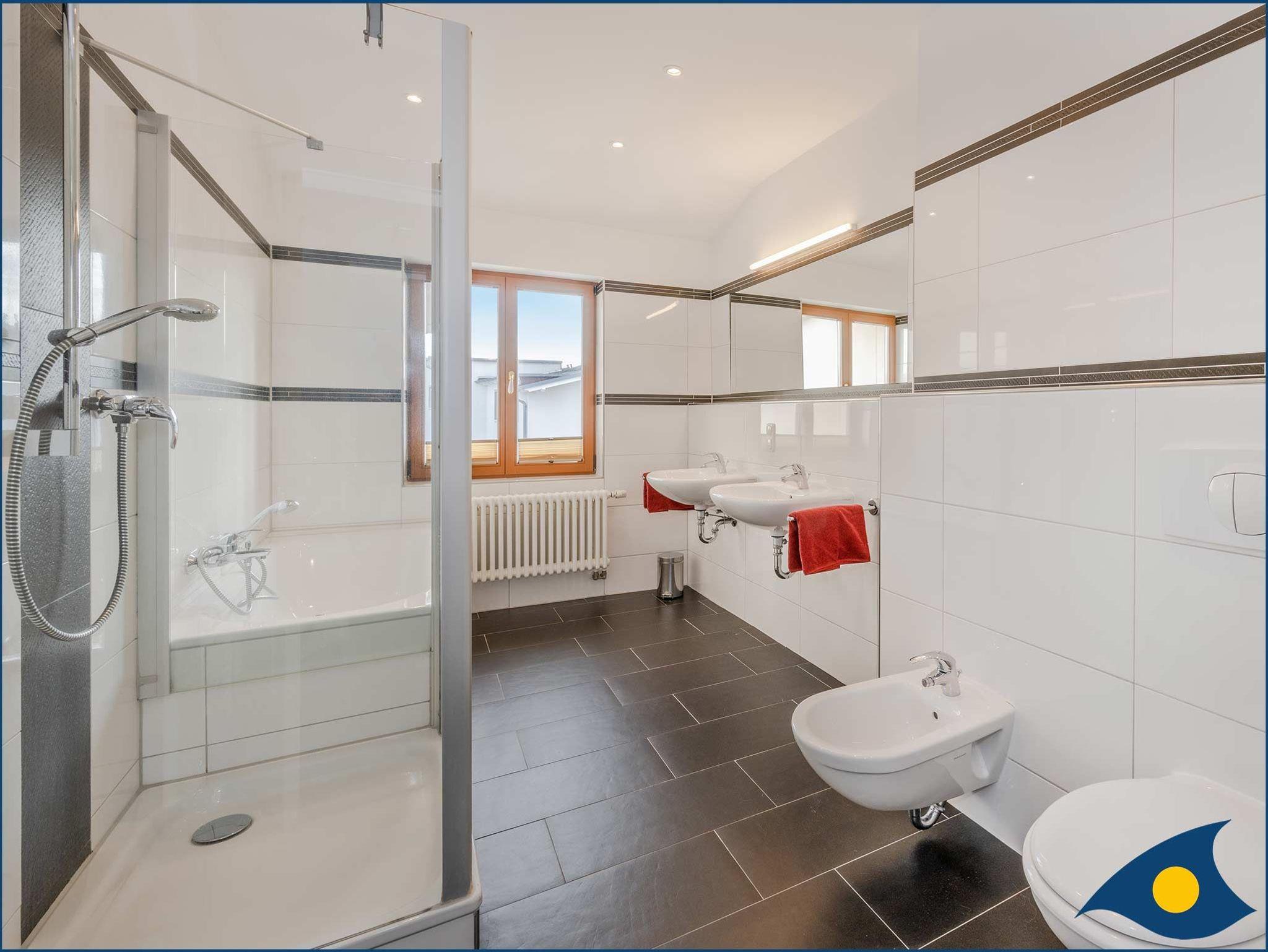 • Badzimmer mit Dusche, Badewanne, Bidet