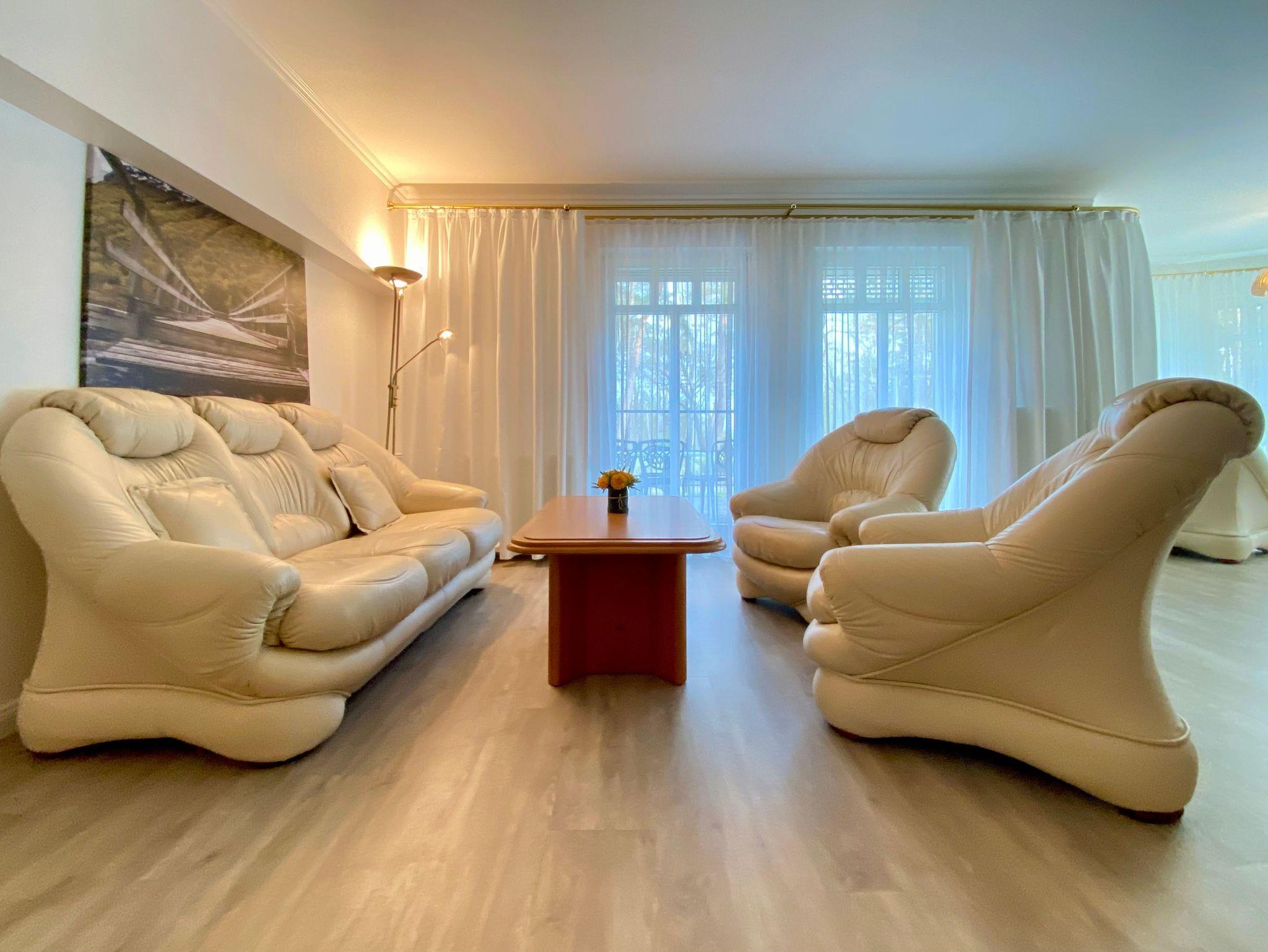 Ruhiges Apartmenthaus Kastell direkt an der Strandpromenade in Ahlbeck mit Terrasse, Tiefgaragenplatz und familienfreundlicher Ausstattung.