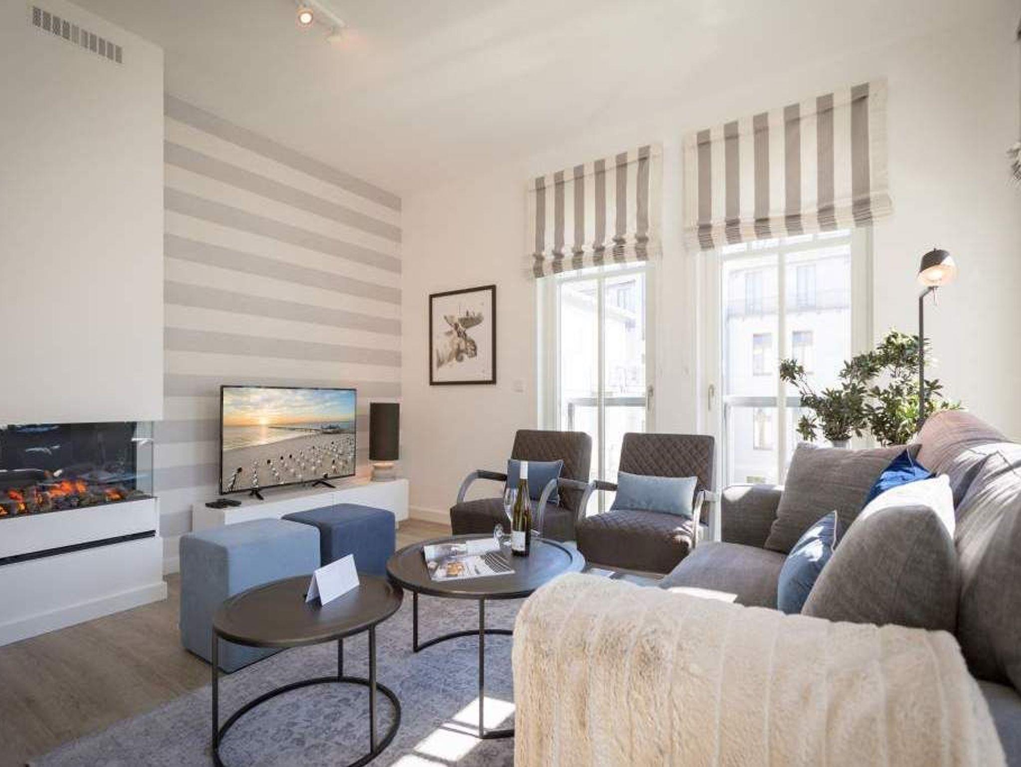 Das stilvolle Appartement 07 im Westendpalais bietet skandinavisches Flair, Sauna und Ostseeblick nur 100 m vom Strand entfernt.