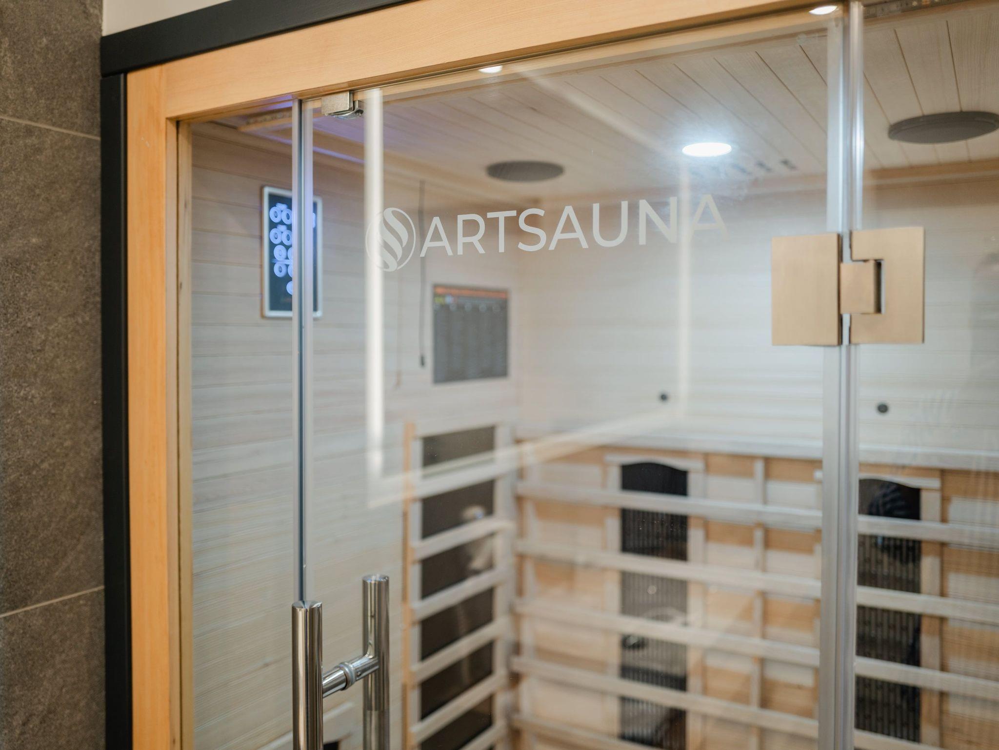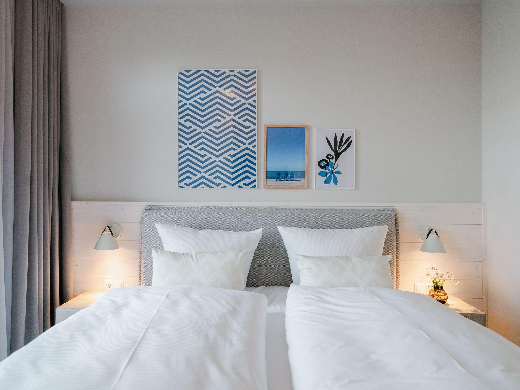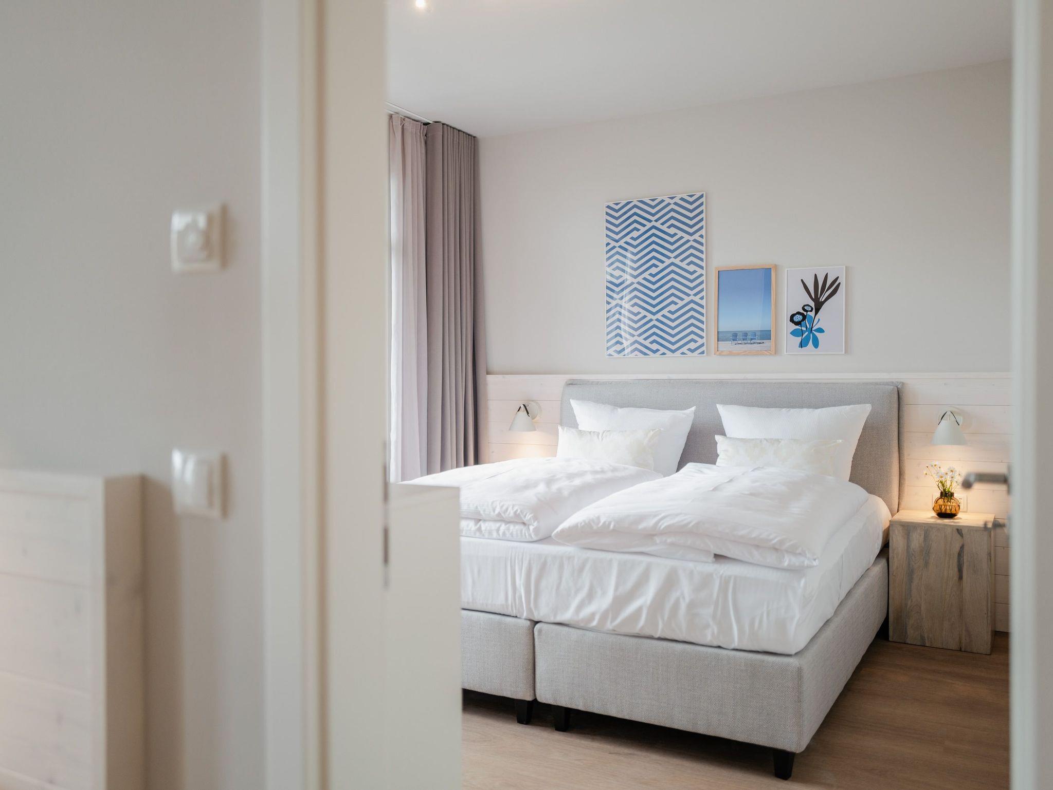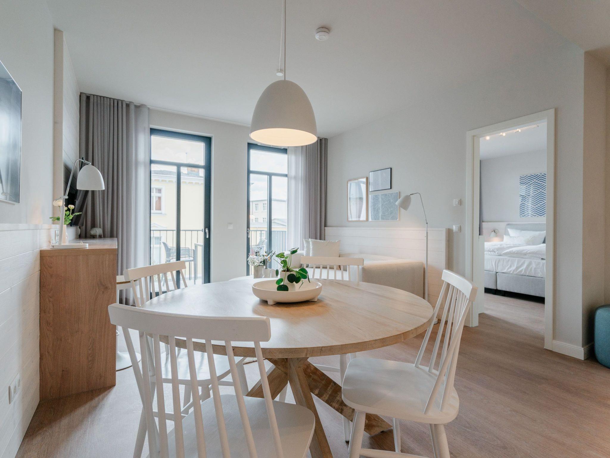 Dieses lichtdurchflutete und gemütliche 2-Raum-Appartement A2.5 mit Meerblick macht entspannte Urlaubsträume wahr. Es befindet sich im 2. Obergeschoss des Hauses A. Die Ostsee mit allen Sinnen genießen, das können bis zu zwei Personen in diesem 50 Quadratmeter großen Wohntraum. Edel und hochwertig eingerichtet, wird Ihnen das Wohn-Esszimmer und das komfortable Schlafzimmer zu einer unvergesslich schönen Auszeit verhelfen. Und das, nur 80 Meter vom Strand entfernt. Einmal aus der Tür fallen und Sie spüren den Strandsand unter den Füßen und die frische Ostseebrise direkt im Gesicht. Doch schon auf den beiden Balkonen Ihres Feriendomizils mit Ost-Ausrichtung können Sie das weite Blau sehen, das nahe Wellenrauschen hören und sich die gesunde Meeresluft um die Nase wehen lassen. Entspannen Sie auf der bequemen Couch bei einem spannenden Film auf dem 50-Zoll-Flachbildfernseher oder beim Blick auf den flackernden Elektrokamin (ohne Wärmeabgabe). Zum großzügigen und doch kuscheligen Wohn-Esszimmer gehören ein schöner Esstisch und eine voll ausgestattete Küchenzeile mit hochwertigen Siemens-Elektrogeräten. Eine Working Station bietet die Möglichkeit, auch während des Urlaubs produktiv zu sein oder ganz nostalgisch den Daheimgebliebenen eine Postkarte zu schreiben. Vom Wohnzimmer aus haben Sie Zugang zum ersten Balkon, während Sie aus dem Schlafzimmer heraus auf den zweiten Balkon an die Luft treten können. Schon einmal einen Sonnenaufgang aus dem Meer gesehen? Hier wird das möglich. Das Schlafzimmer ist mit einem komfortablen Boxspringdoppelbett (1,80m x 2,00m), einem Kleiderschrank und einer Kommode ausgestattet. Hier finden Sie auch einen weiteren 43-Zoll-Flachbildfernseher. Das innenliegende Bad verfügt über eine Dusche, WC und einen Waschtisch. Entspannen können Sie zudem bei wohliger Wärme in der wohnungseigenen Infrarotsauna. Ihnen steht ein PKW-Stellplatz in der Tiefgarage zur Verfügung. Erleben Sie erholsame Tage in der Strandterrasse und lassen Sie sich von dem seitlichen Blick auf die Ostsee und den Annehmlichkeiten dieser komfortablen Ferienwohnung verzaubern. Wir freuen uns darauf, Sie bald bei uns begrüßen zu dürfen!