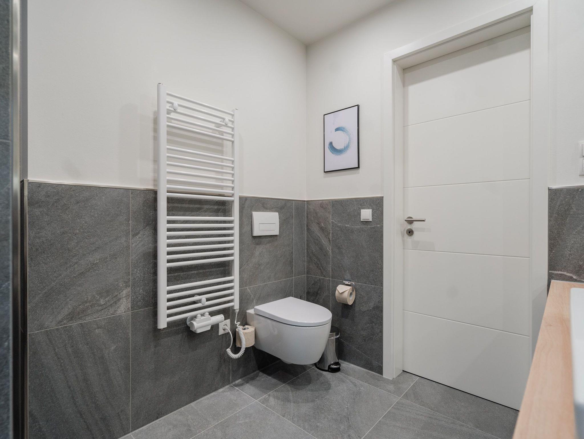 Die 2024 fertig gestellte Strandterrasse liegt direkt an der belebten Strandpromenade und bietet einen einzigartigen Ausblick auf die Grand Dame der historischen Seebrücken sowie die historische Konzertmuschel, einem beliebten Treffpunkt für Kunst und Kultur. Dahinter liegt die Ostsee ein Panorama, das zu den schönsten in den Kaiserbädern gehört. Es ist wie das Abtauchen in eine andere Zeit. In eine Zeit, in der man mit Stock, Sonnenschirm und Hut fürs Sehen und gesehen werden über die Promenade schlenderte; aber auch in eine Zeit, in der damals wie heute Zeit einmal für eine kurze Weile keine Rolle spielt. Weil man angekommen ist im Loslassen, Entspannen und Genießen. Es ist dieser besondere Geruch nach Meeresluft und Freiheit, der in Erinnerung bleibt. Dazu die Bilder, die man mitnimmt. Von langen Strandspaziergängen, vom Lachen in fröhlich schäumenden Ostseewellen, von der Zeit in einem wunderschönen Urlaubsdomizil. Denn genau das ist die Strandterrasse mit ihren 56 modernen und exklusiven Ferienappartements direkt gegenüber der Ahlbecker Seebrücke. Die Ein-, Zwei- oder Dreizimmerwohnungen zwischen 40 und 70 Quadratmeter groß sind von einer Innenarchitektin gemeinsam mit unserem Erfahrungsschatz an Gästewünschen mit viel Liebe zum Detail und ganz individuell konzipiert worden. Entspannung und Wohlfühlen stehen an erster Stelle. Alles ist aufeinander abgestimmt und sorgt für eine gemütliche Atmosphäre. Wählen Sie zwischen einem Domizil in einem hellen, sandfarbenen Designkonzept oder einem Appartement mit anthrazitfarbenen Farbakzenten. Alle Appartements verfügen gleichermaßen über eine stilvolle und komfortable Einrichtung, die passgenau angefertigt worden ist, sowie über moderne Küchen und Bäder. Jedem Schlafzimmer ist ein eigenes Bad mit Dusche zugeordnet (außer App. B4.5). Die Appartements besitzen fast alle einen Balkon viele schauen sogar zur Ostsee hinaus. Die meisten Feriendomizile haben einen Elektrokamin und Infrarotsaunen. Im Erdgeschoss befindet sich ein separater Gemeinschaftsraum für Fahrräder. Außerdem besteht die Möglichkeit, im Gemeinschaftswaschraum 2 Waschmaschinen [&] Trockner zu nutzen. Ergänzt wird das Angebot durch eine Gemeinschaftssauna, die täglich von 11:00 bis 22:00 Uhr nutzbar ist. In der Tiefgarage (Einfahrtshöhe 2,03 Meter) steht für jede Wohnung 1 Pkw-Stellplatz zur Verfügung. Ist alles zur Zufriedenheit untergebracht? Dann kann der Urlaub ja beginnen. Und beim Blick vom Balkon über die Ostsee treffen sich zum Sonnenaufgang das Heute und das Damals. Gelassenheit legt sich beim Gang hinunter an den Strand auf die Seele. Jetzt darf die Zeit stehenbleiben.