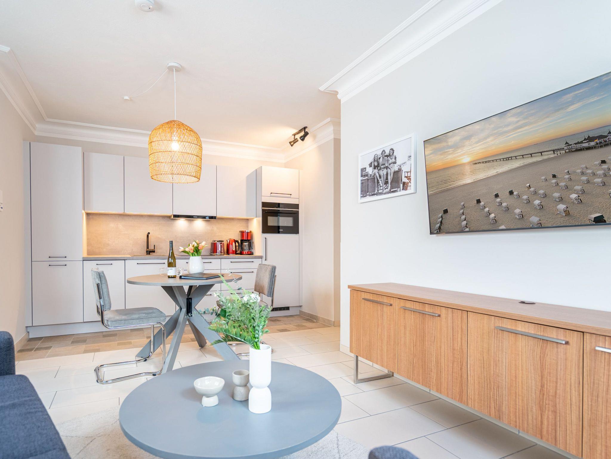 Gemütliche 2-Zimmer-Ferienwohnung mit Terrasse und Tiefgaragenzugang in bester Lage nahe der Ahlbecker Seebrücke.
