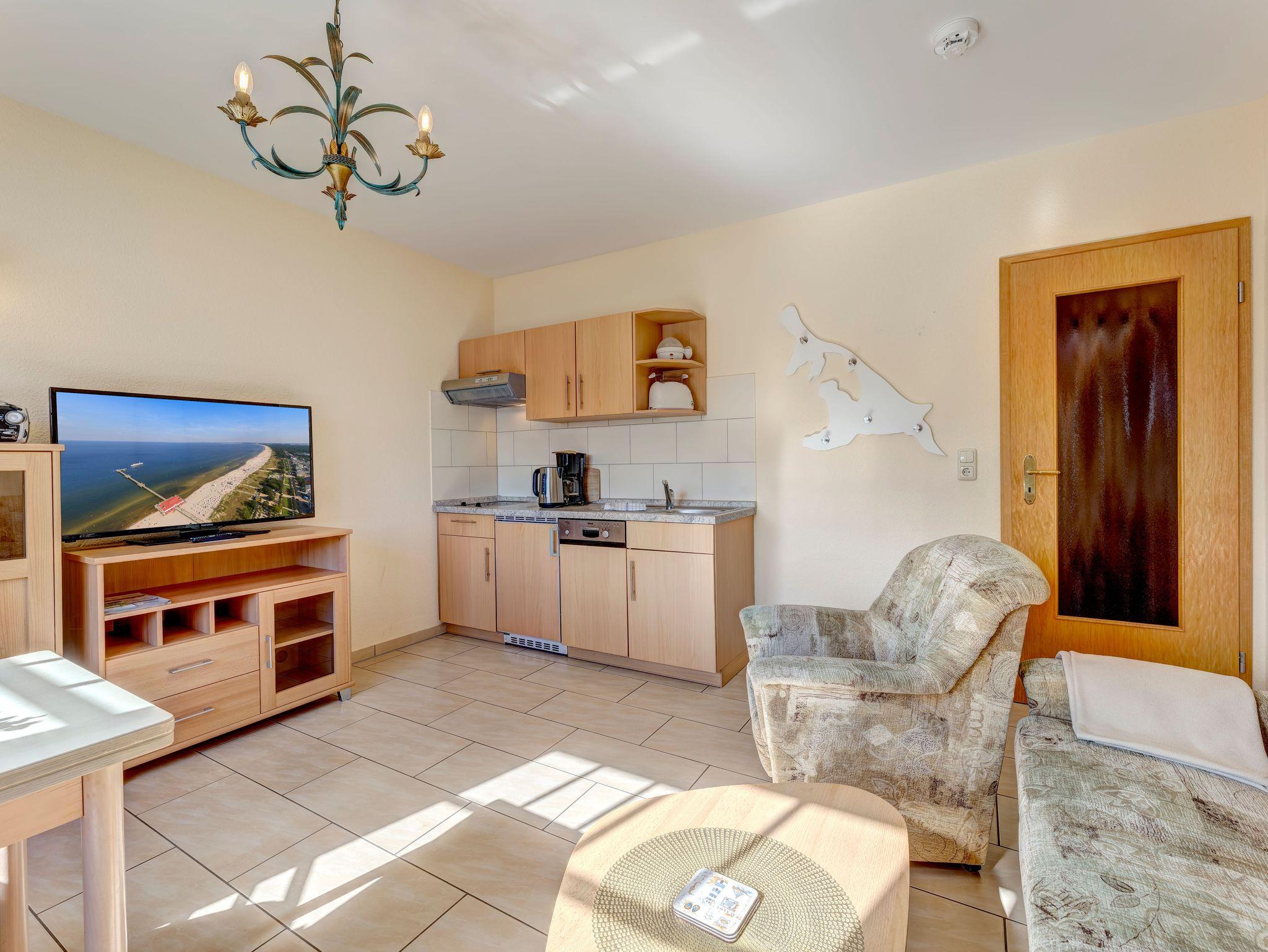 Die 47m² große, gemütliche Ferienwohnung mit Balkon und W-Lan verfügt über einen Wohn-/Essbereich mit Schlafsofa, Flachbildfernsehr und einer offenen Küchenzeile. Das Schlafzimmer ist mit einem Doppelbett und einem Kleiderschrank für Ihre Urlaubsgarderobe ausgestattet. Ein geräumiges Badezimmer mit Dusche/WC, Fön und beleuchtetem Kosmetikspiegel erwartet Sie. Zusätzlich steht Ihnen ein Safe für Ihre Wertsachen in der Wohnung zur Verfügung. Die Erstausstattung Bettwäsche und Handtücher sind inklusive. Ein Reisebettchen und ein Hochstuhl können auf Wunsch bereit gestellt werden.