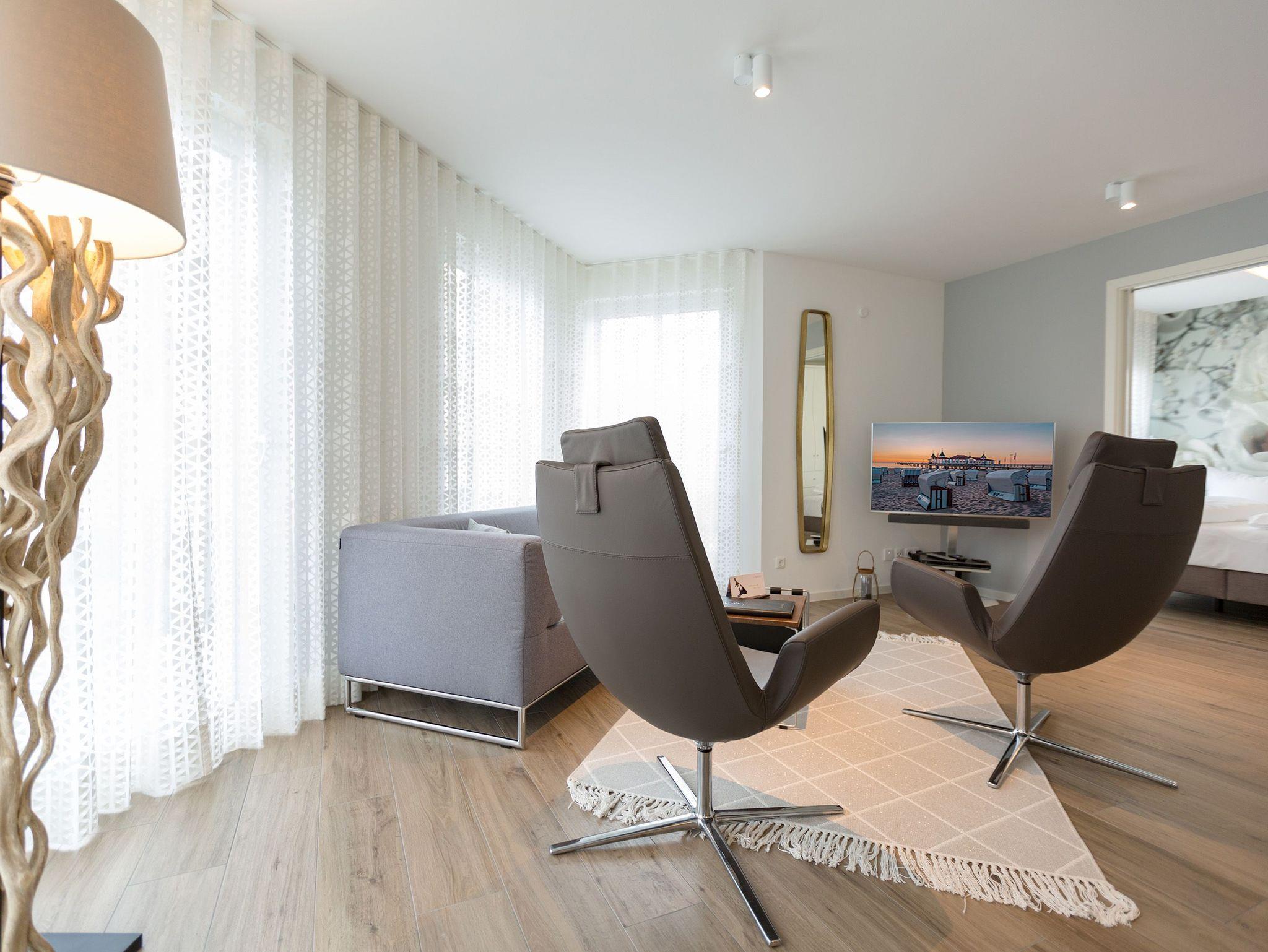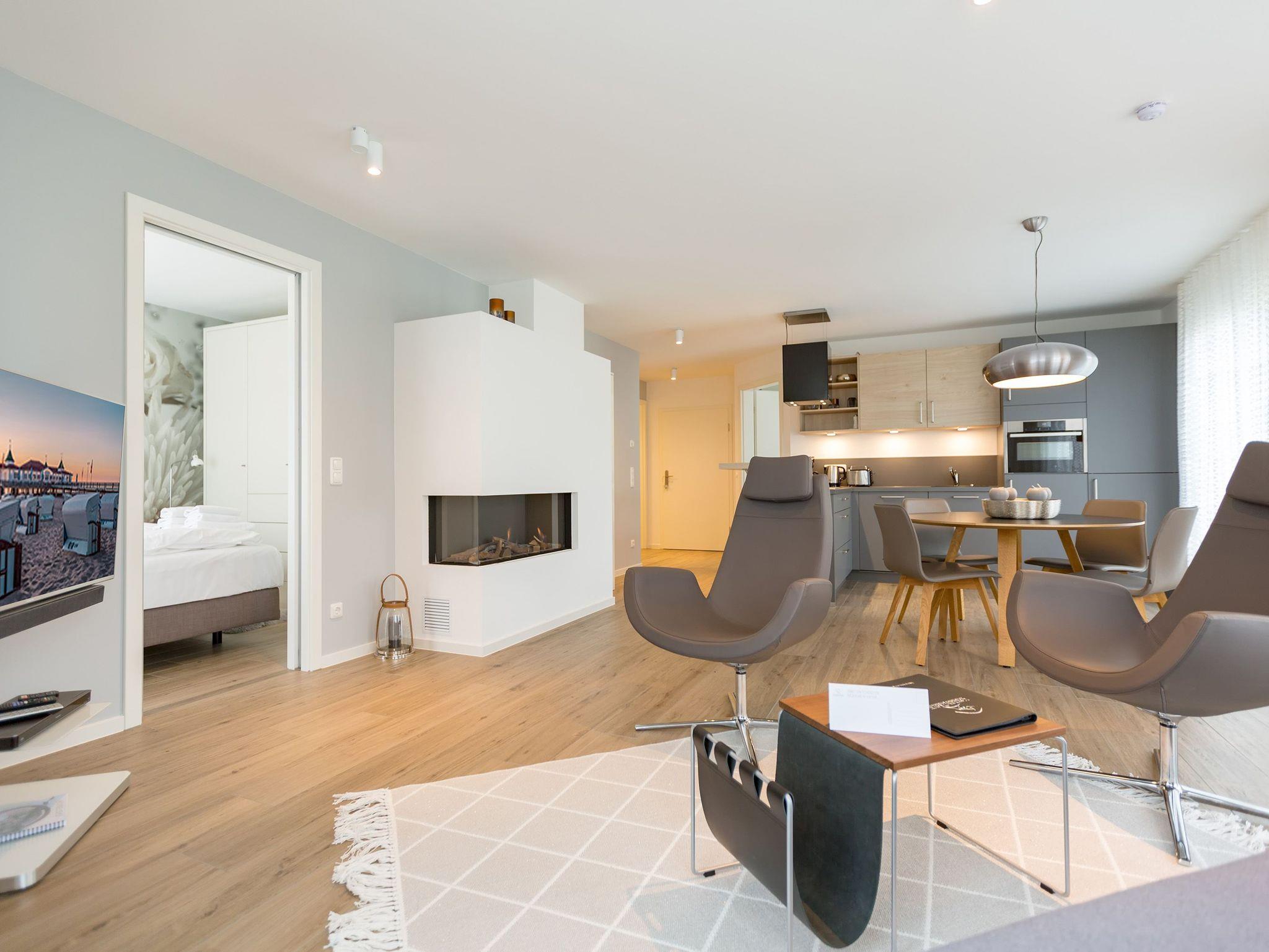 Modernes Apartment mit drei Balkonen und Sauna, nur 180 m vom Strand in Ahlbeck entfernt.