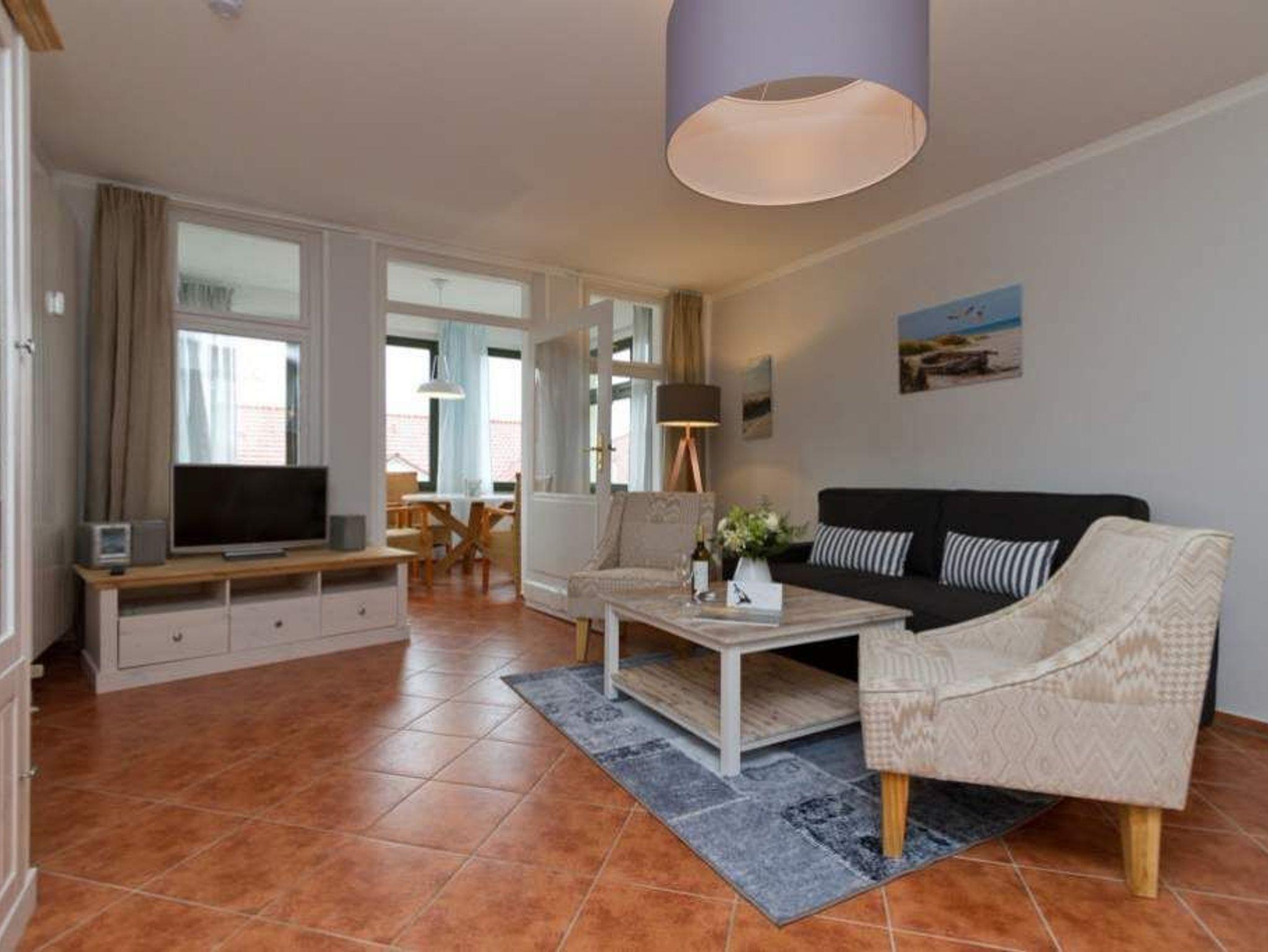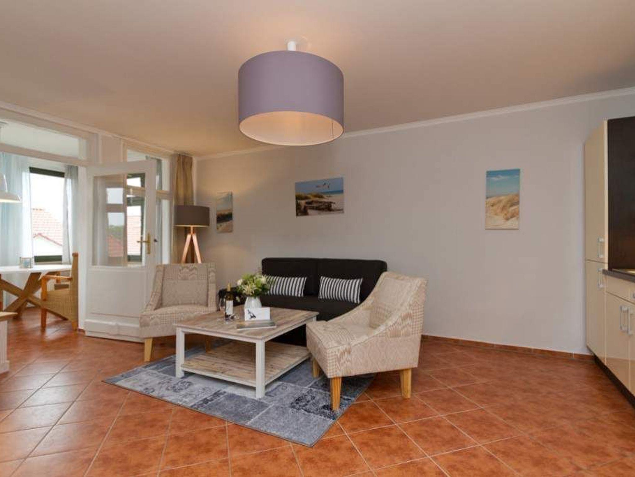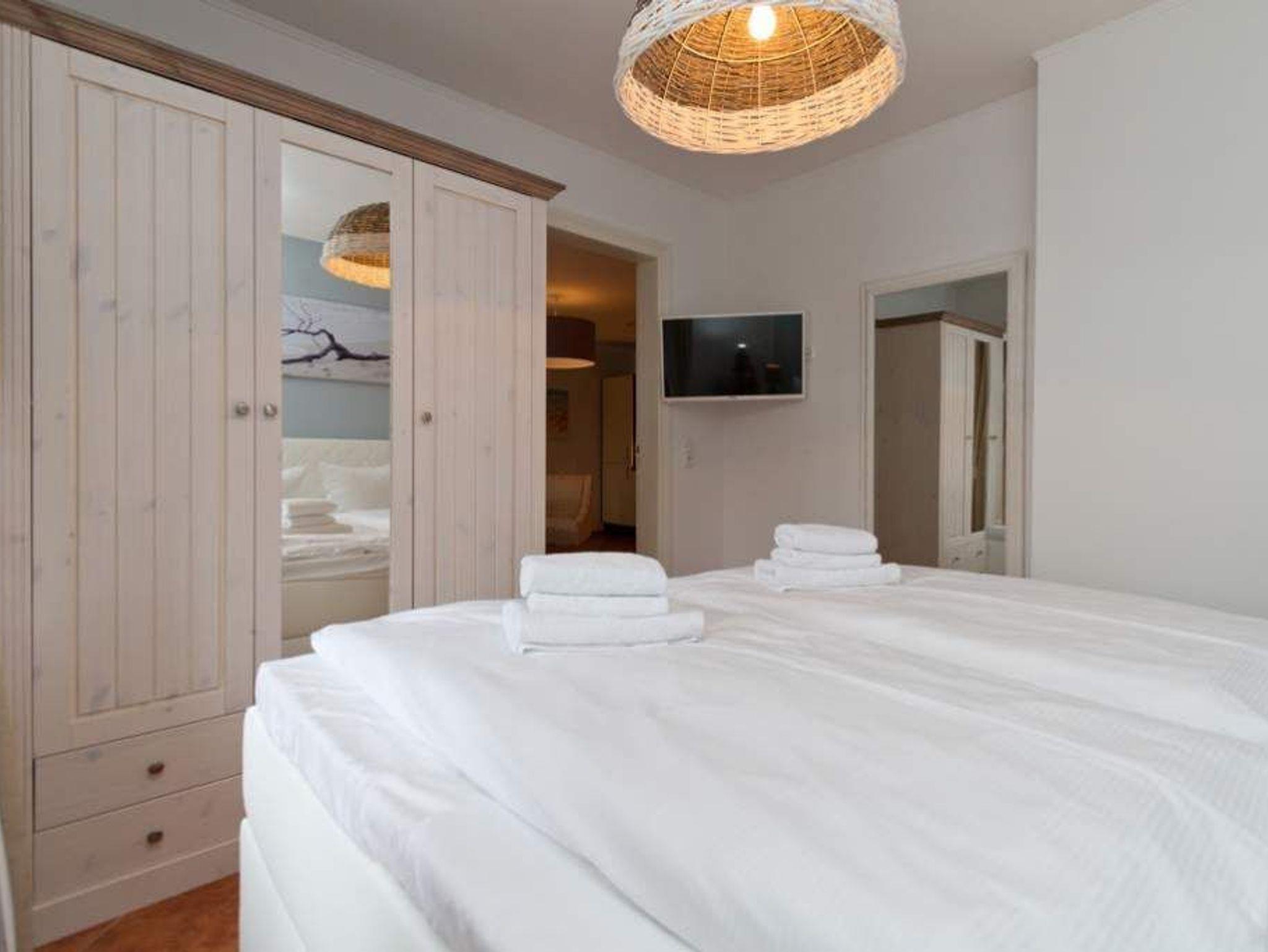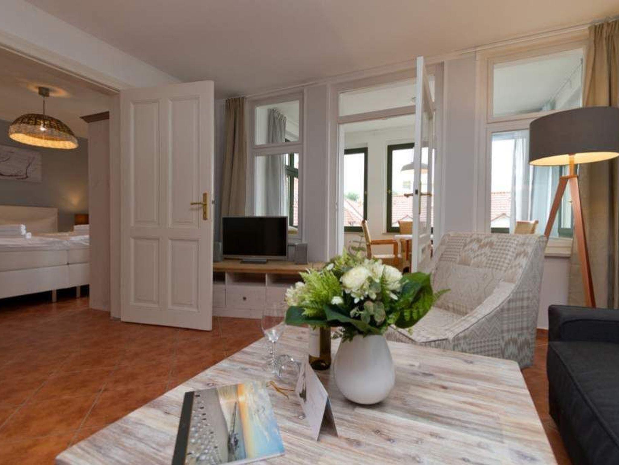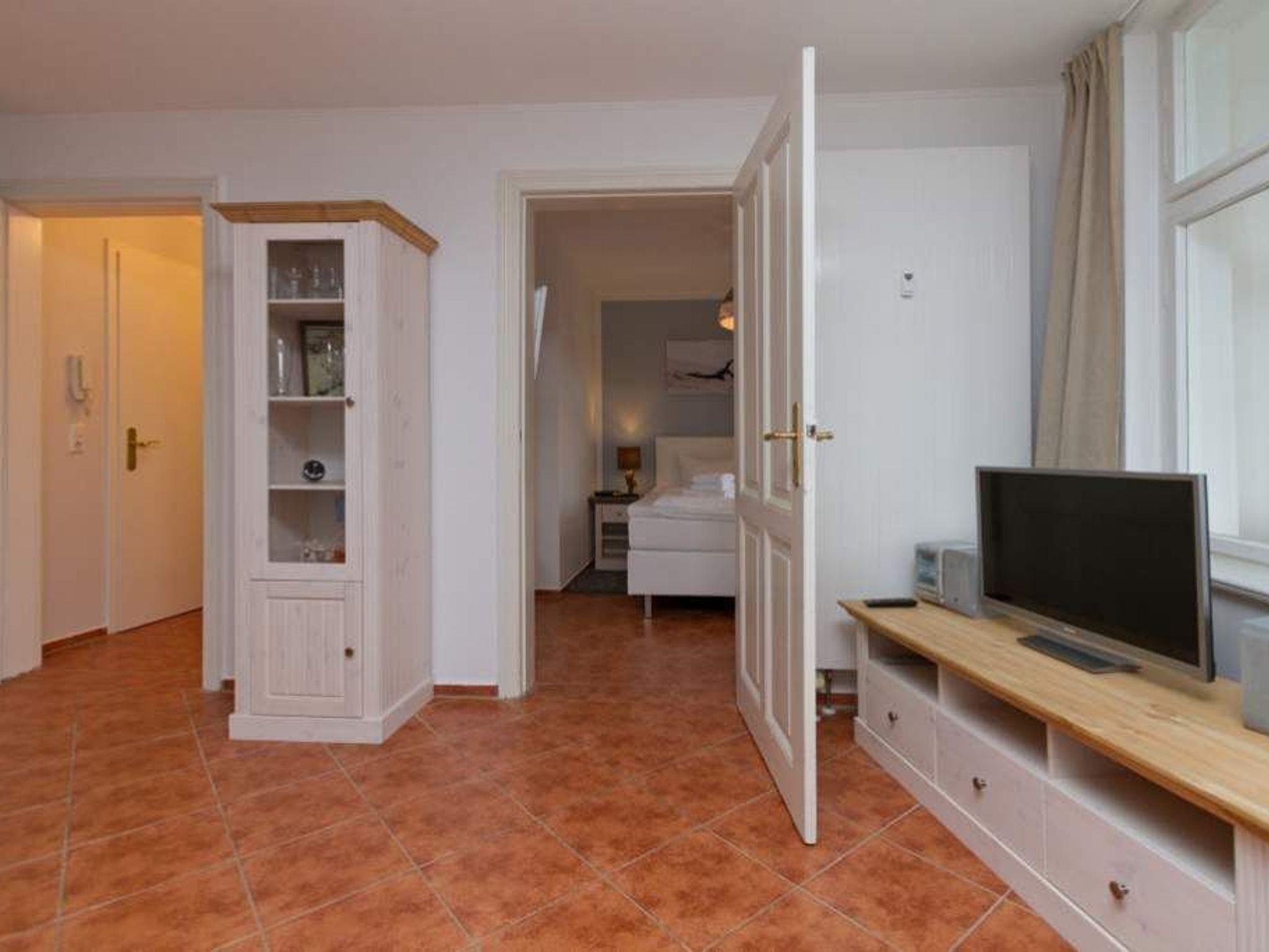 Die helle freundliche 2-Raum-Ferienwohnung (47 qm) befindet sich im 2. Obergeschoss der Villa Goodewind und ist ein ideales Ziel wenn man Ruhe und Erholung sucht. Das Appartement verfügt über ein Wohnzimmer mit Schlafcouch ( als Aufbettung für die 3. Person nutzbar) [&] Flat-TV sowie eine voll ausgestattete Küchenzeile. In der verglasten Veranda mit seitlichem Meerblick lässt es sich gemütlich frühstücken. Das schöne Schlafzimmer ist mit einem Doppelboxspringbett (1,80m x 2,00m) [&] Flat-TV ausgestattet. Das Bad mit Dusche [&] WC verfügt über eine Fußbodenheizung. Ein PKW-Stellplatz befindet sich auf dem Hof.