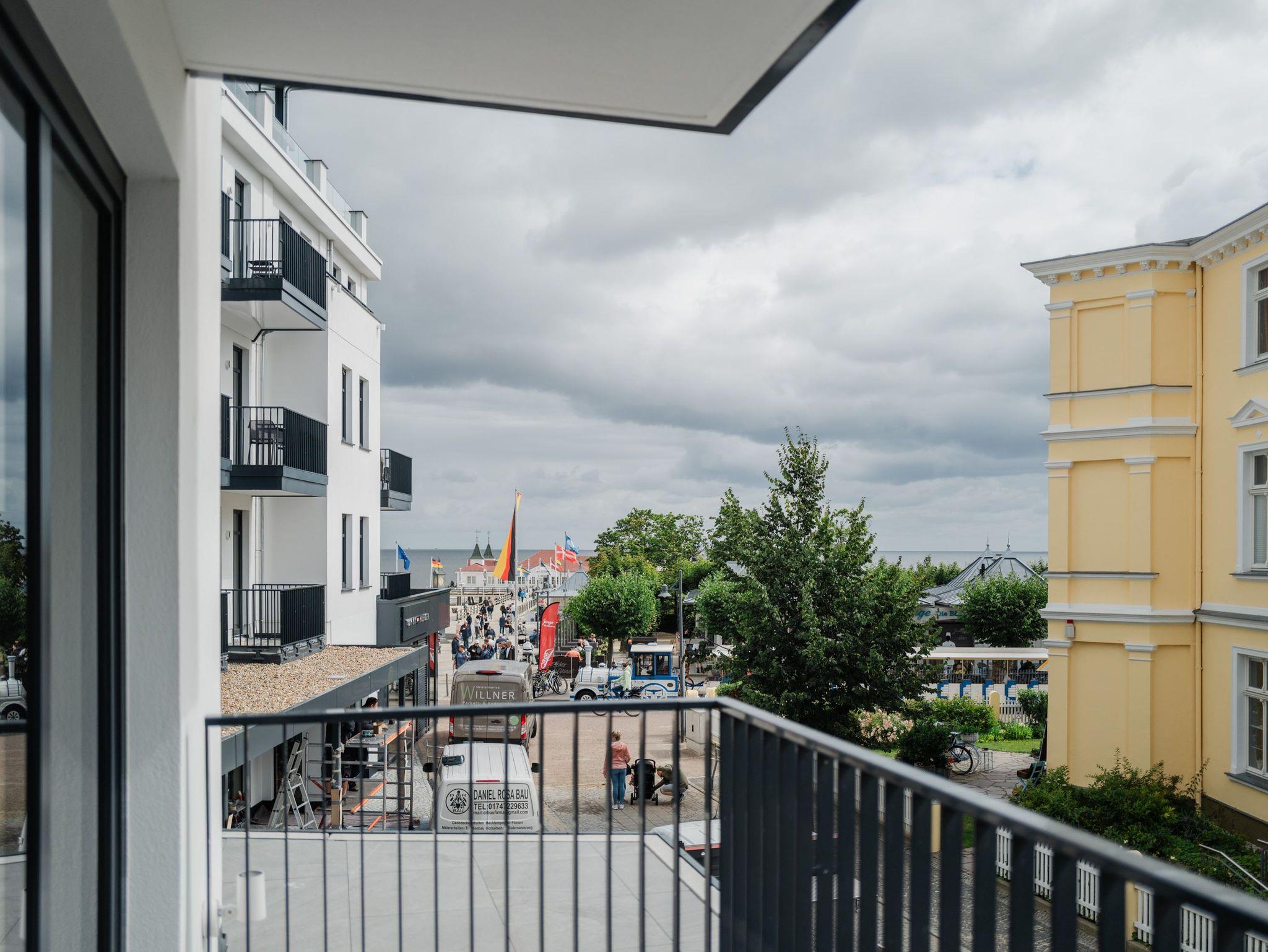 Die 2024 fertig gestellte Strandterrasse liegt direkt an der belebten Strandpromenade und bietet einen einzigartigen Ausblick auf die Grand Dame der historischen Seebrücken sowie die historische Konzertmuschel, einem beliebten Treffpunkt für Kunst und Kultur. Dahinter liegt die Ostsee ? ein Panorama, das zu den schönsten in den Kaiserbädern gehört. Es ist wie das Abtauchen in eine andere Zeit. In eine Zeit, in der man mit Stock, Sonnenschirm und Hut fürs ?Sehen und gesehen werden? über die Promenade schlenderte; aber auch in eine Zeit, in der ? damals wie heute ? Zeit einmal für eine kurze Weile keine Rolle spielt. Weil man angekommen ist im Loslassen, Entspannen und Genießen. Es ist dieser besondere Geruch nach Meeresluft und Freiheit, der in Erinnerung bleibt. Dazu die Bilder, die man mitnimmt. Von langen Strandspaziergängen, vom Lachen in fröhlich schäumenden Ostseewellen, von der Zeit in einem wunderschönen Urlaubsdomizil. Denn genau das ist die Strandterrasse mit ihren 56 modernen und exklusiven Ferienappartements direkt gegenüber der Ahlbecker Seebrücke. Die Ein-, Zwei- oder Dreizimmerwohnungen ? zwischen 40 und 70 Quadratmeter groß ? sind von einer Innenarchitektin gemeinsam mit unserem Erfahrungsschatz an Gästewünschen mit viel Liebe zum Detail und ganz individuell konzipiert worden. Entspannung und Wohlfühlen stehen an erster Stelle. Alles ist aufeinander abgestimmt und sorgt für eine gemütliche Atmosphäre. Wählen Sie zwischen einem Domizil in einem hellen, sandfarbenen Designkonzept oder einem Appartement mit anthrazitfarbenen Farbakzenten. Alle Appartements verfügen gleichermaßen über eine stilvolle und komfortable Einrichtung, die passgenau angefertigt worden ist, sowie über moderne Küchen und Bäder. Jedem Schlafzimmer ist ein eigenes Bad mit Dusche zugeordnet (außer App. B4.5). Die Appartements besitzen fast alle einen Balkon ? viele schauen sogar zur Ostsee hinaus. Die meisten Feriendomizile haben einen Elektrokamin und Infrarotsaunen. Im Erdgeschoss befindet sich ein separater Gemeinschaftsraum für Fahrräder. Außerdem besteht die Möglichkeit, im Gemeinschaftswaschraum 2 Waschmaschinen [&] Trockner zu nutzen. Ergänzt wird das Angebot durch eine Gemeinschaftssauna, die täglich von 11:00 bis 22:00 Uhr nutzbar ist. In der Tiefgarage (Einfahrtshöhe 2,03 Meter) steht für jede Wohnung 1 Pkw-Stellplatz zur Verfügung. Ist alles zur Zufriedenheit untergebracht? Dann kann der Urlaub ja beginnen. Und beim Blick vom Balkon über die Ostsee treffen sich zum Sonnenaufgang das Heute und das Damals. Gelassenheit legt sich beim Gang hinunter an den Strand auf die Seele. Jetzt darf die Zeit stehenbleiben.
