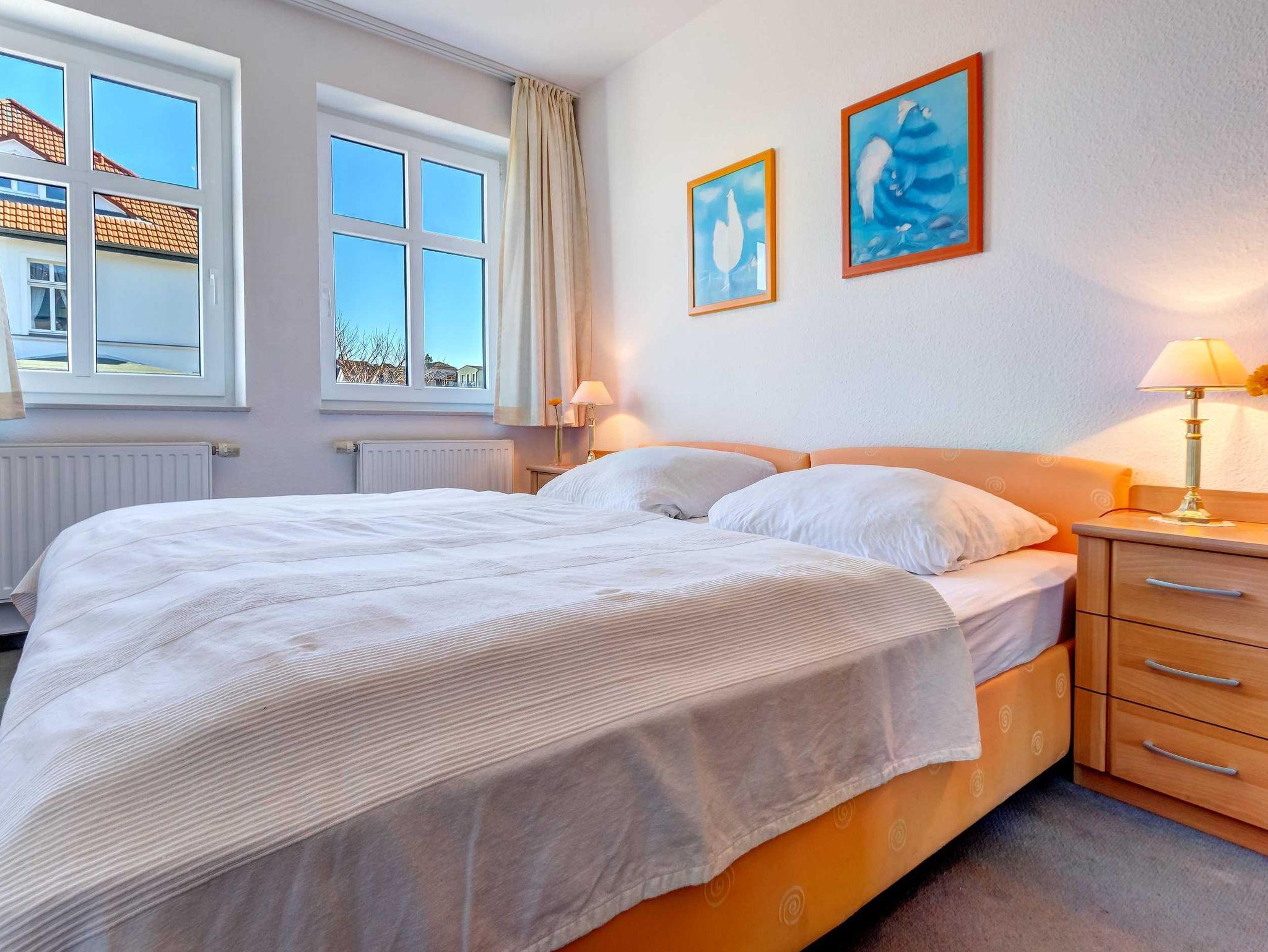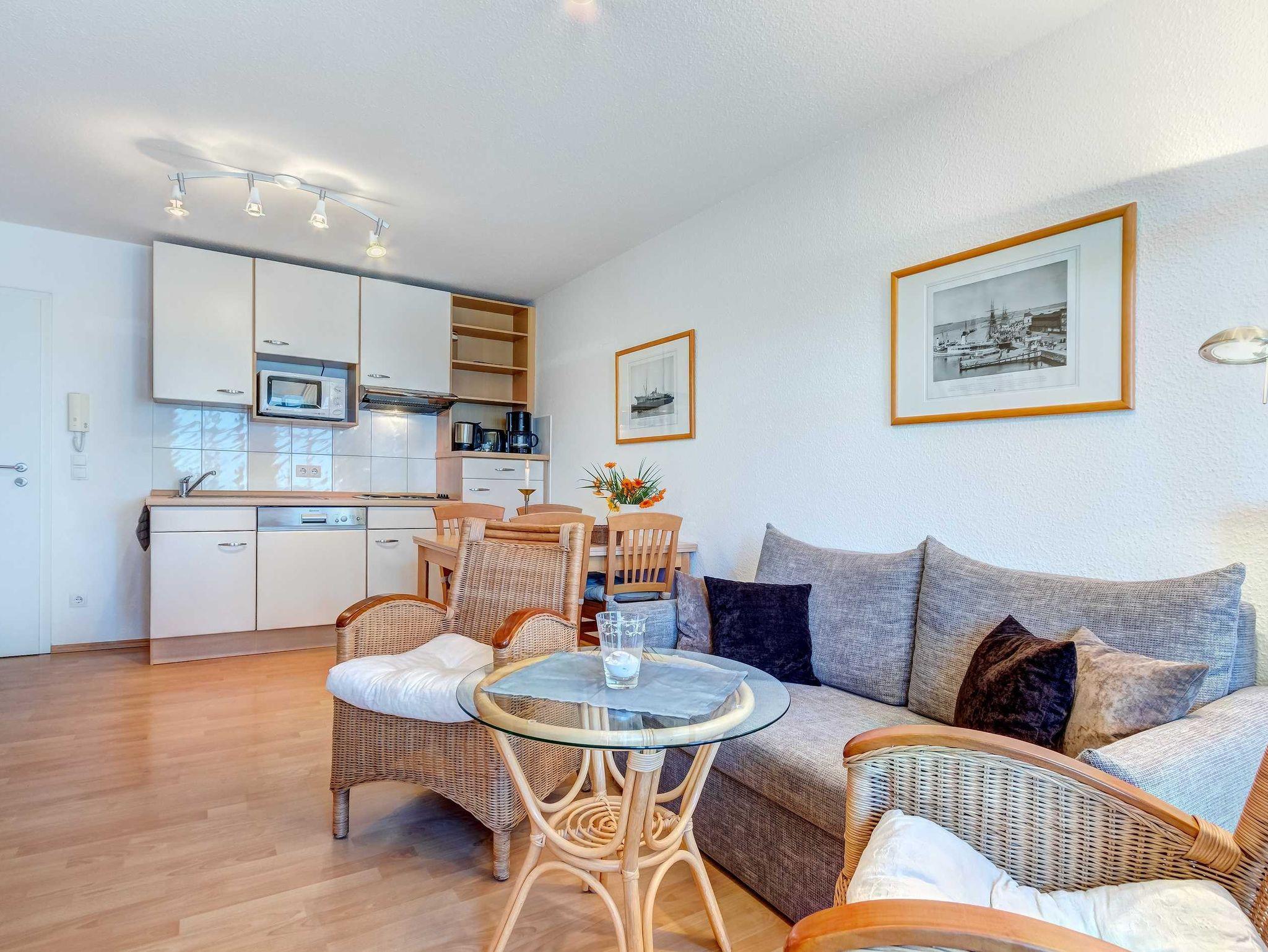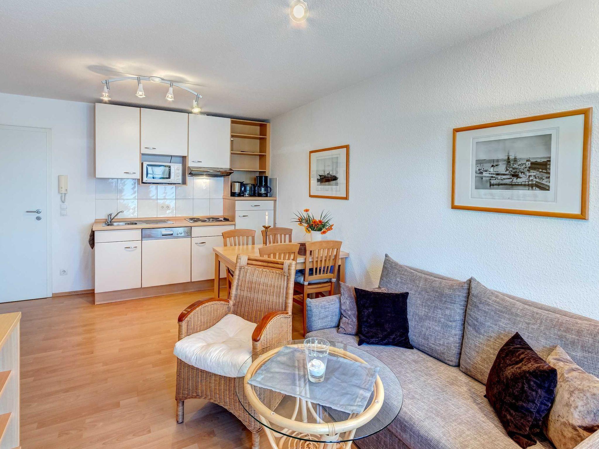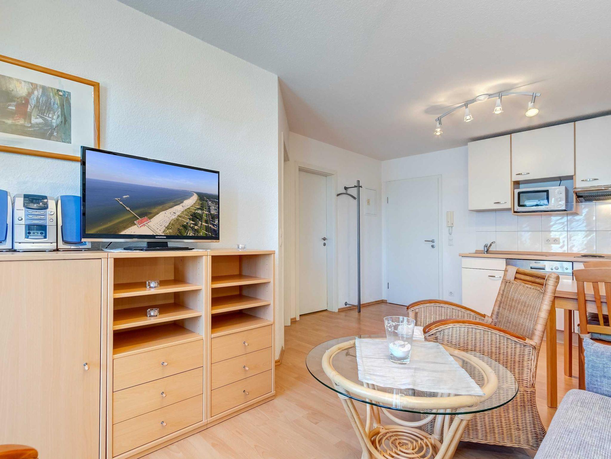 Schönes gemütliches 2-Zimmer-Appartement mit moderner, guter Ausstattung. Separates Schlafzimmer, Wohnzimmer mit Küchenzeile und Essplatz, Duschbad, Balkon nach Osten - zum Frühstück in der Sonne mit ausschnittweisem Seeblick. Die Wohnung verfügt über einen Tiefgaragen-Pkw-Stellplatz. In der Garage können auch Fahrräder und ähnliches untergestellt werden. Von der Villa Aquamarina sind es zum Ortszentrum und zur Seebrücke ca. 3 Minuten zu Fuß. Zum Strand sind es 50 m. Die Wohnungen der Villa Aquamarina verfügen alle über passwortgeschütztes WLAN (gerätegebunden, Euro 1,50 pro Tag und pro Gerät).
