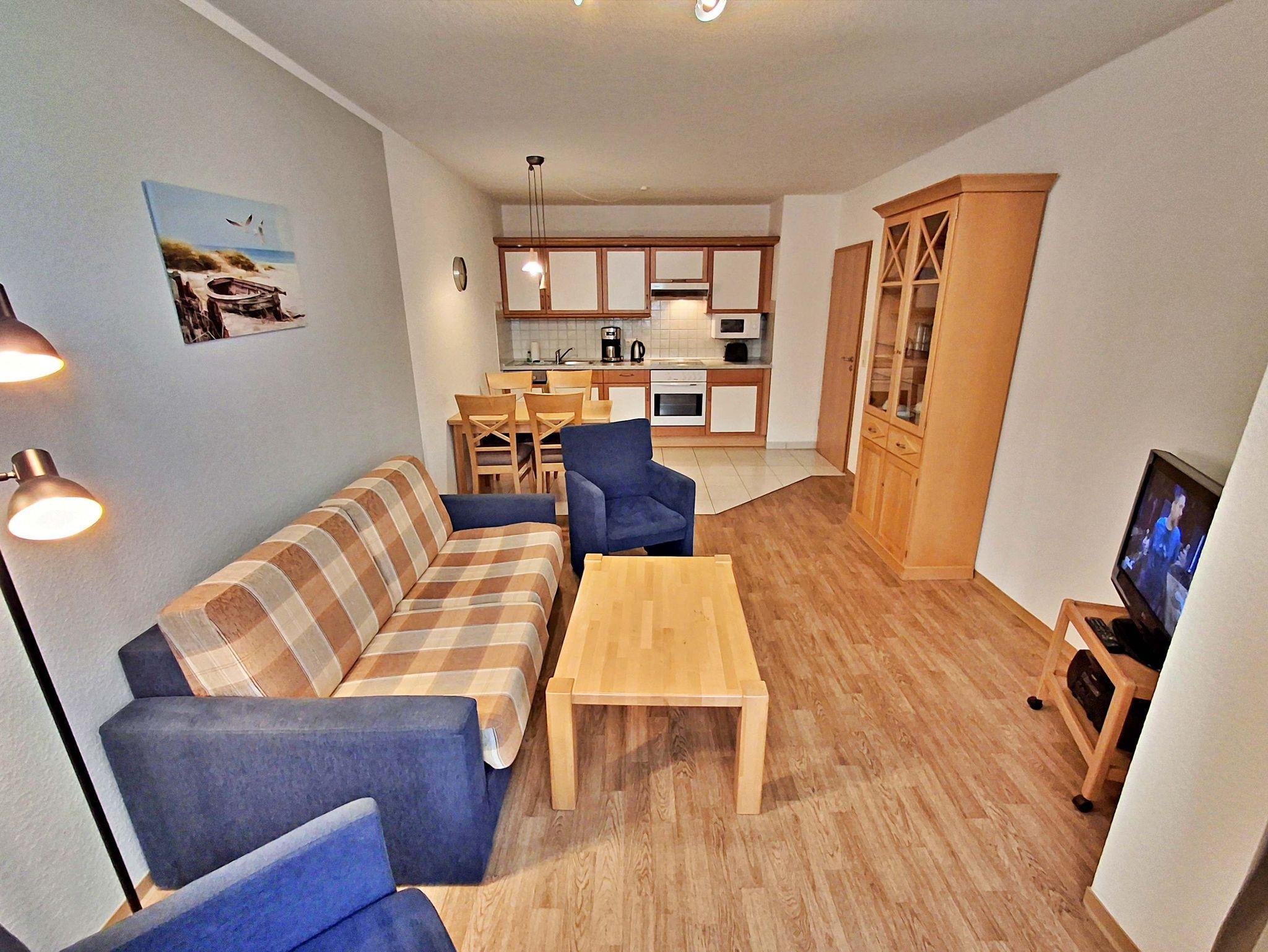 Die gemütliche 2-Zimmer-Wohnung Bansin mit Terrasse für max. 3 Erwachsene und 1 Kleinkind bis 3 Jahre befindet im Haus am Kurpark - nur wenige Schritte von der Promenade und dem Strand entfernt. Im Wohnbereich befinden sich neben der gemütlichen Couch (Aufbettungsmöglichkeit für 1 Person) auch zwei Sessel sowie ein Esstisch mit 4 Stühlen, der genügend Platz für 4 Personen bietet. Vom Wohnbereich aus gelangen Sie auf die Terrasse, welche sich zur Hofseite gelegen befindet. Hier können Sie bei schönem Wetter bereits morgens Ihren Kaffee genießen oder den Abend bei einem Glas Wein ausklingen lassen können. Die moderne Küchenzeile mit Ceranherd, Backofen, Geschirrspüler, Mikrowelle, Kaffeemaschine, Wasserkocher und Toaster lässt keine Wünsche offen. Für die Unterhaltung sorgen ein Flachbild-TV, Radio-CD-Player und kostenfreies W-LAN. Das Schlafzimmer verfügt über ein Doppelbett und TV und das Badezimmer hat Badewanne/WC.
