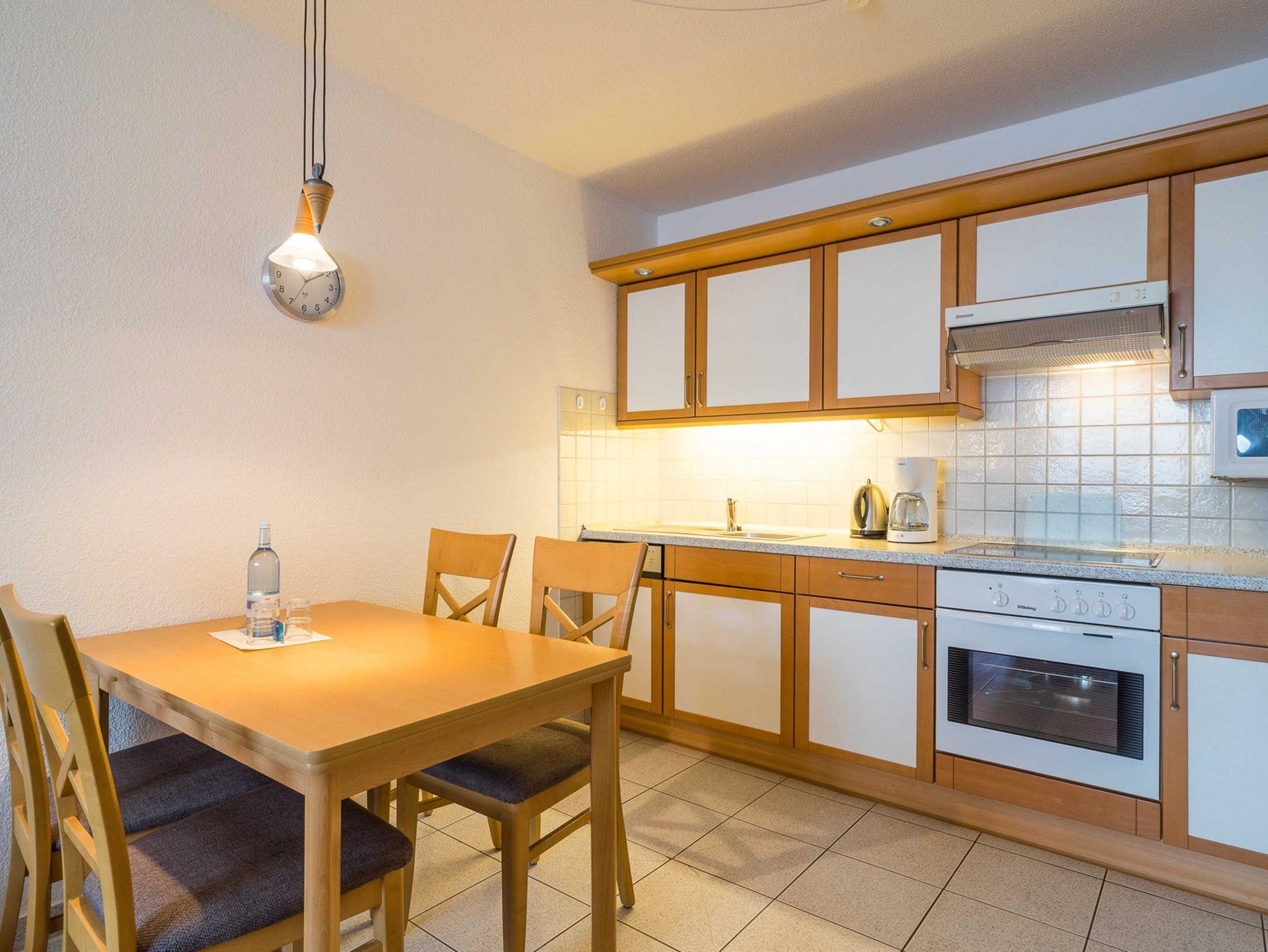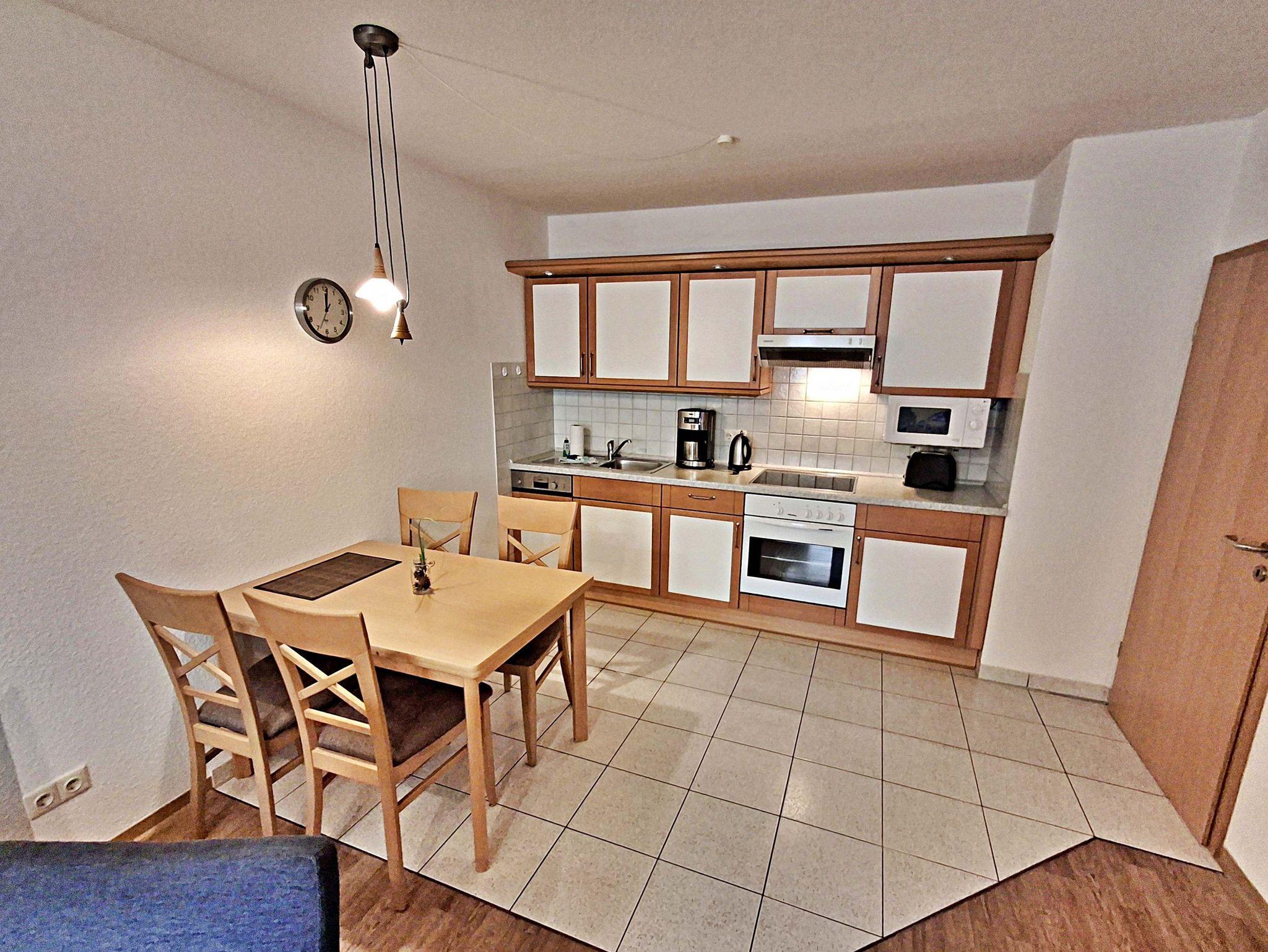 Die moderne, voll ausgestattete Küchenzeile mit Cerankochfeld, Backofen, Geschirrspüler, Mikrowelle, Kaffeemaschine, Wasserkocher und Toaster bietet optimalen Komfort für Ihre Selbstverpflegung.