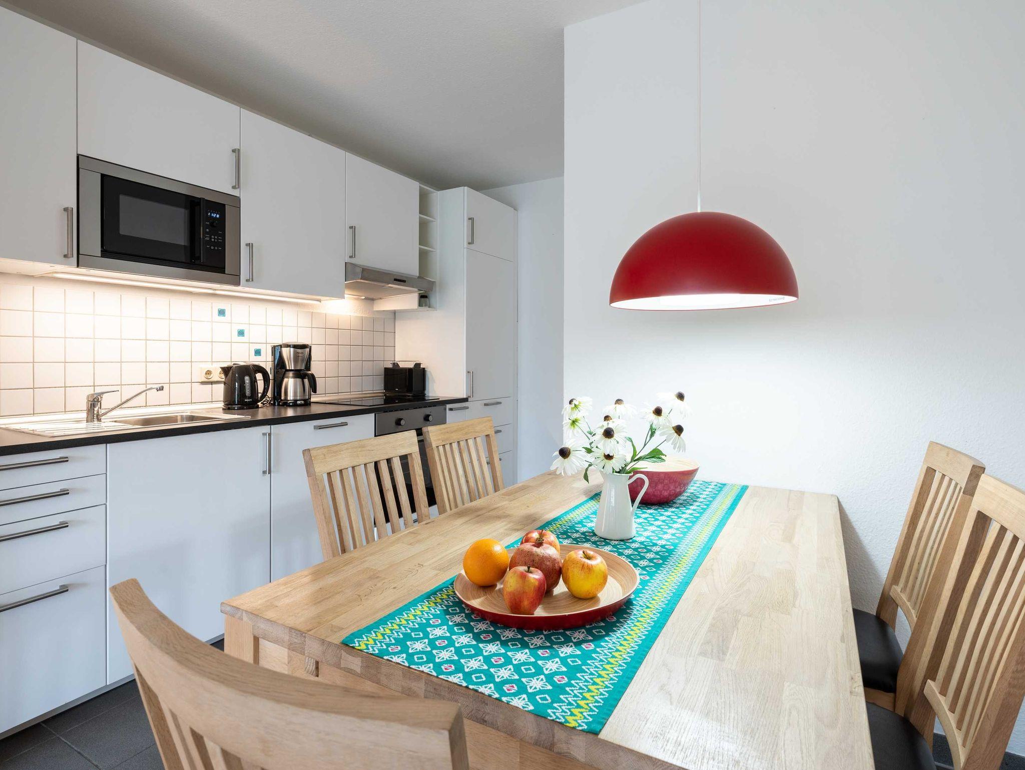 Das ca 80 qm große Appartement Leutturm verfügt über drei Schlafzimmer (ein Doppelbett, zwei Einzelbetten, ein Einzelbett), eine großzügige Küche und ein gemütliches Wohnzimmer. Bad mit Waschtisch, Dusche und WC. Vom Balkon hören Sie das beruhigende Rauschen der Ostsee.