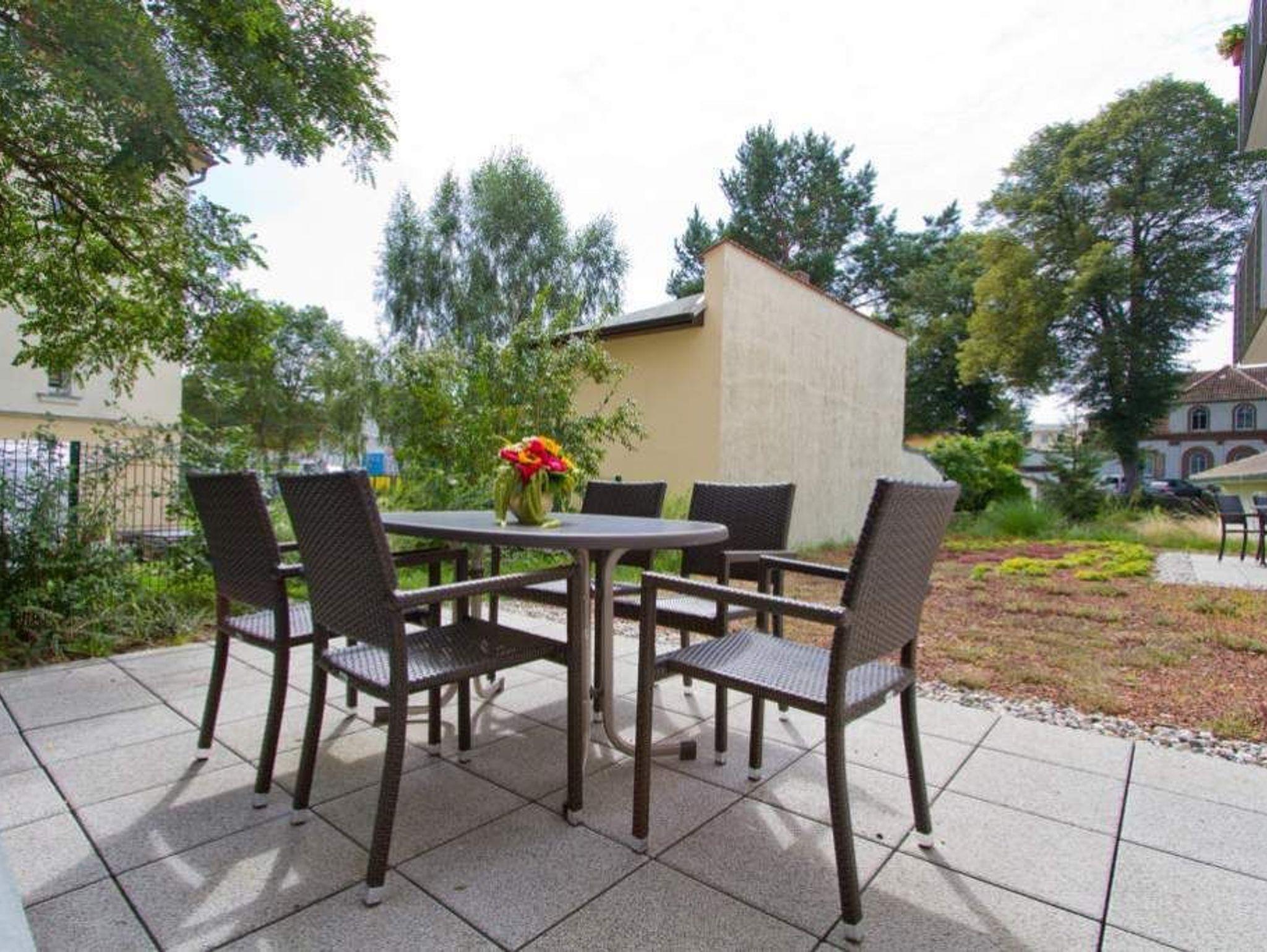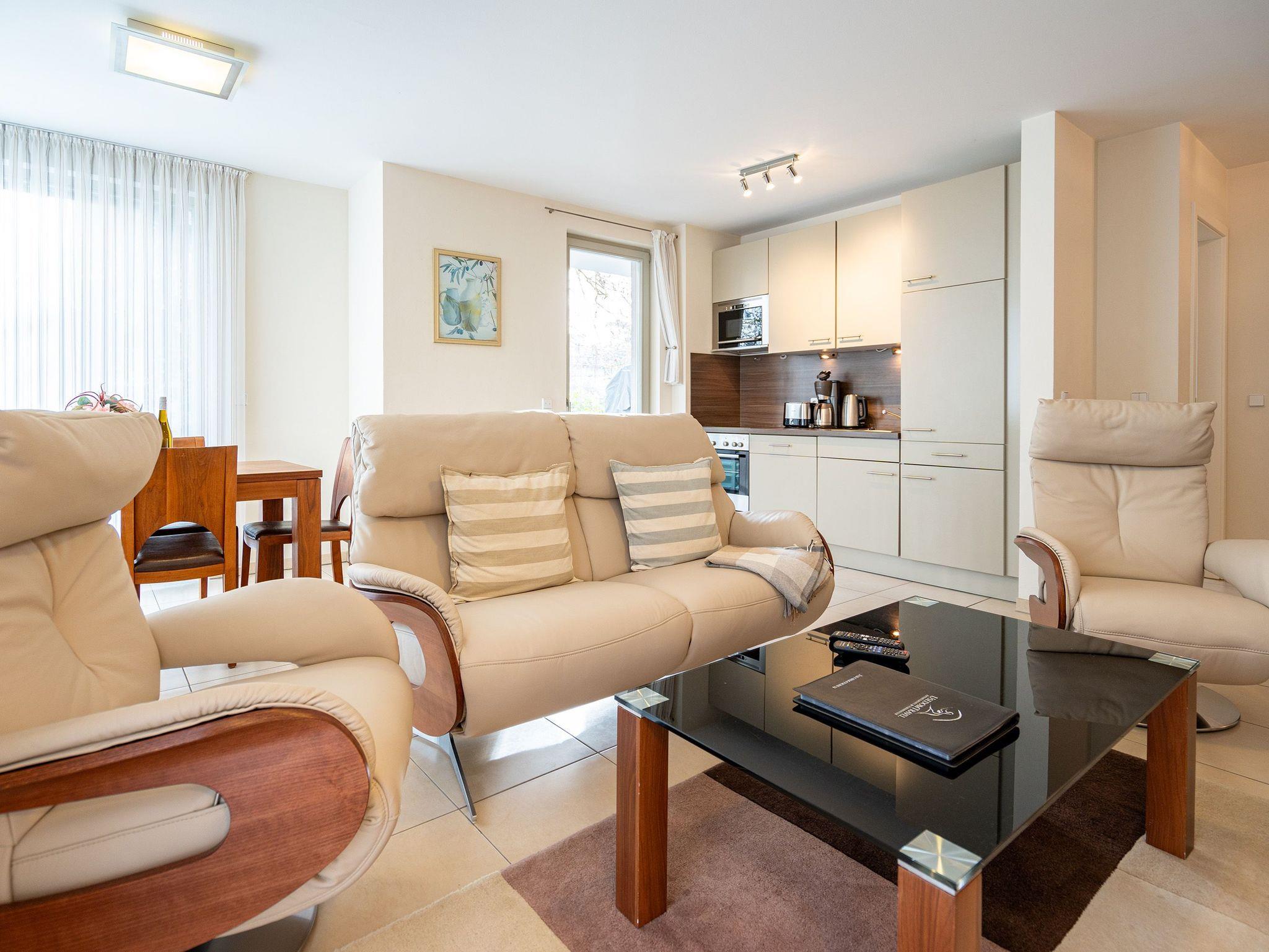 Stilvolle 3-Raum-Ferienwohnung mit Terrasse und Strandkorb nahe dem Strand in Ahlbeck.