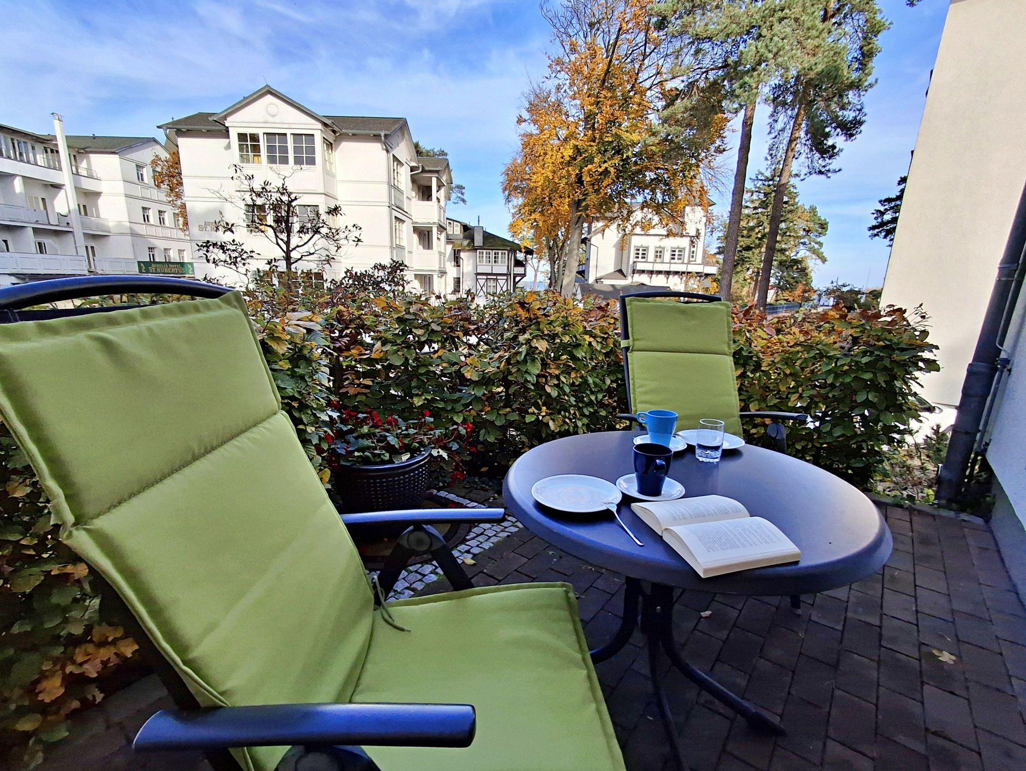 Gemütliche und hochwertige Ferienwohnung nur 100 m vom Strand in Ahlbeck, mit Terrasse und kostenfreiem Tiefgaragenplatz.