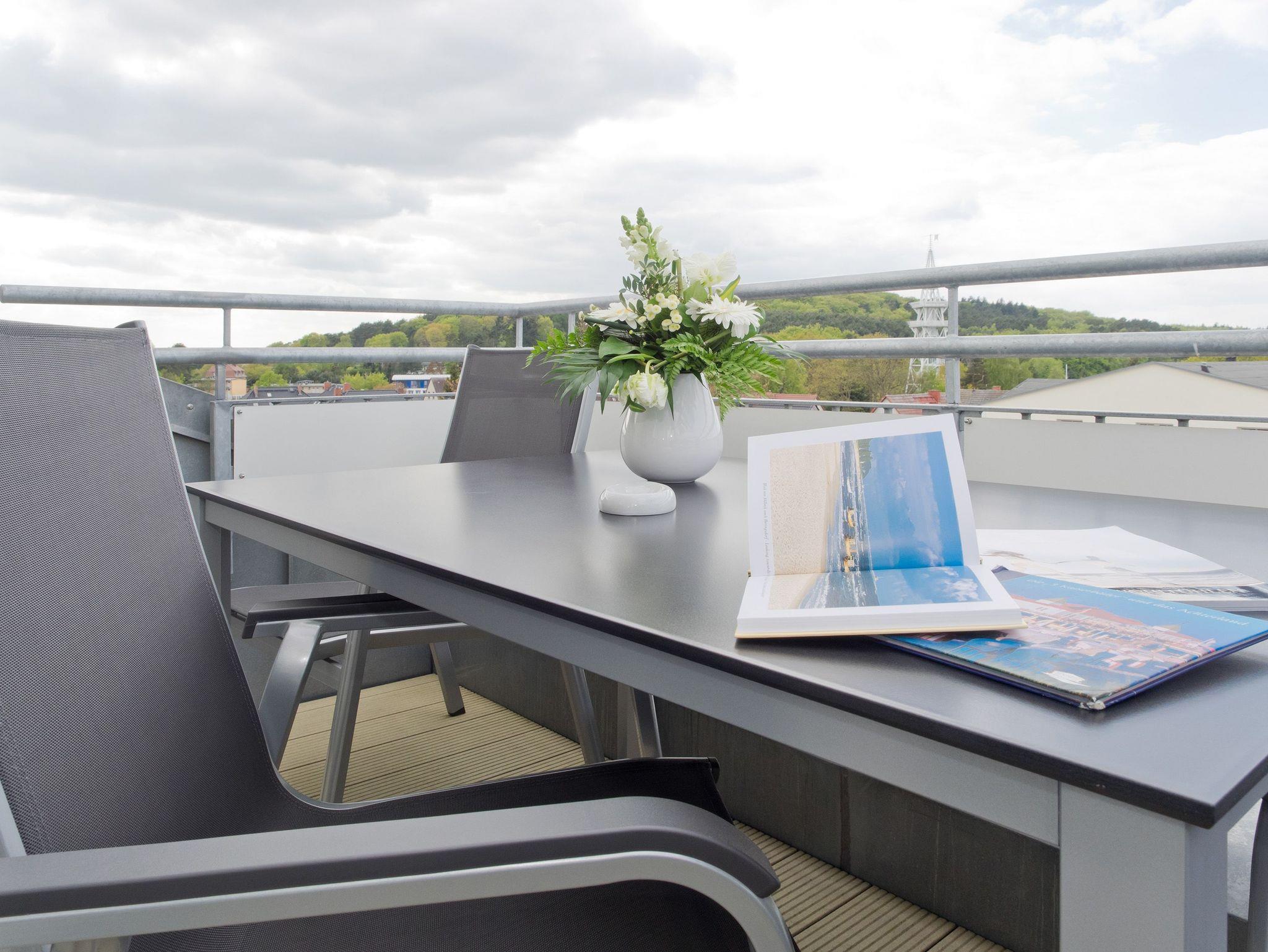 Stylisches Dachgeschoss-Apartment mit Gaskamin, zwei Balkonen und Blick auf das Seebad Ahlbeck.