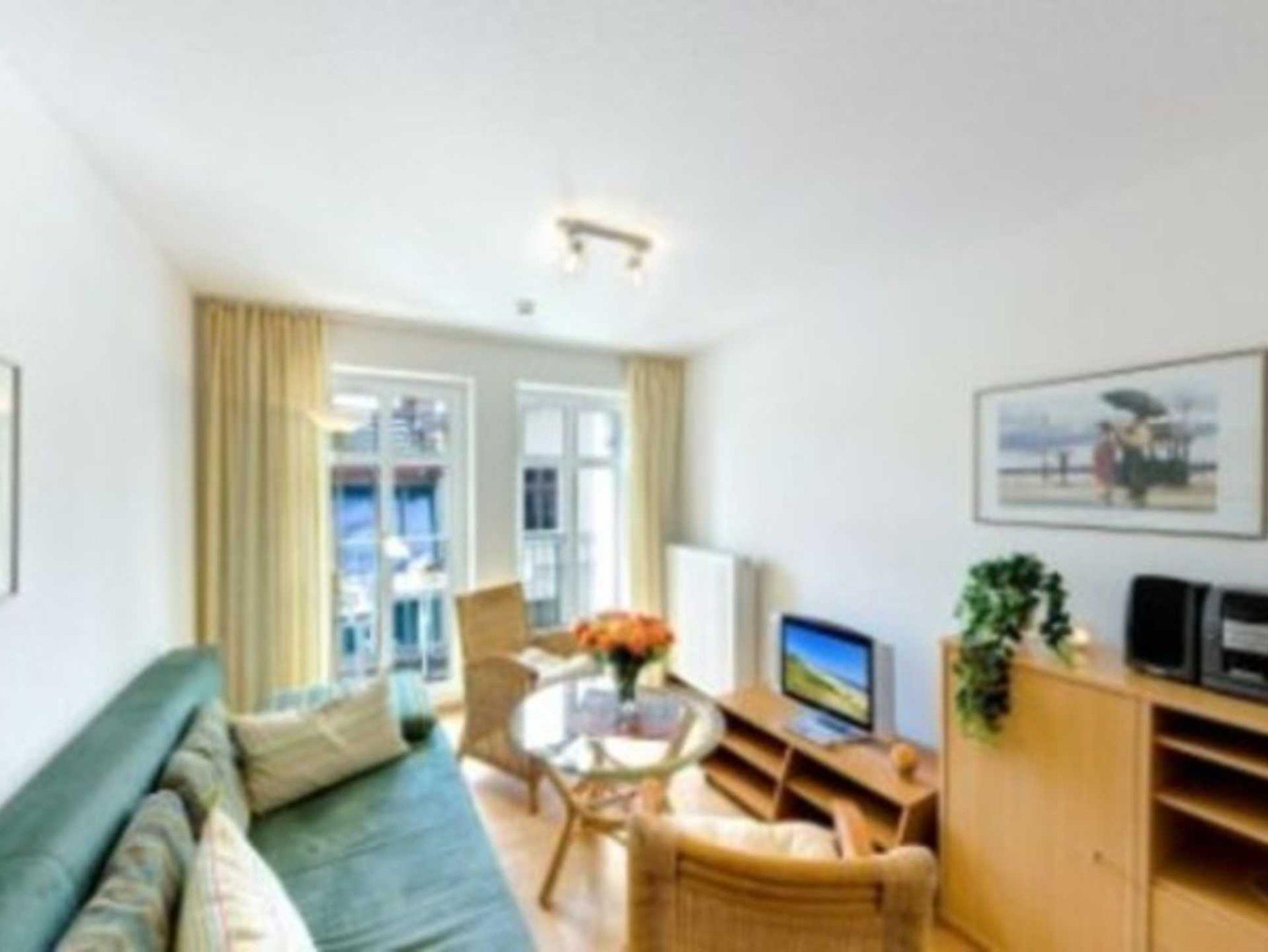1. Reihe, direkt an der Strandpromenade mit BALKON und FAHRSTUHL im Haus! Schönes geräumiges 2-Zimmer-Apartment (ca. 42 m²) mit moderner guter Ausstattung. Separates Schlafzimmer, Wohnzimmer mit Essplatz und Schlafcouch, Küchenbereich, Duschbad, Balkon nach Westen mit Abendsonne. Die Wohnung verfügt über einen Tiefgaragen-Pkw-Stellplatz. In der Garage können auch Fahrräder und ähnliches untergestellt werden. In unserer Villa Germania nebenan gibt es eine Sauna. Von der Villa Aquamarina sind es zum Ortszentrum und der Seebrücke ca. 3 Minuten zu Fuß. Zum Strand sind es 50 m.