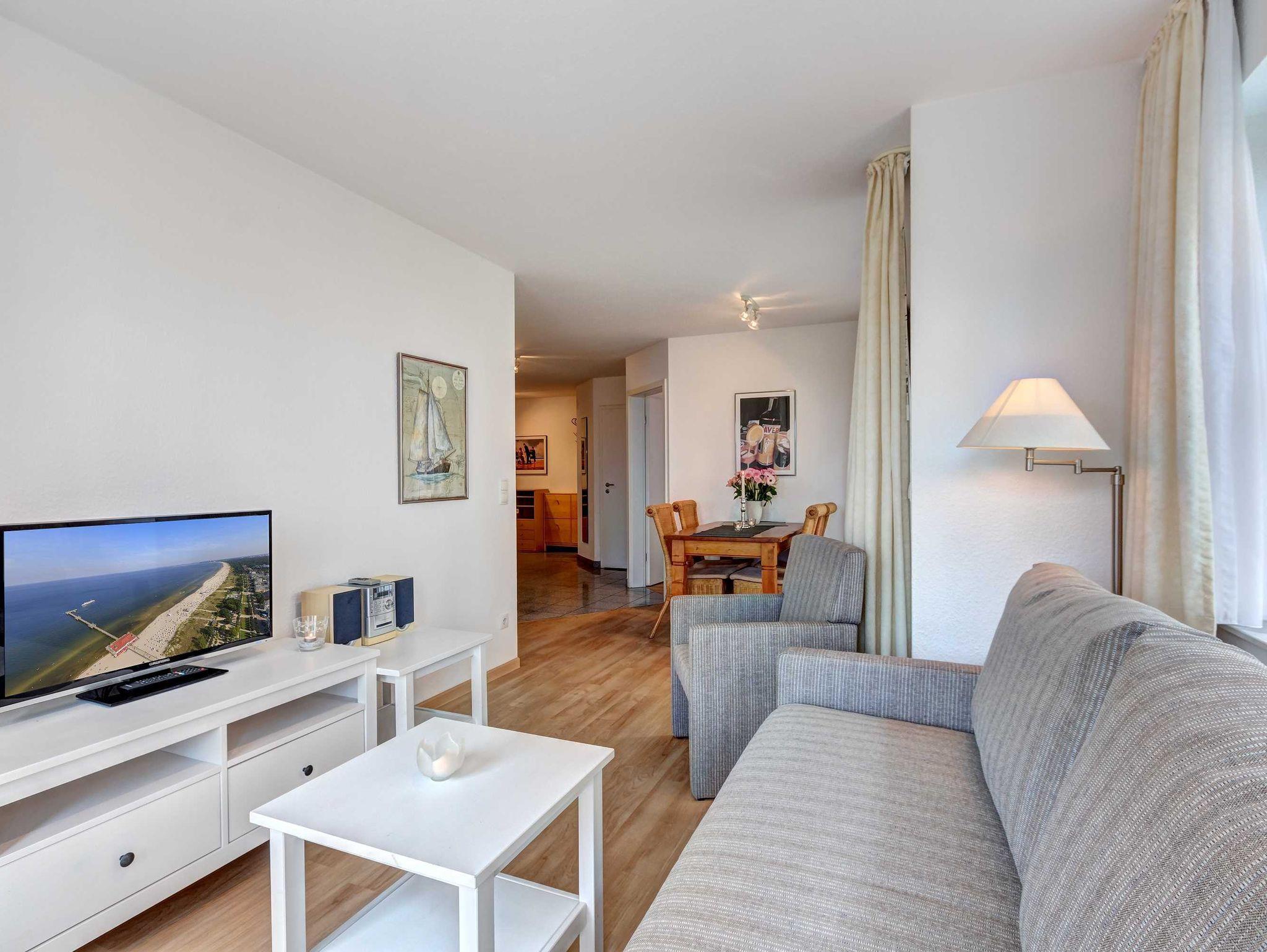 Schönes 3-Zimmer-Appartement mit guter, moderner Ausstattung. 2 Schlafzimmer, Wohnzimmer, Küchenzeile und Essplatz, Bad mit Dusche, zusätzliches WC, Terrasse zur Seeseite mit Blick auf die schöne Strandpromenade. Die Wohnung verfügt über einen Tiefgaragen-Pkw-Stellplatz. In der Garage können auch Fahrräder und ähnliches untergestellt werden. Von der Villa Aquamarina aus können Sie das Ortszentrum und die bekannte Ahlbecker Seebrücke in ca. 3 Minuten zu Fuß erreichen. Zum Strand sind es 50 m. Die Wohnungen der Villa Aquamarina verfügen alle über passwortgeschütztes WLAN (gerätegebunden, Euro 1,50 pro Tag und pro Gerät).