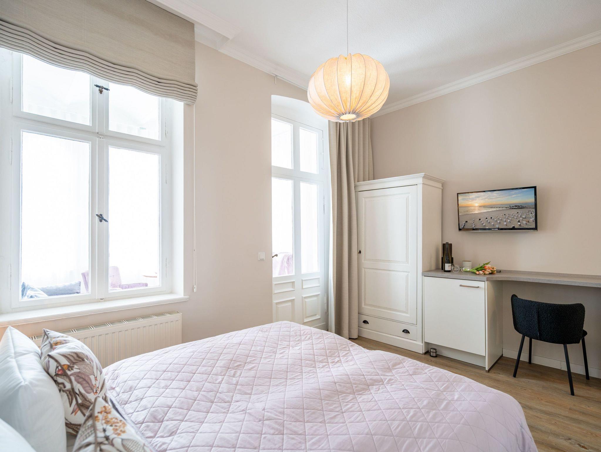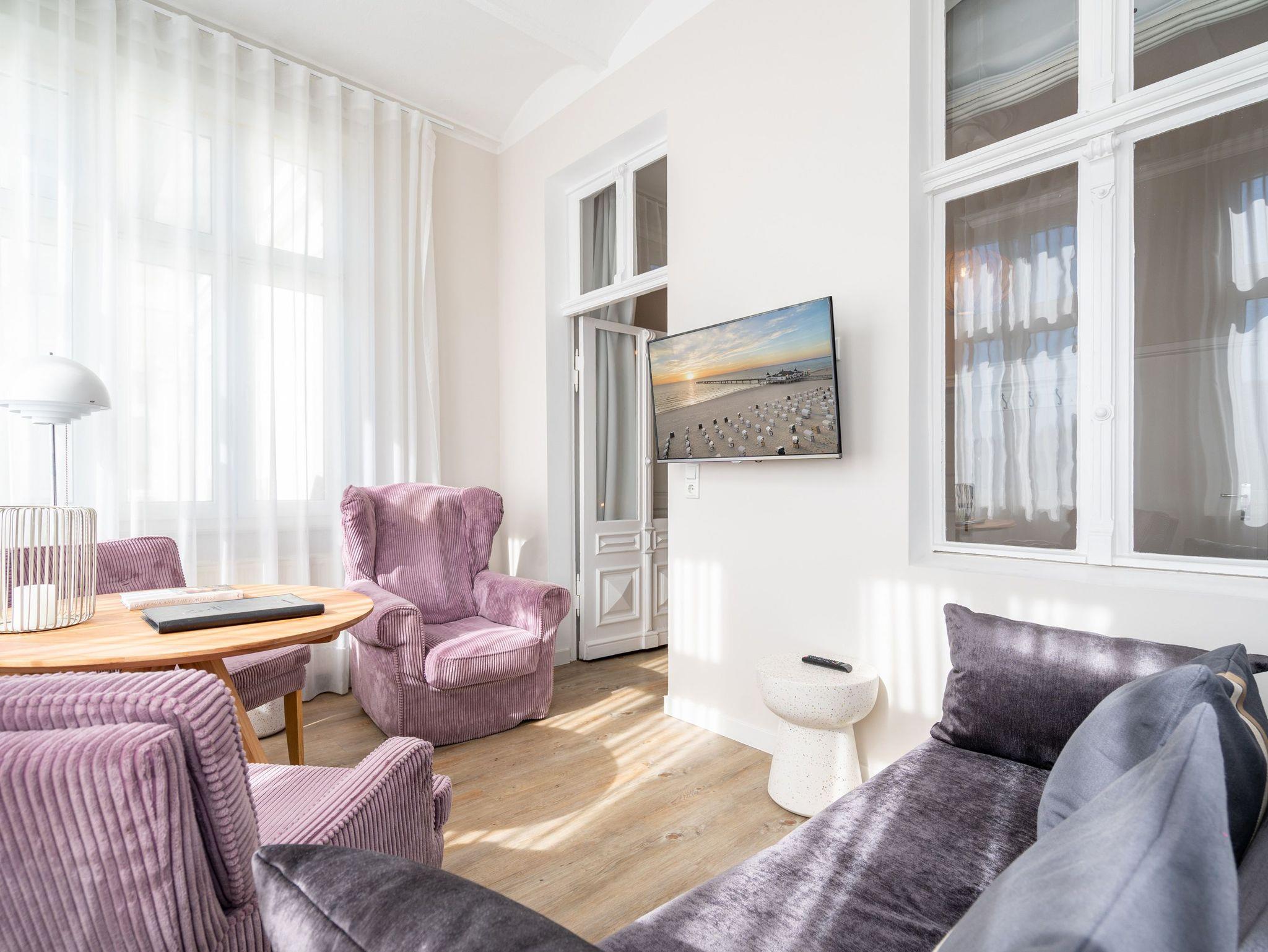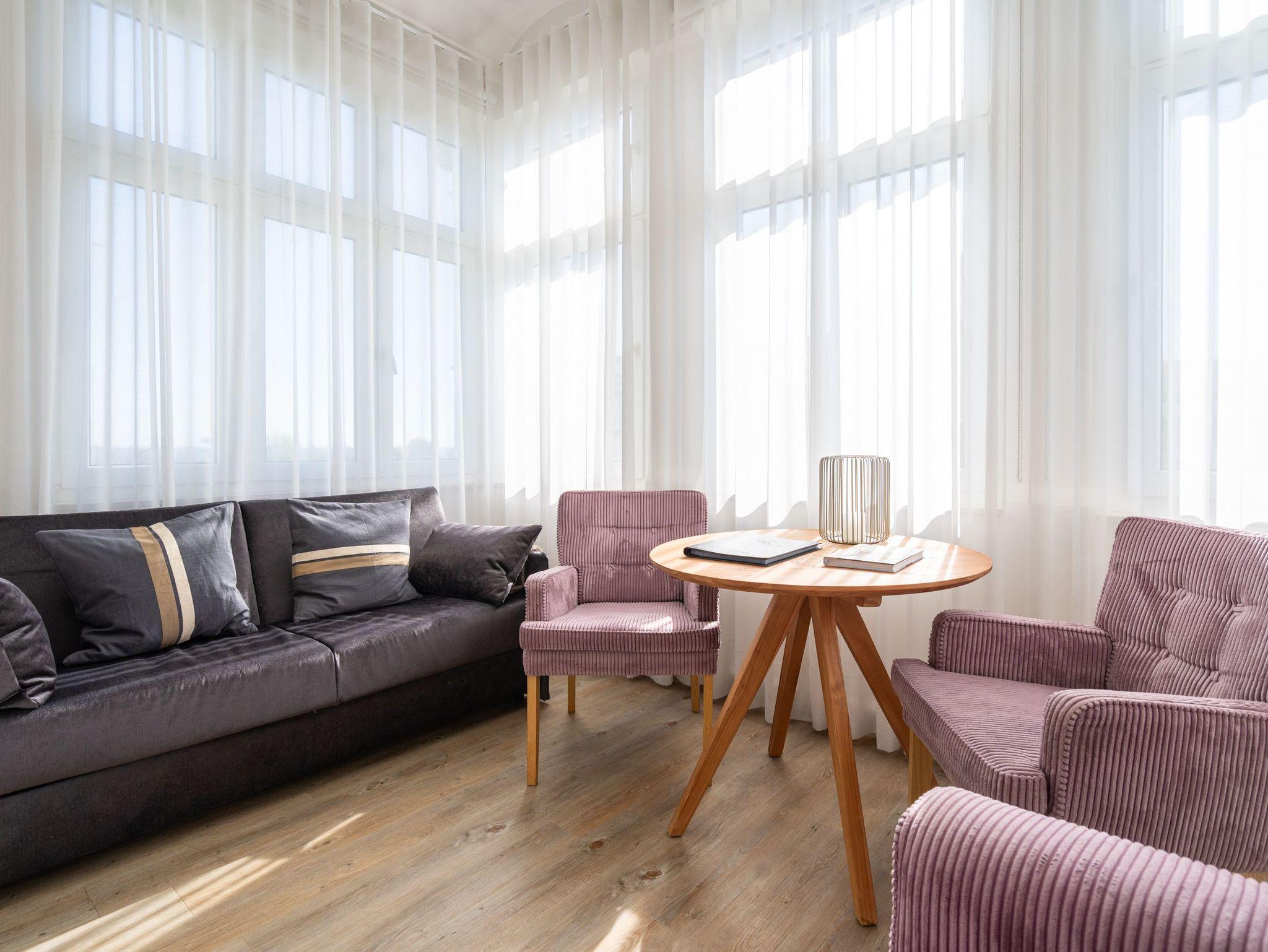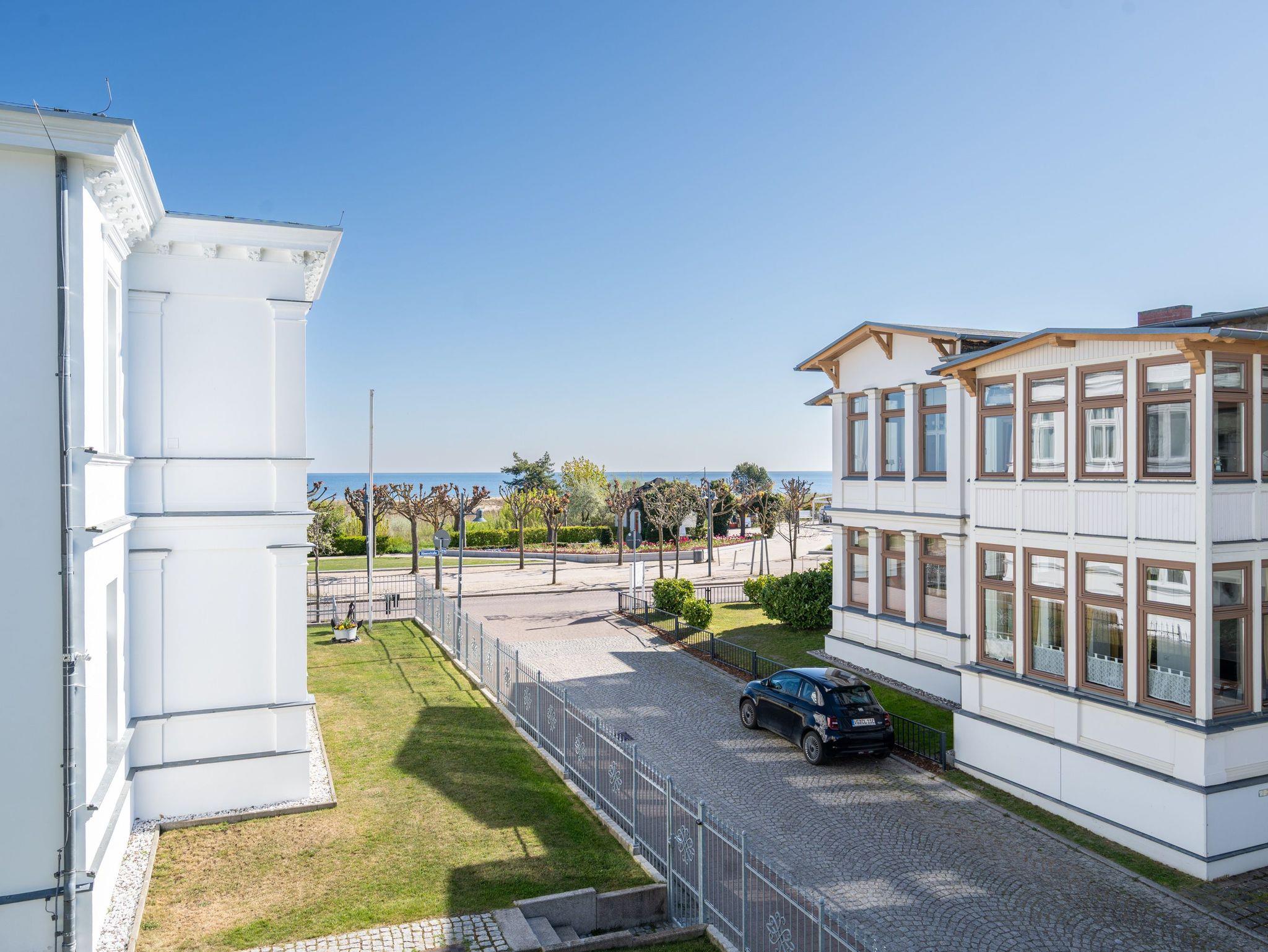 Helle 2-Raum-Ferienwohnung in der Jugendstil-Villa Albertine, nur 40 m vom Strand Ahlbeck mit Ostseeblick und moderner Ausstattung.