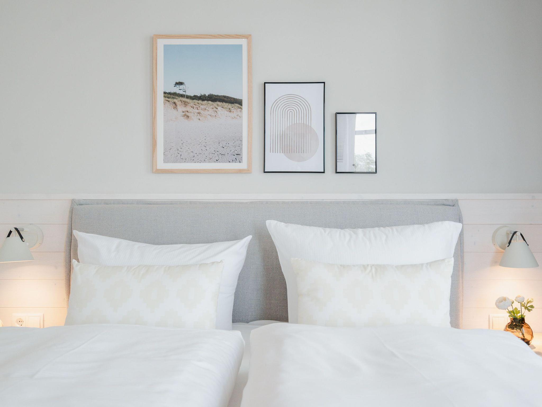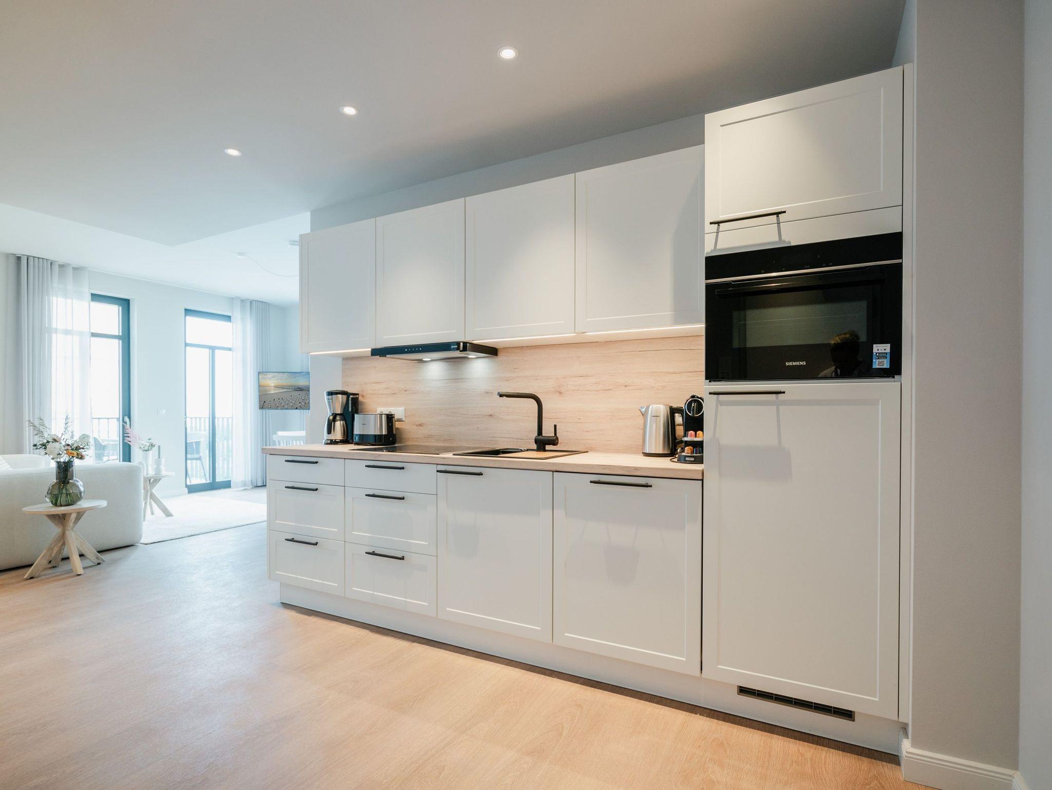 Die 2024 fertig gestellte Strandterrasse liegt direkt an der belebten Strandpromenade und bietet einen einzigartigen Ausblick auf die Grand Dame der historischen Seebrücken sowie die historische Konzertmuschel, einem beliebten Treffpunkt für Kunst und Kultur. Dahinter liegt die Ostsee ? ein Panorama, das zu den schönsten in den Kaiserbädern gehört. Es ist wie das Abtauchen in eine andere Zeit. In eine Zeit, in der man mit Stock, Sonnenschirm und Hut fürs „Sehen und gesehen werden“ über die Promenade schlenderte; aber auch in eine Zeit, in der ? damals wie heute ? Zeit einmal für eine kurze Weile keine Rolle spielt. Weil man angekommen ist im Loslassen, Entspannen und Genießen. Es ist dieser besondere Geruch nach Meeresluft und Freiheit, der in Erinnerung bleibt. Dazu die Bilder, die man mitnimmt. Von langen Strandspaziergängen, vom Lachen in fröhlich schäumenden Ostseewellen, von der Zeit in einem wunderschönen Urlaubsdomizil. Denn genau das ist die Strandterrasse mit ihren 56 modernen und exklusiven Ferienappartements direkt gegenüber der Ahlbecker Seebrücke. Die Ein-, Zwei- oder Dreizimmerwohnungen ? zwischen 40 und 70 Quadratmeter groß ? sind von einer Innenarchitektin gemeinsam mit unserem Erfahrungsschatz an Gästewünschen mit viel Liebe zum Detail und ganz individuell konzipiert worden. Entspannung und Wohlfühlen stehen an erster Stelle. Alles ist aufeinander abgestimmt und sorgt für eine gemütliche Atmosphäre. Wählen Sie zwischen einem Domizil in einem hellen, sandfarbenen Designkonzept oder einem Appartement mit anthrazitfarbenen Farbakzenten. Alle Appartements verfügen gleichermaßen über eine stilvolle und komfortable Einrichtung, die passgenau angefertigt worden ist, sowie über moderne Küchen und Bäder. Jedem Schlafzimmer ist ein eigenes Bad mit Dusche zugeordnet (außer App. B4.5). Die Appartements besitzen fast alle einen Balkon ? viele schauen sogar zur Ostsee hinaus. Die meisten Feriendomizile haben einen Elektrokamin und Infrarotsaunen. Im Erdgeschoss befindet sich ein separater Gemeinschaftsraum für Fahrräder. Außerdem besteht die Möglichkeit, im Gemeinschaftswaschraum 2 Waschmaschinen [&] Trockner zu nutzen. Ergänzt wird das Angebot durch eine Gemeinschaftssauna, die täglich von 11:00 bis 22:00 Uhr nutzbar ist. In der Tiefgarage (Einfahrtshöhe 2,03 Meter) steht für jede Wohnung 1 Pkw-Stellplatz zur Verfügung. Ist alles zur Zufriedenheit untergebracht? Dann kann der Urlaub ja beginnen. Und beim Blick vom Balkon über die Ostsee treffen sich zum Sonnenaufgang das Heute und das Damals. Gelassenheit legt sich beim Gang hinunter an den Strand auf die Seele. Jetzt darf die Zeit stehenbleiben.