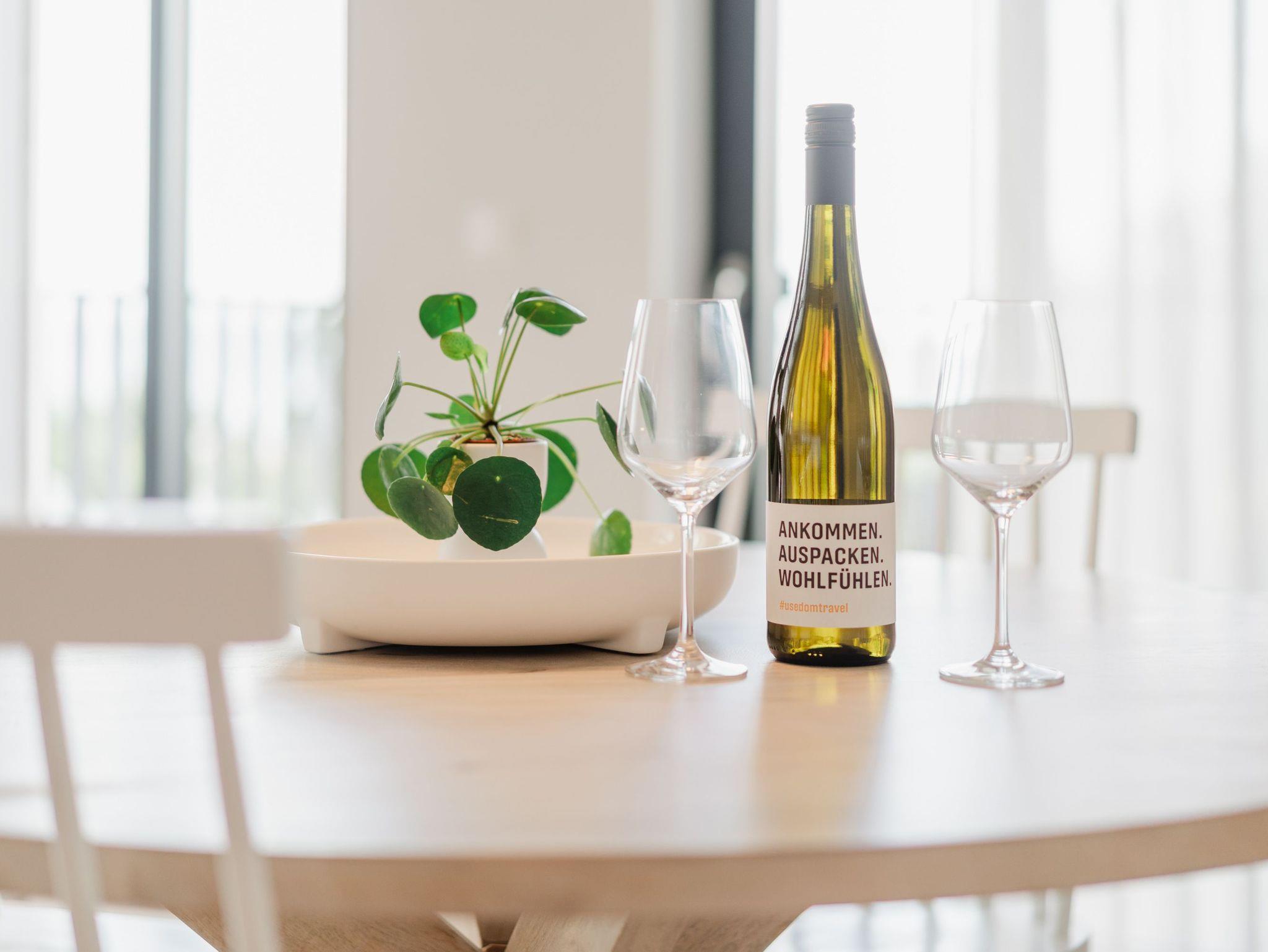 Willkommen in der Strandterrasse (Haus A) und in unserem wundervollen 2-Raum-Appartement A2.3 für zwei Personen im zweiten Obergeschoss. In diesem Appartement wird Ihr Urlaub zu einem ganz besonderen Auszeiterlebnis, denn mehr Meer geht nicht. Vis-à-vis der Ahlbecker Seebrücke können Sie sich aus den beiden Räumen dieses 57 Quadratmeter großen Appartements an der Ostsee gar nicht satt sehen. Ob morgens, wenn die Sonne aus der glitzernden Wasseroberfläche aufsteigt oder nachmittags mit Schäfchenwolken über dem endlosen Blau oder abends, wenn sich der Himmel rosarot einfärbt; ob bei Sonnenschein oder stürmischem Wellengang ? die Tage in dieser mit viel Liebe und einem Händchen für Farben und Formen eingerichteten Unterkunft werden unvergesslich schön. Neben dem Meerblick, den Sie gleich von zwei Balkonen aus (mit Ausrichtung Nord-Ost und Nord-West) genießen können, hat das Appartement eine wundervolle Einrichtung zu bieten, die mit allem erdenklichen Komfort aufwartet. Der offene Wohn- und Essbereich ist zur Seeseite hin ausgerichtet und bietet sowohl beim Essen als auch von der gemütlichen Couch aus, einen atemberaubenden Blick auf die Ahlbecker Seebrücke. Die voll ausgestattete Küchenzeile mit hochwertigen Siemens-Elektrogeräten, darunter ein Backofen, eine Spülmaschine und ein 3-Zonen-Induktionsherd, ist ein Garant für ein entspanntes Kochen. Der 50-Zoll-Flachbildfernseher ist internetfähig und bietet spannende Unterhaltung an kuscheligen Tagen und Abenden. Das Schlafzimmer ist mit einem komfortablen Boxspringdoppelbett (1,80m x 2,00m) und einem großen Kleiderschrank ausgestattet. Auch hier befindet sich ein 43-Zoll-Flachbildfernseher. Dusche, WC, Waschtisch und sogar eine Infrarotsauna zum Entspannen und Abschalten ? das innenliegende Bad ist Ihre ganz persönliche Wellnessoase. Ihr Auto können Sie auf dem zur Wohnung gehörenden PKW-Stellplatz in der Tiefgarage parken. So dass Sie nur noch anzukommen brauchen und der Urlaub mit Meerblick kann beginnen.