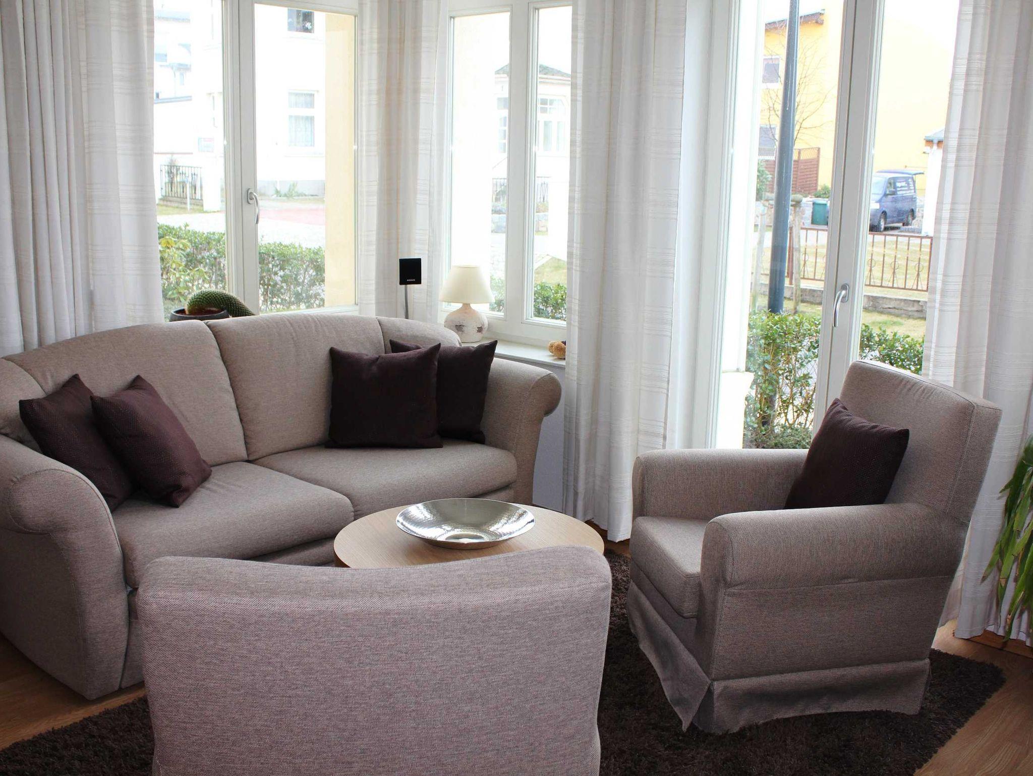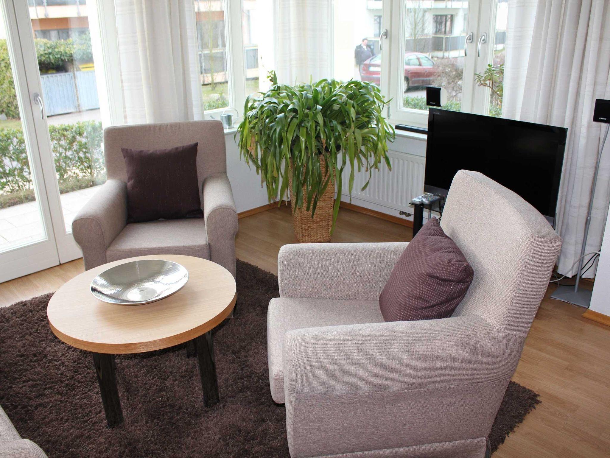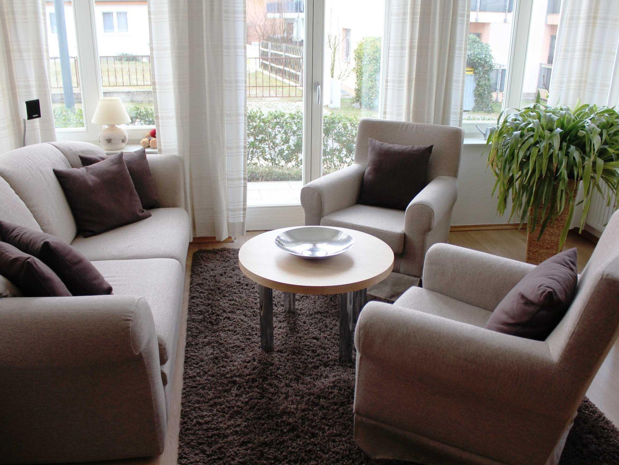 Im Erdgeschoss der Villa befindet sich die 76 m² große, modern und geschmackvoll eingerichtete Dreizimmer- Nichtraucherwohnung, die über ein geräumiges Wohnzimmer mit Küchenzeile, zwei Schlafzimmer und ein Badezimmer mit Dusche und WC verfügt. Vom 2. Schlafzimmer aus haben Sie Zutritt zum Balkon. Verleben Sie Ihren Urlaub hier bequem zu viert. In der Veranda mit ihren großen Fenstern können Sie bei jedem Wetter die Lichtstrahlen genießen.Von dort aus betreten Sie auch die Terrasse, die Sie bei sonnigem Wetter zum Verweilen einlädt. Kostenloser W-LAN Zugang vorhanden!