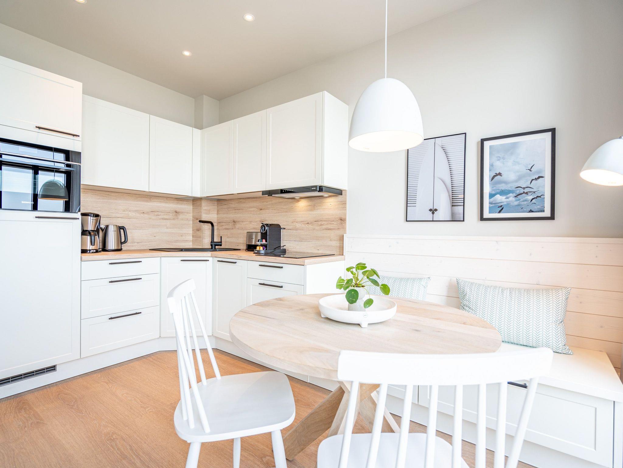 Visasvis der Seebrücke reicht der Blick aus dem exklusiven 2-Raum-Appartement A 3.4 (Haus A) in der 3. Etage von der Heringsdorfer Seebrücke bis nach Swinemünde. An Tagen mit klarer Seeluft sogar bis zu den weißen Klippen von Misdroy. Dieses kleine, aber feine Urlaubsdomizil wartet auf seinen 48 Quadratmetern mit viel Komfort und Finesse auf. Der offene Wohnbereich und das Schlafzimmer sind ideal für zwei Personen und sind ein Traum für alle Ostseeliebhaber. Denn von der werden Sie hier nicht genug bekommen. Nordisches Design gibt beim Interieur den Ton an. Modern und hyggelig zugleich. Genießen sie aus den stylischen, drehbaren Relaxsesseln die Füße auf bequeme Hocker ausgestreckt den fantastischen Blick aufs Meer. Ein Elektrokamin (ohne Wärmeabgabe) sorgt zudem für eine heimelige Atmosphäre. Sogar im Sommer. Ein 50-Zoll-Flachbildfernseher steht für Ihre Unterhaltung zur Verfügung. Die offene Küchenzeile ist mit einem Backofen, einem 3-Platten-Induktionskochfeld, einer Spülmaschine, einer Nespresso-Kapselmaschine und vielem mehr komplett ausgestattet. Hier fehlt es an nichts, um raffinierte Gerichte zu zaubern und sie anschließend am schönen Esstisch gemeinsam einzunehmen. Nur einen Schritt aus dem bodentiefen Fenster hinaus und Sie stehen auf dem ersten Ost-Balkon mit einem Beistelltisch, zwei Sesseln und einer Gartenliege. Entspannen Sie hier bei Sonnenschein und atmen die energieaufladende Brise, die direkt vom Wasser herüberweht, tief ein. Das Schlafzimmer verspricht im luxuriösen Boxspringdoppelbett (2,00m x 2,00m) wunderbare Stunden der Ruhe. Hier befindet sich ein großer Kleiderschrank und ein weiterer 43-Zoll-Flachbildfernseher. Mit Meerblick aufwachen, das ist doch purer Luxus. In diesem charmanten Appartement gehört er zur Grundausstattung dazu. Kaum aus dem Bett, können Sie vom Schlafzimmer aus auf dem zweiten Balkon (Richtung Ost) die aufgehende Sonne begrüßen. Denn auf Usedom entsteigt sie jeden Morgen der Ostsee. Das innenliegende Bad ist mit einer Dusche, einem Waschtisch und einer Toilette ausgestattet. Zur Wohnung gehört in der Tiefgarage ein PKW-Stellplatz. Genießen Sie in diesem wunderschönen Urlaubsparadies unvergessliche Tage am Meer.
