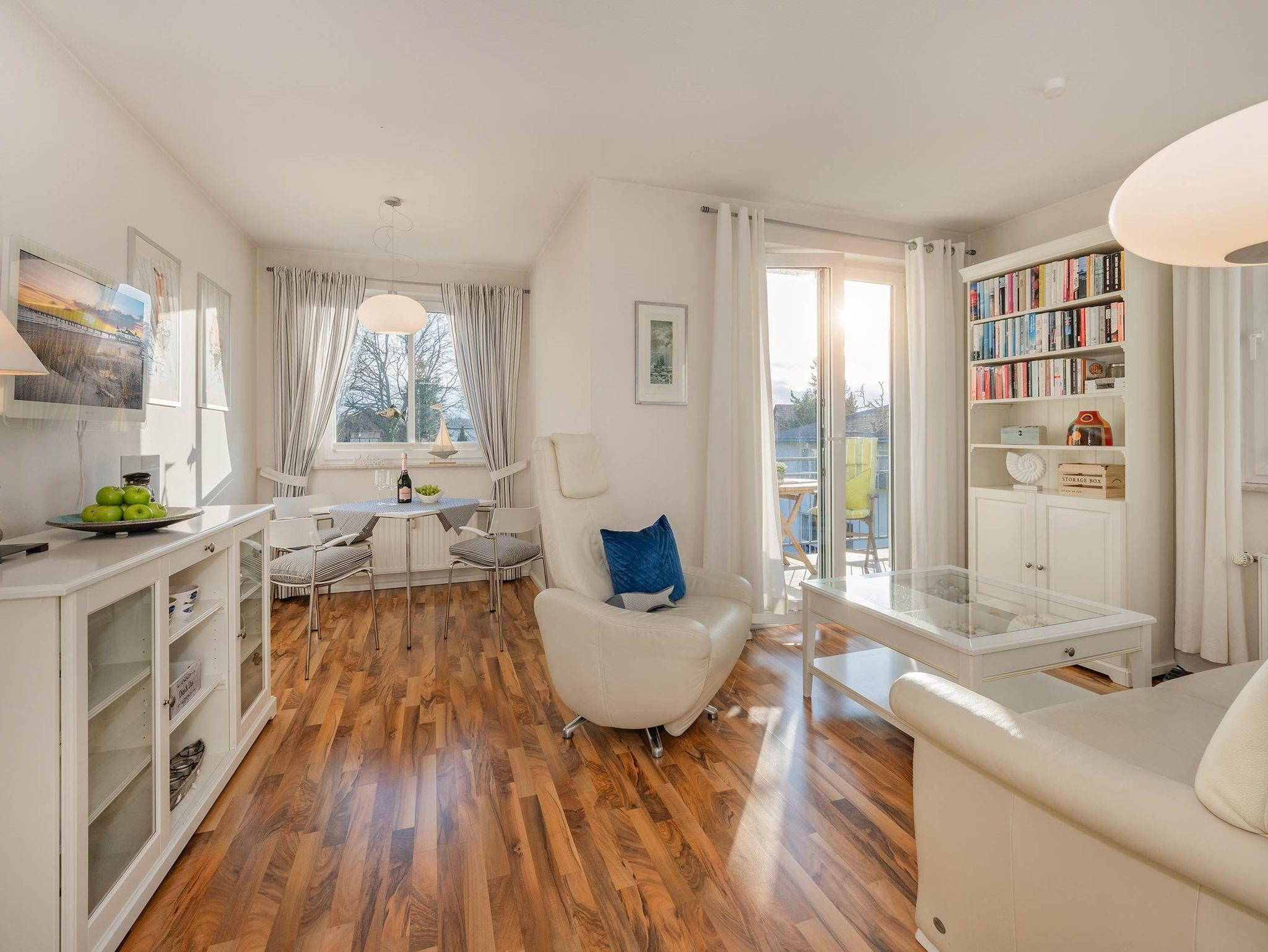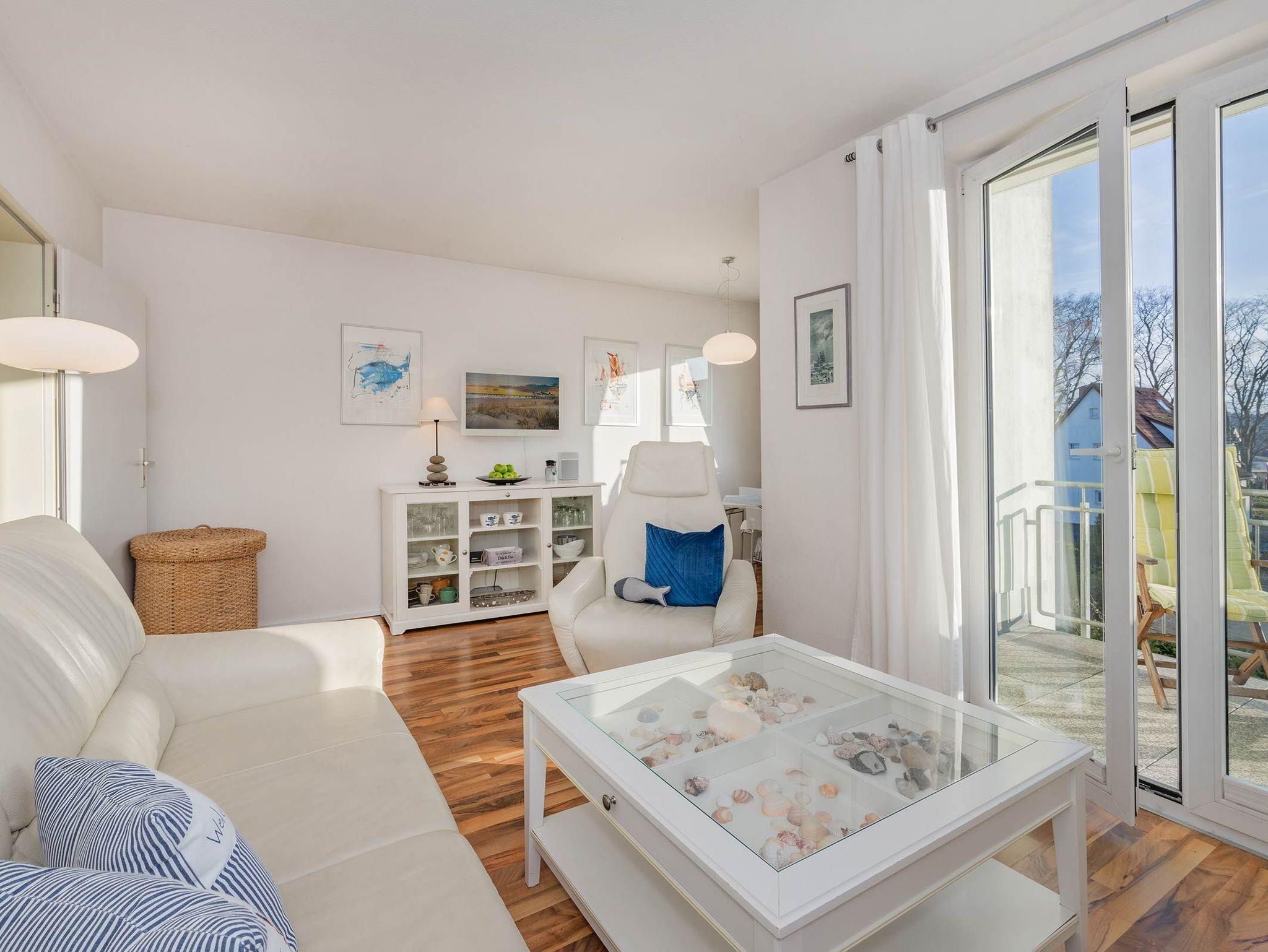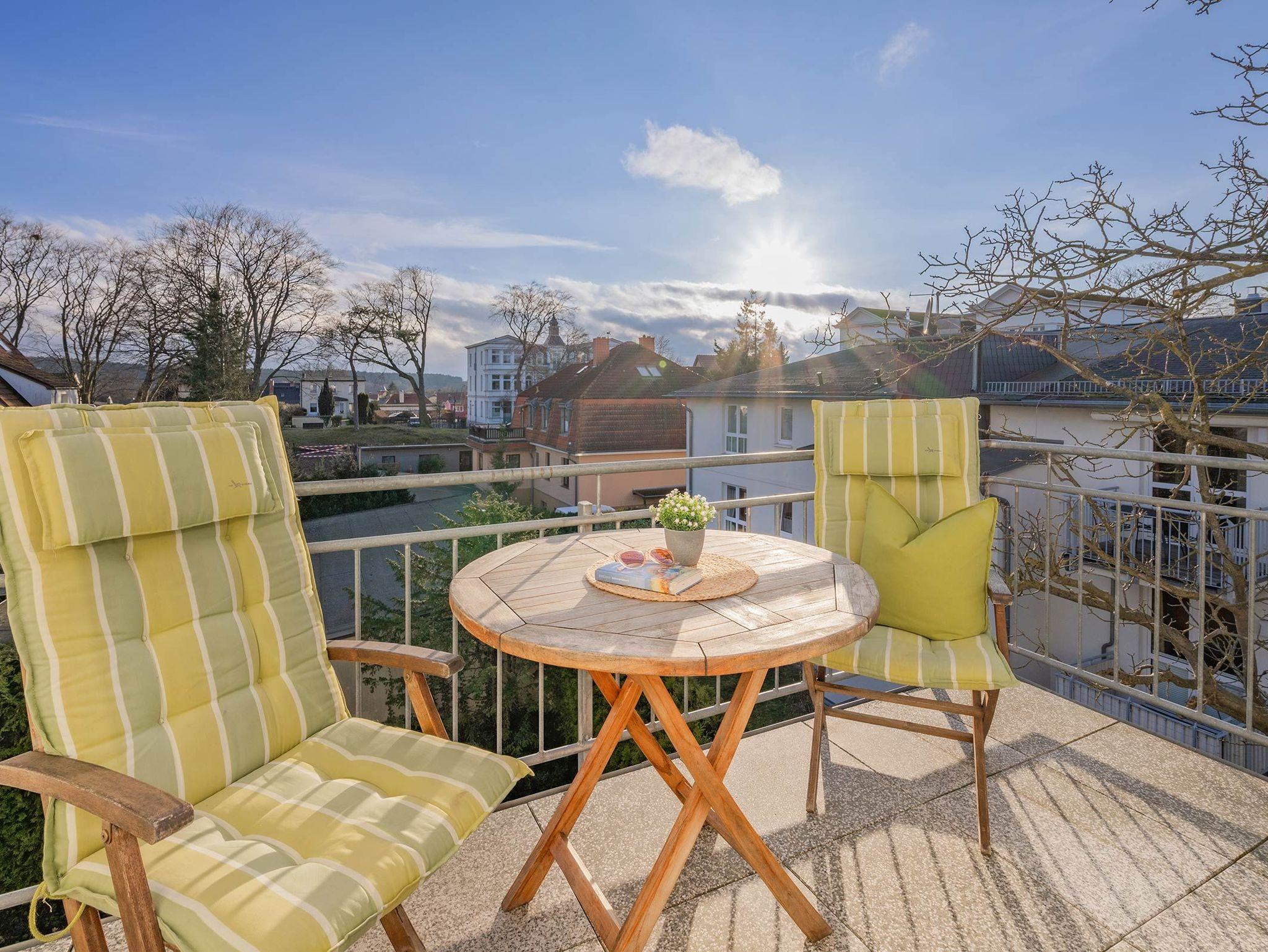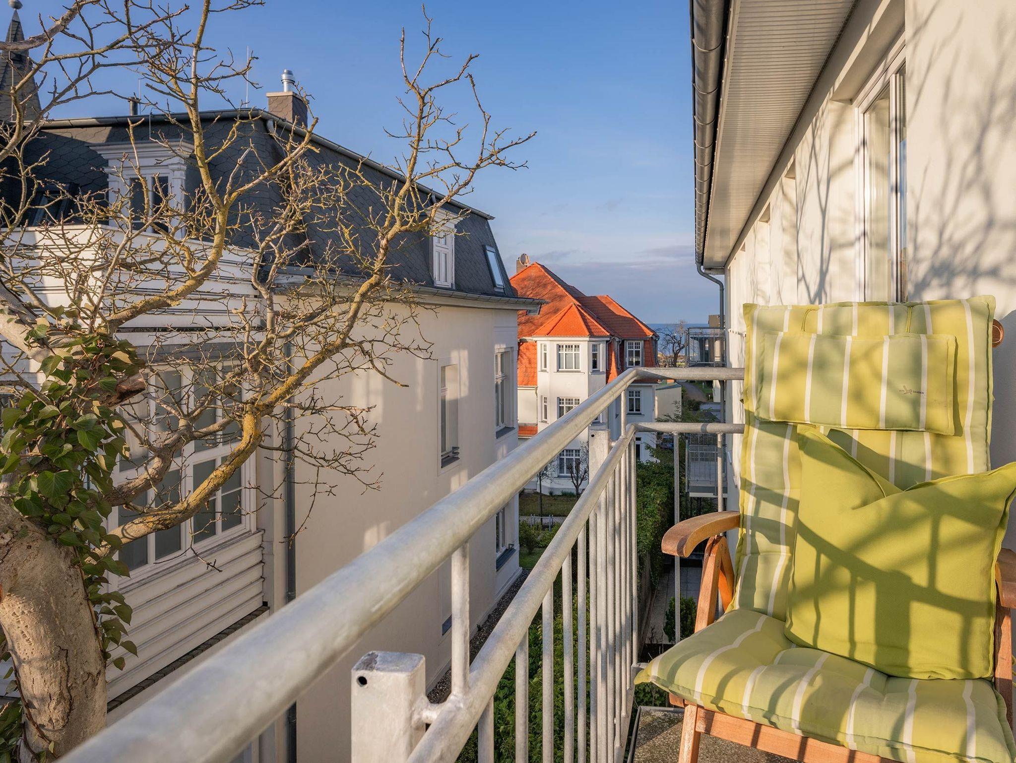 Moderne Ferienwohnung 10 im Ferienidyll Ahlbeck, 150 m vom Ostseestrand, mit Balkon und Meerblick.