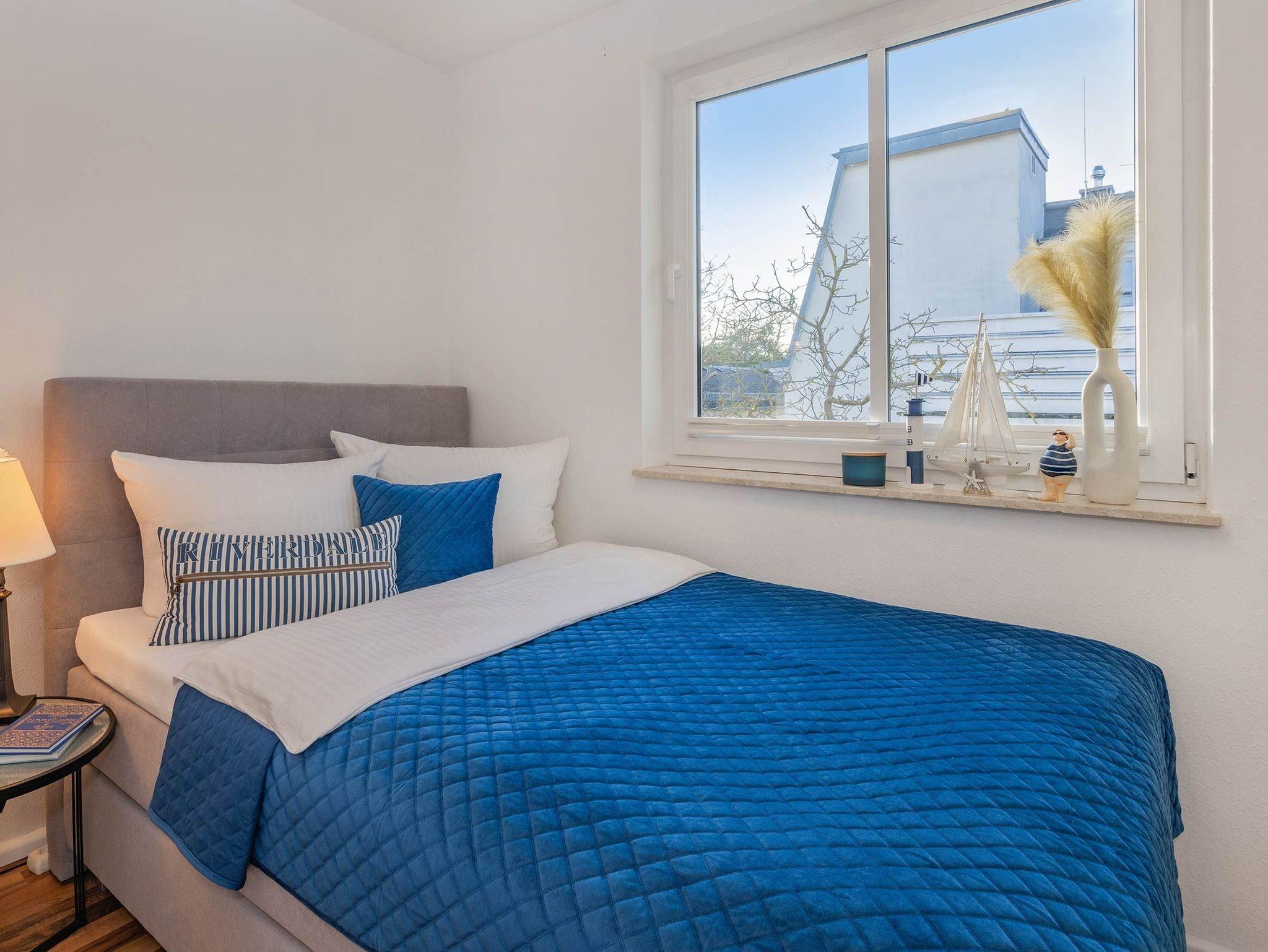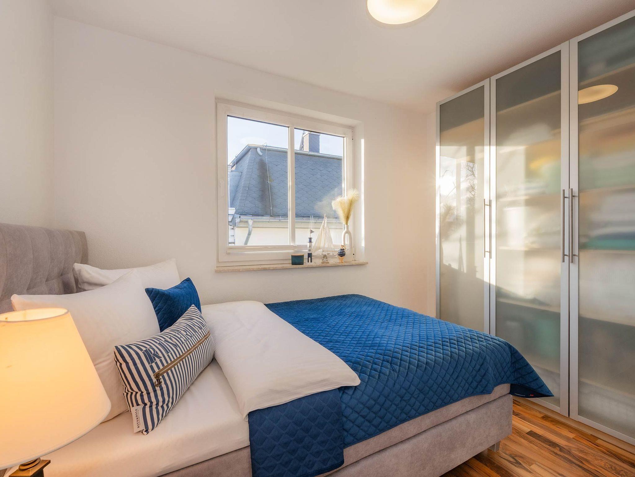 Das Schlafzimmer lädt mit einem hochwertigen Boxspringbett (1,40 m) zu erholsamen Nächten ein. Ein großzügiger Kleiderschrank bietet ausreichend Stauraum für Ihre Garderobe und sorgt dafür, dass Sie sich schnell wie zu Hause fühlen.