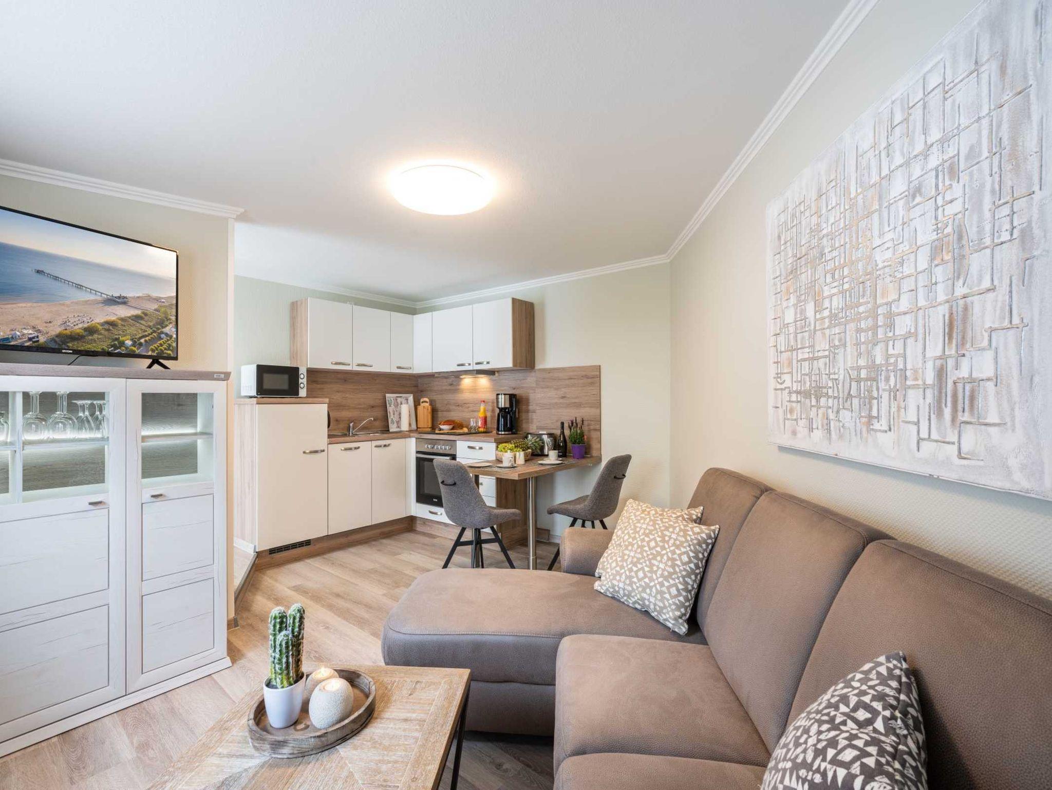 Modern ausgestatteter Bungalow in Ahlbeck mit Garten, WLAN und Nähe zum Strand für erholsamen Familienurlaub.