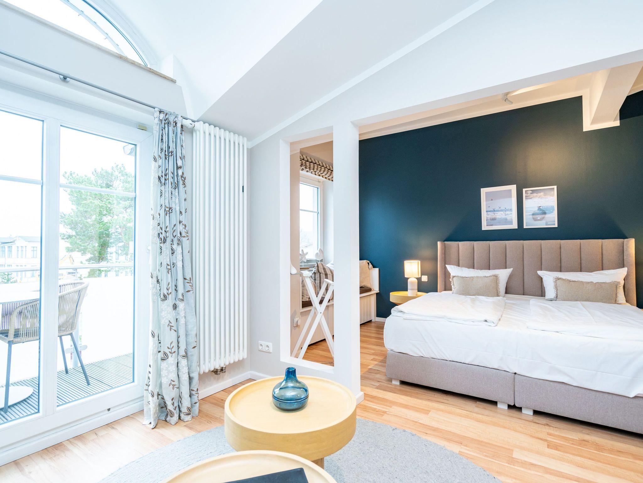 Charmantes Dachgeschoss-Appartement mit Ostseeblick, Kamin und kostenlosem Strandkorb für erholsame Urlaubstage in Ahlbeck.