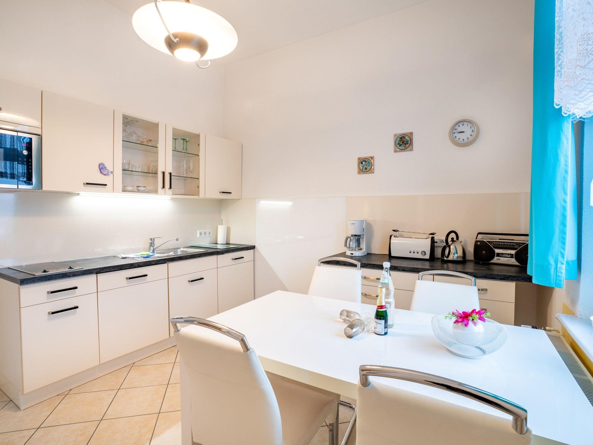 Die separate Küche ist mit einem 2-Platten-Herd, Mikrowelle, Wasserkocher, Toaster und Kaffeemaschine sowie Kühlschrank angestattet. Bad mit Dusche und WC.