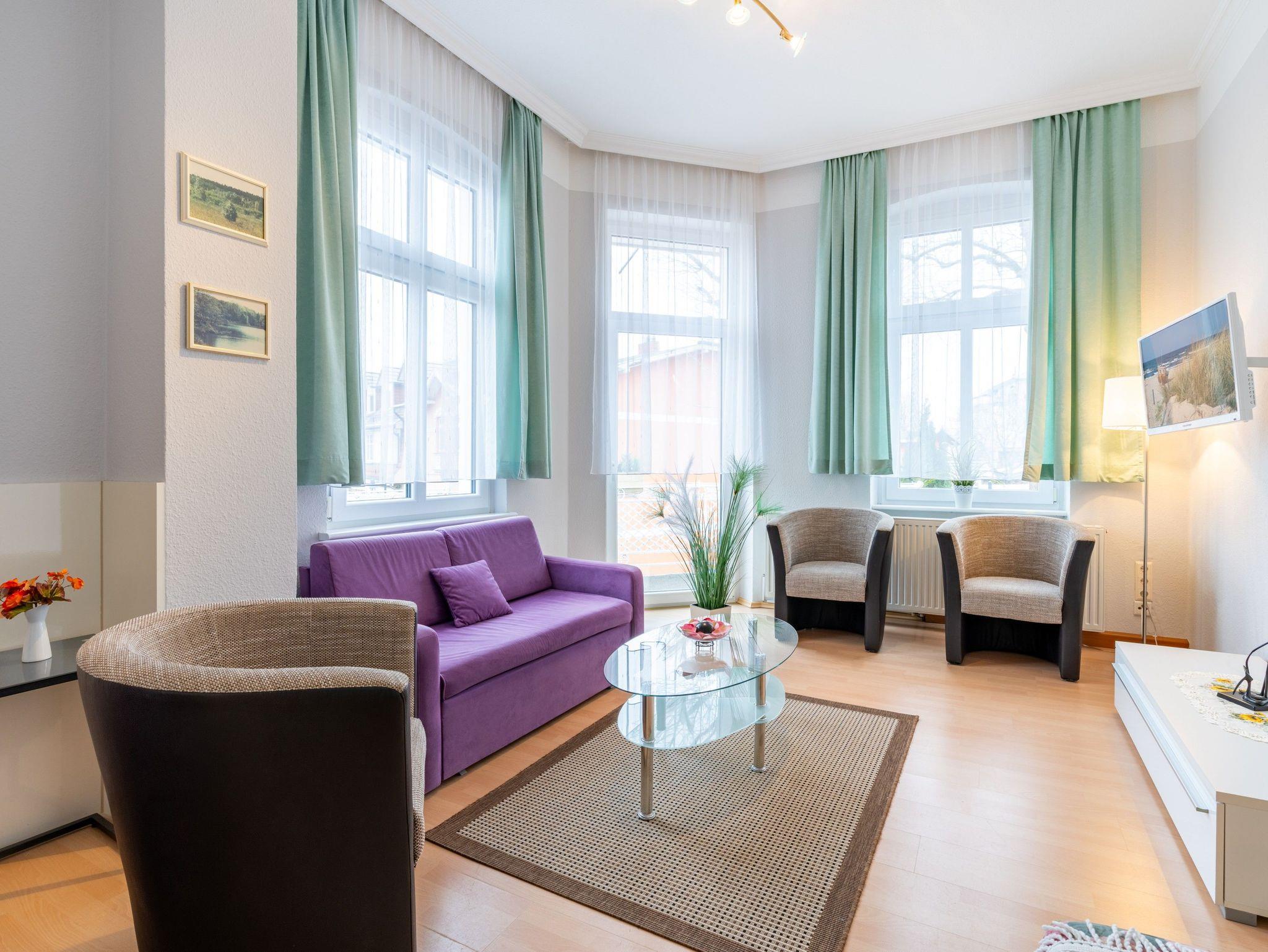 Komfortable Ferienwohnung in Ahlbeck, nur 150 m vom feinen Ostseestrand und der historischen Seebrücke entfernt.
