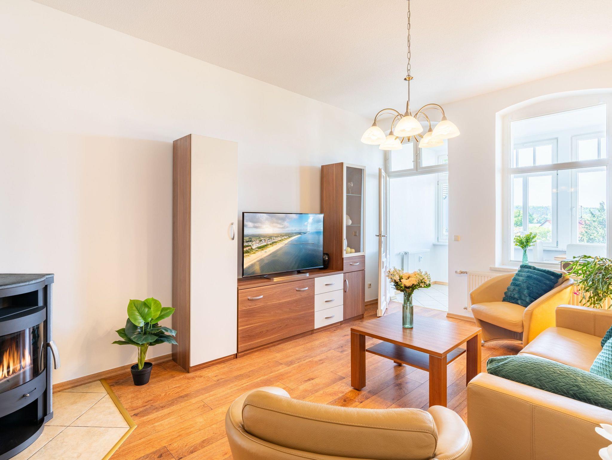 Modernes Appartement UsedomEngel in Ahlbeck, 300 m vom Ostseestrand, mit Kamin und WLAN.