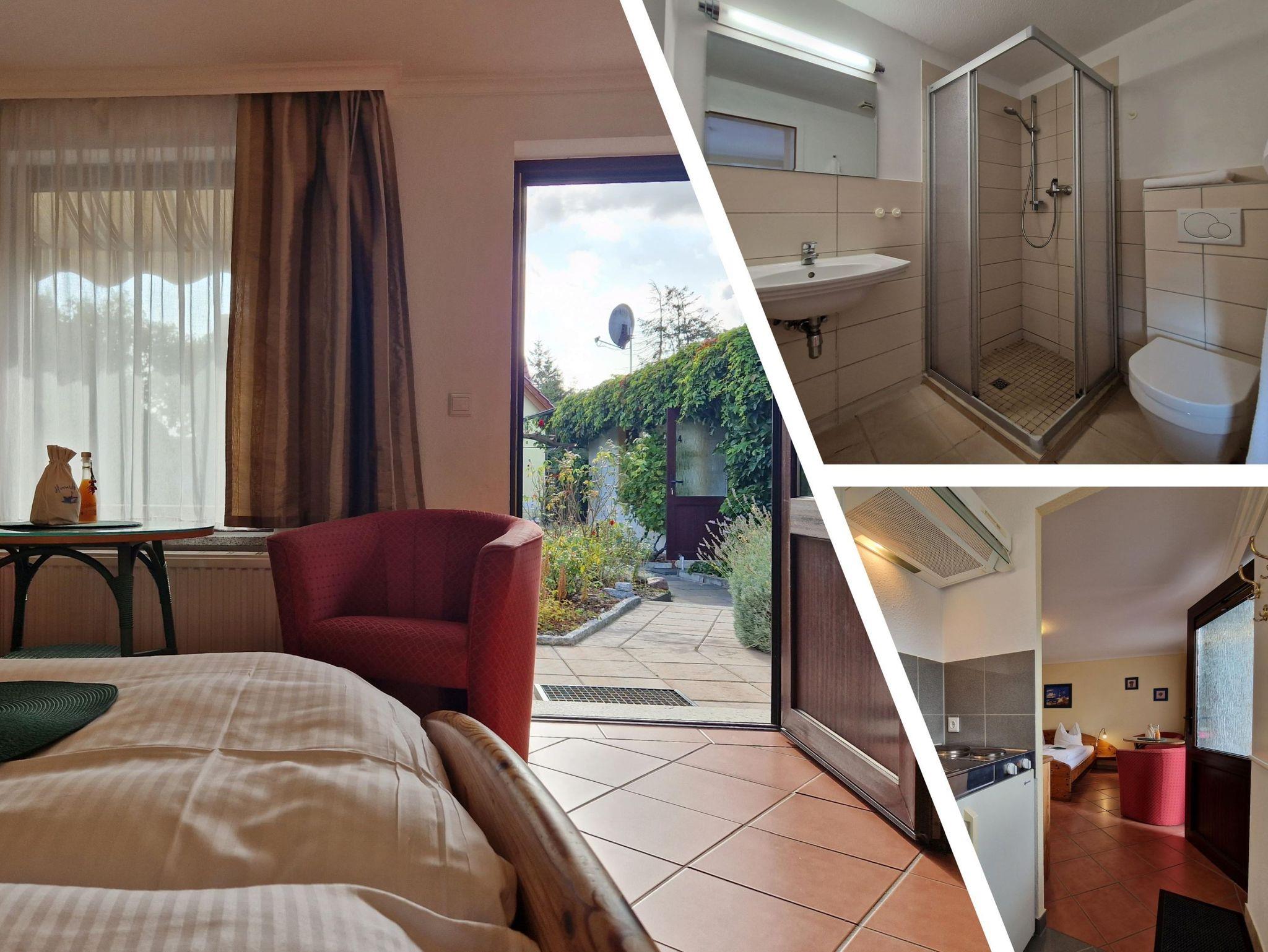 Vor der Haustür lädt der Garten zum Frühstücken oder Entspannen in der Sonne ein - genießen Sie die Ruhe und Natur um sich herum. Das Badezimmer ist mit einer Dusche und WC ausgestattet, sodass Sie sich während Ihres Aufenthalts rundum wohlfühlen können.