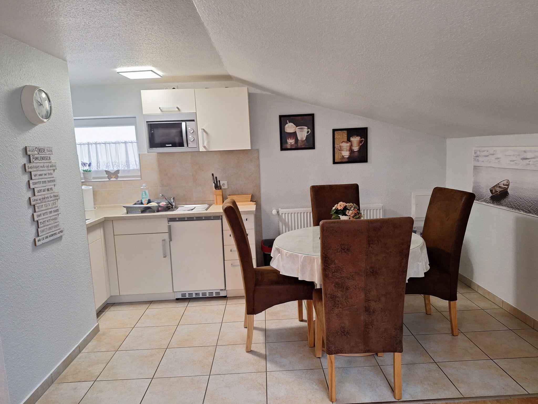 Ein kleiner Esstisch für 4 Personen ist ebenfalls in der Küche