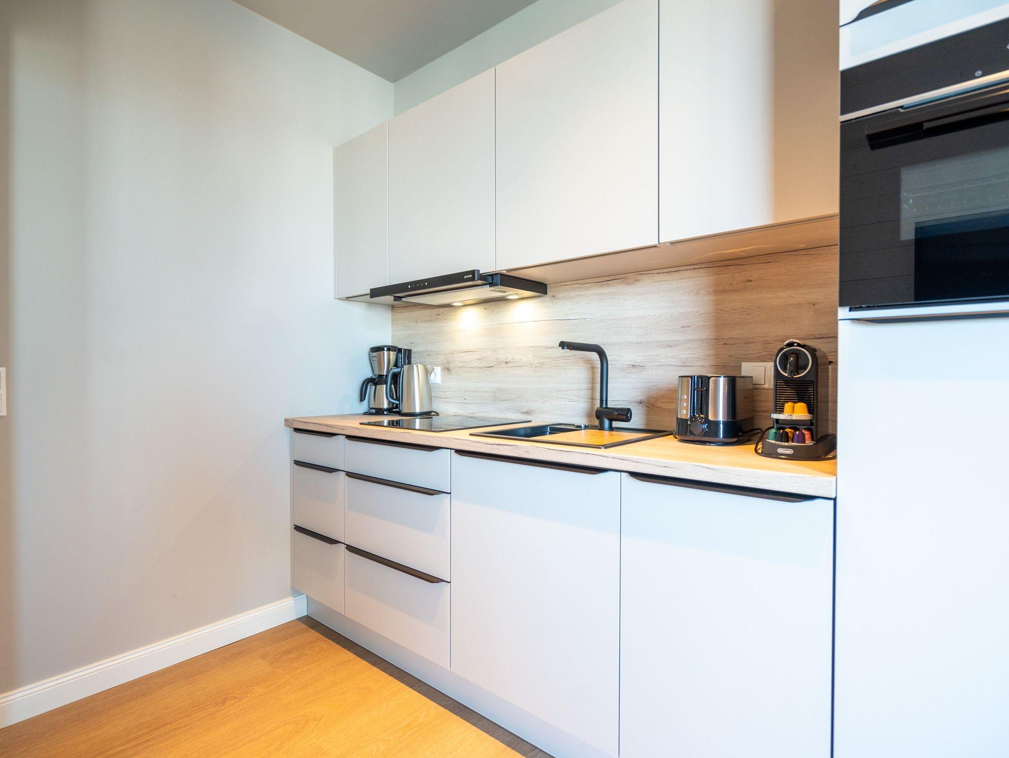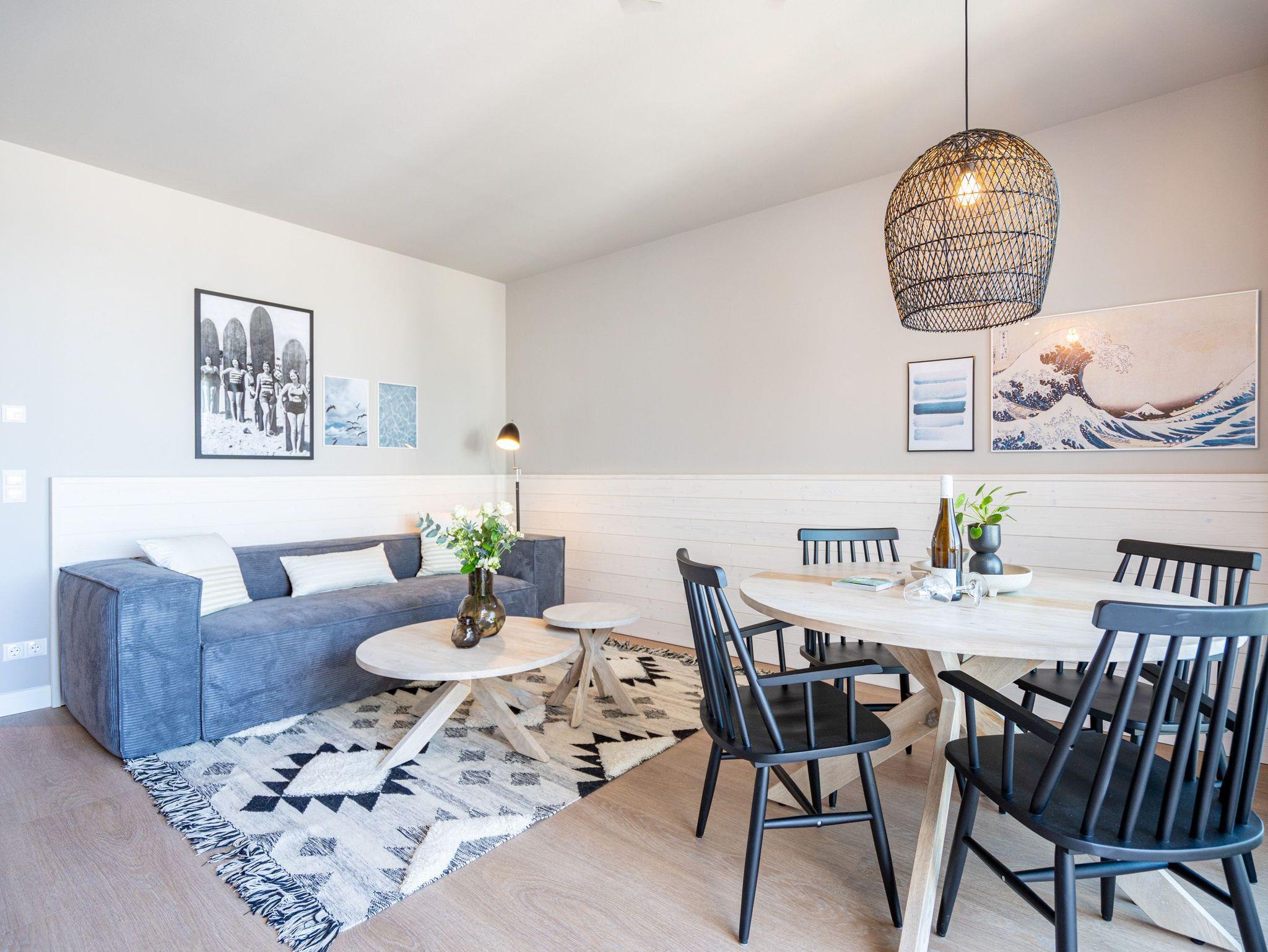 Offen, kuschelig und stilvoll ist das Appartement B 4.8 (Haus B) im 4. Obergeschoss der Strandterrasse am besten zu beschreiben. Es ist ein wunderschöner Rückzugsort für bis zu 2 Personen und ein Kind bis 5 Jahre in unmittelbarer Nähe zur Ostsee. Über die können Sie aus dieser Wohnung und erst recht von Ihrem Balkon aus sogar schauen. Ein Anblick, der atemberaubend ist. Sie werden ins Schwärmen kommen, wenn Sie hier frühstücken oder die Sonne genießen. 2000 Sonnenstunden hat Usedom zu bieten. Freuen Sie sich also auf viel Licht und eine gesunde Meeresbrise. Viel Licht lassen die großen Fenster auch in das 59 Quadratmeter große Appartement einfallen. Dadurch erhält die moderne und behagliche Einrichtung eine Leichtigkeit, die man sich im Urlaub wünscht. Ein stylisches Wohnzimmer mit Sofa, Elektrokamin (ohne Wärmeabgabe) und 50 Zoll Flat-TV sorgen für Entspannungsmöglichkeiten. Nehmen Sie Platz am großen Esstisch. Hier können Sie die in der vollausgestatteten Küche zubereiteten Mahlzeiten genüsslich einnehmen. Auch zum Spielen, Klönen und Lesen eignet er sich hervorragend. In der Küche finden Sie alle Geräte vor, die Sie brauchen werden ? so ein Backofen, ein 3-Platten-Induktionsherd, ein Geschirrspüler, ein Wasserkocher, eine Kaffeemaschine und sogar eine Nespresso-Kapselmaschine. Dem morgendlichen Kaffee- oder Teegenuss steht also nichts im Weg. Sie werden sich gut ausgeruht fühlen, nach einer Nacht im komfortablen Boxspringdoppelbett (1,80m x 2,00m) und auch Ihr Kind wird himmlisch in seinem Kindertagesbett (0,80m x 1,40m) schlafen. Das Schlafzimmer, von dem aus Sie ebenfalls auf den Balkon hinaustreten können, ist außerdem mit einem großen Kleiderschrank und einem weiteren Flat-TV (43 Zoll) ausgestattet. Das Badezimmer verfügt über eine Dusche, einen Waschtisch und ein WC. Für das ganz besondere Wellnesserlebnis sorgt eine Infrarotsaunakabine, die ins Bad eingebaut ist. Hier werden Sie den hektischen Alltag garantiert schnell vergessen haben. Parken Sie Ihr Auto auf dem PKW-Stellplatz in der Tiefgarage und kommen Sie an in Ihrem Urlaubstraum an der Ostsee. Denn Reisen heißt nicht nur wegfahren, sondern auch ankommen.