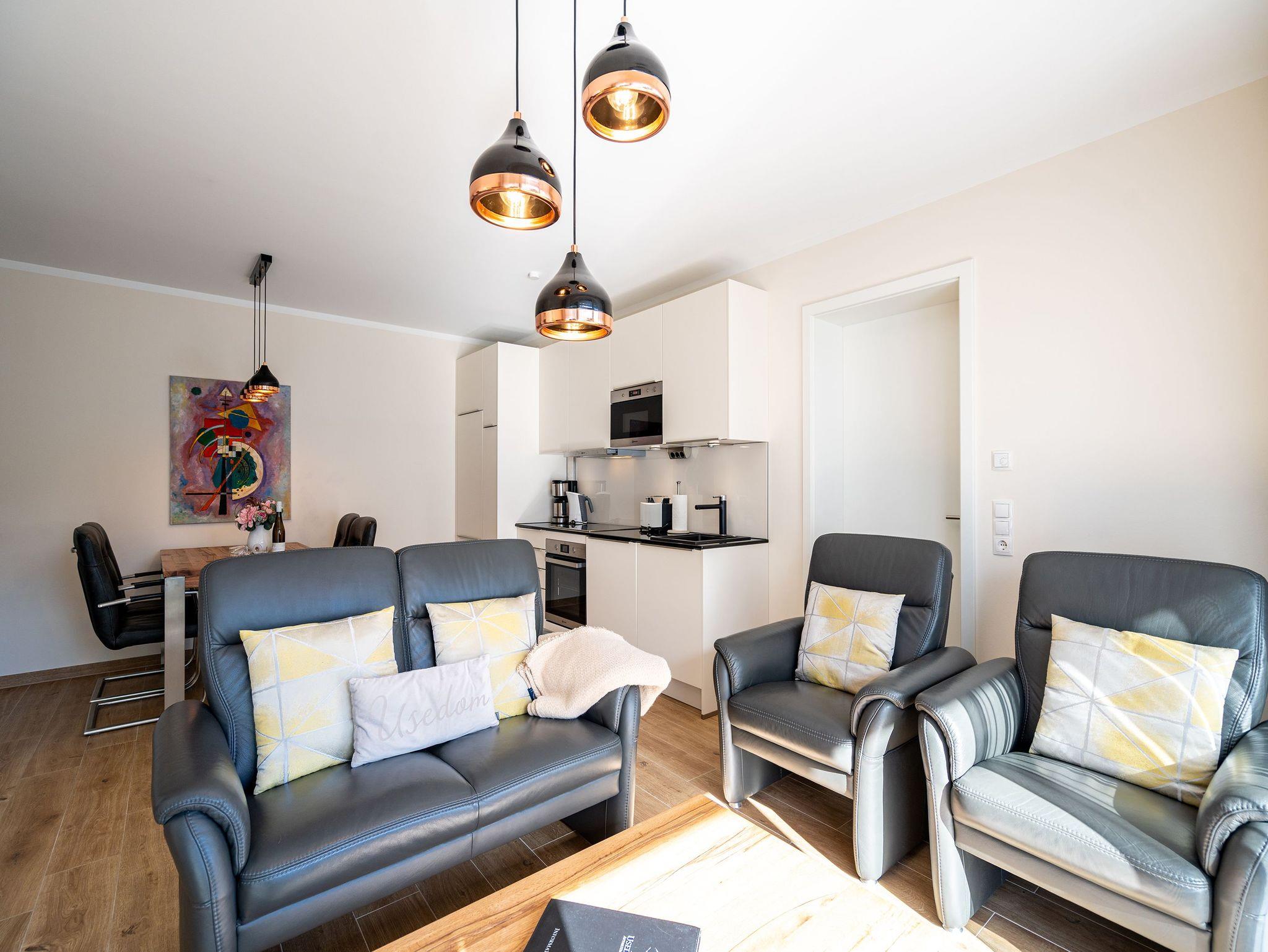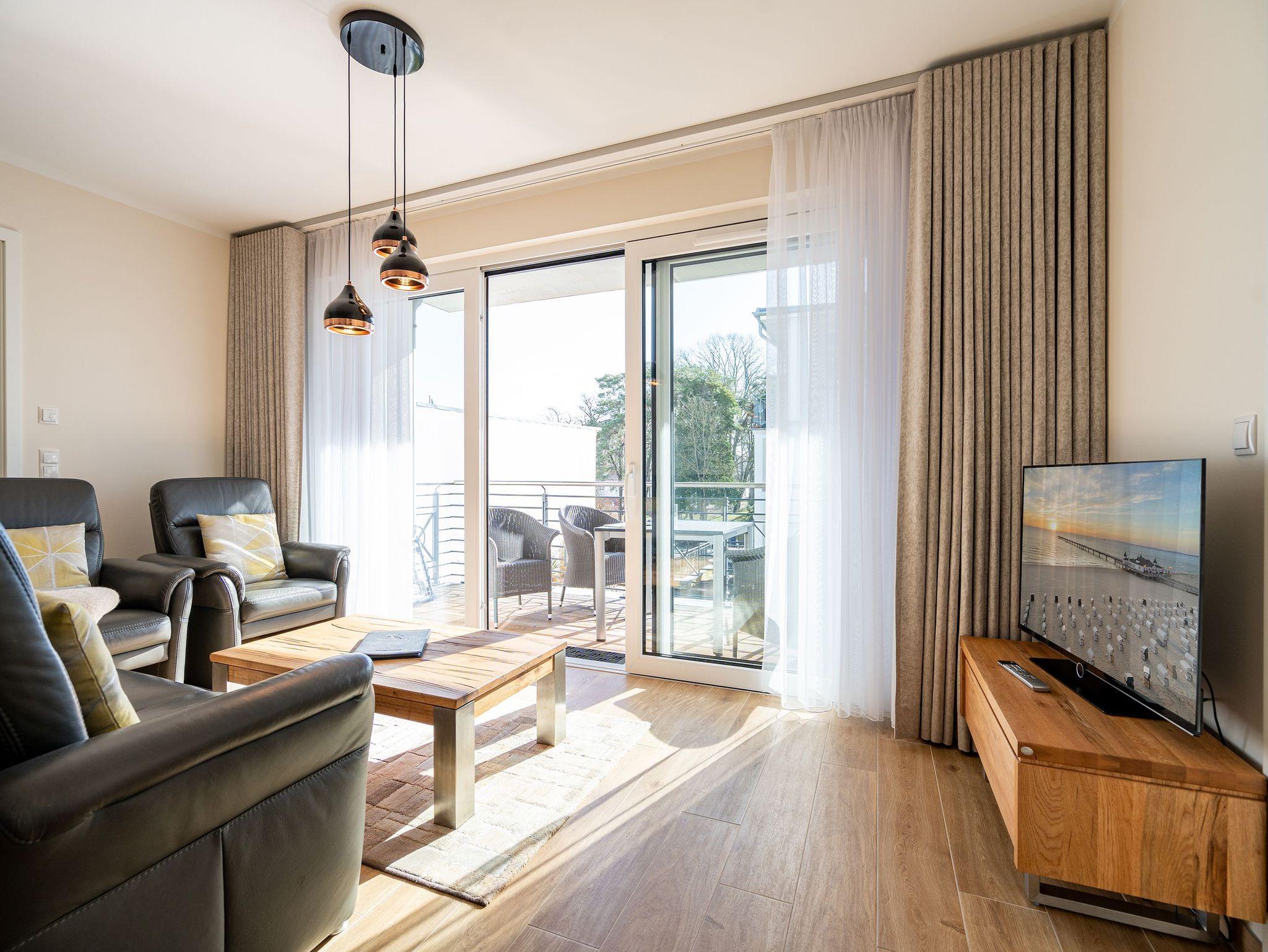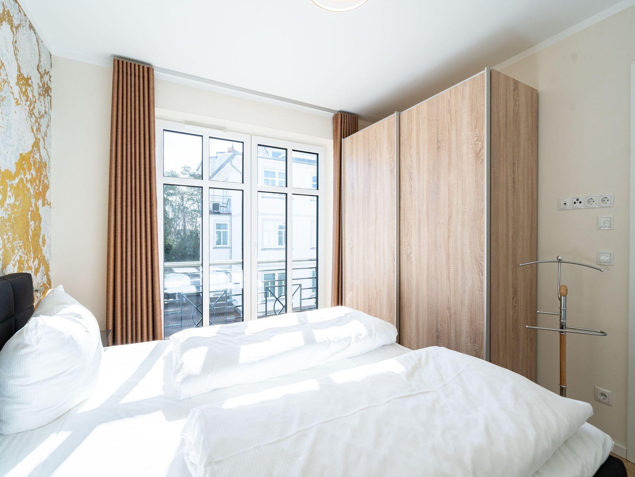 Stilvolles Appartement Nr. 8 in Ahlbeck mit Balkon, Sauna und moderner Ausstattung, nur 250 m vom Strand entfernt.