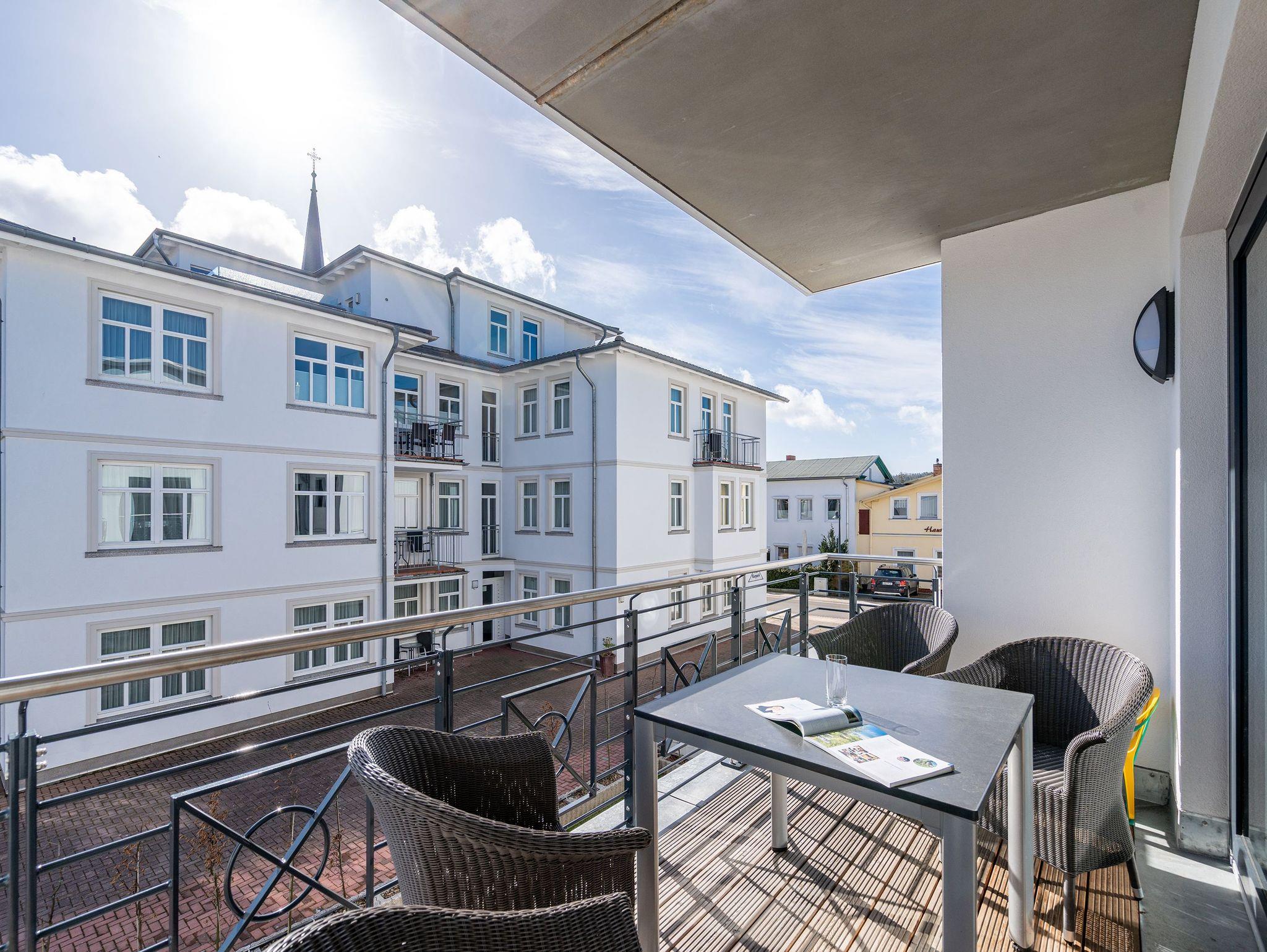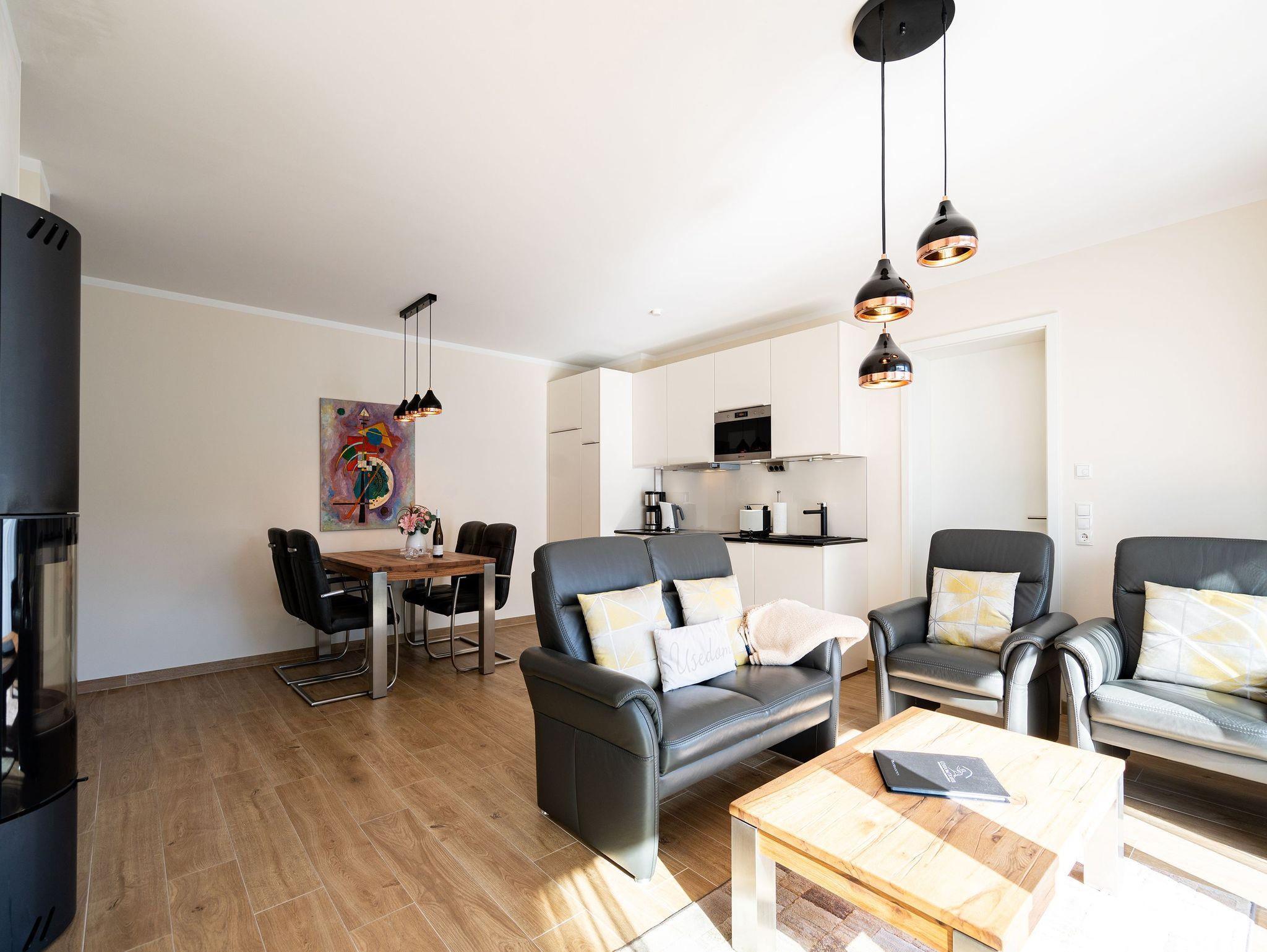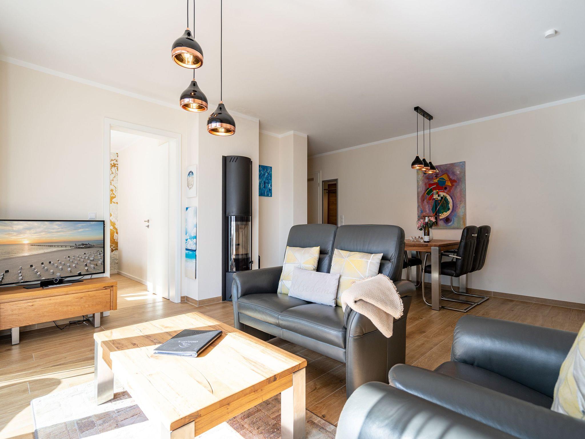 Stilvolles Appartement Nr. 8 in Ahlbeck mit Balkon, Sauna und moderner Ausstattung, nur 250 m vom Strand entfernt.