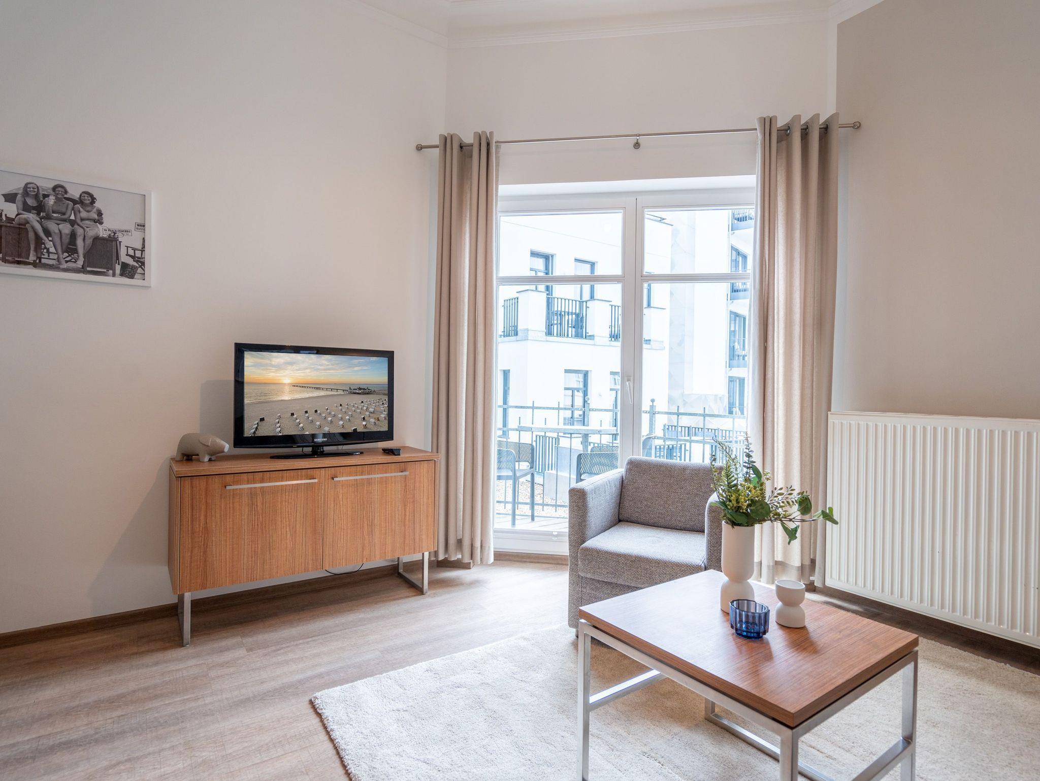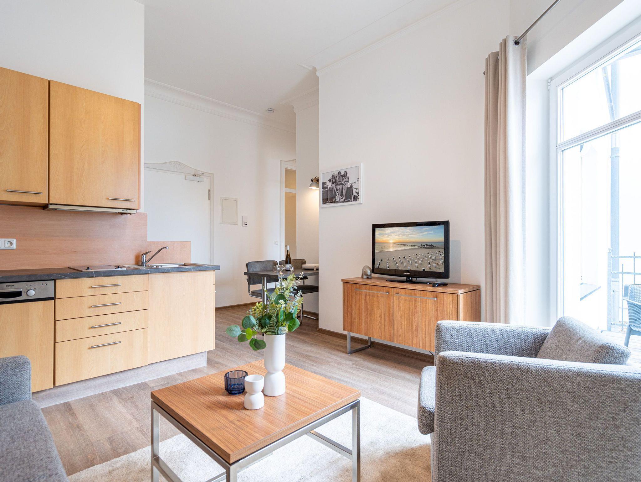 Komfortable 2-Raum-Ferienwohnung mit Balkon nahe Ahlbecker Seebrücke und Strand, ideal für entspannte Tage zu zweit.