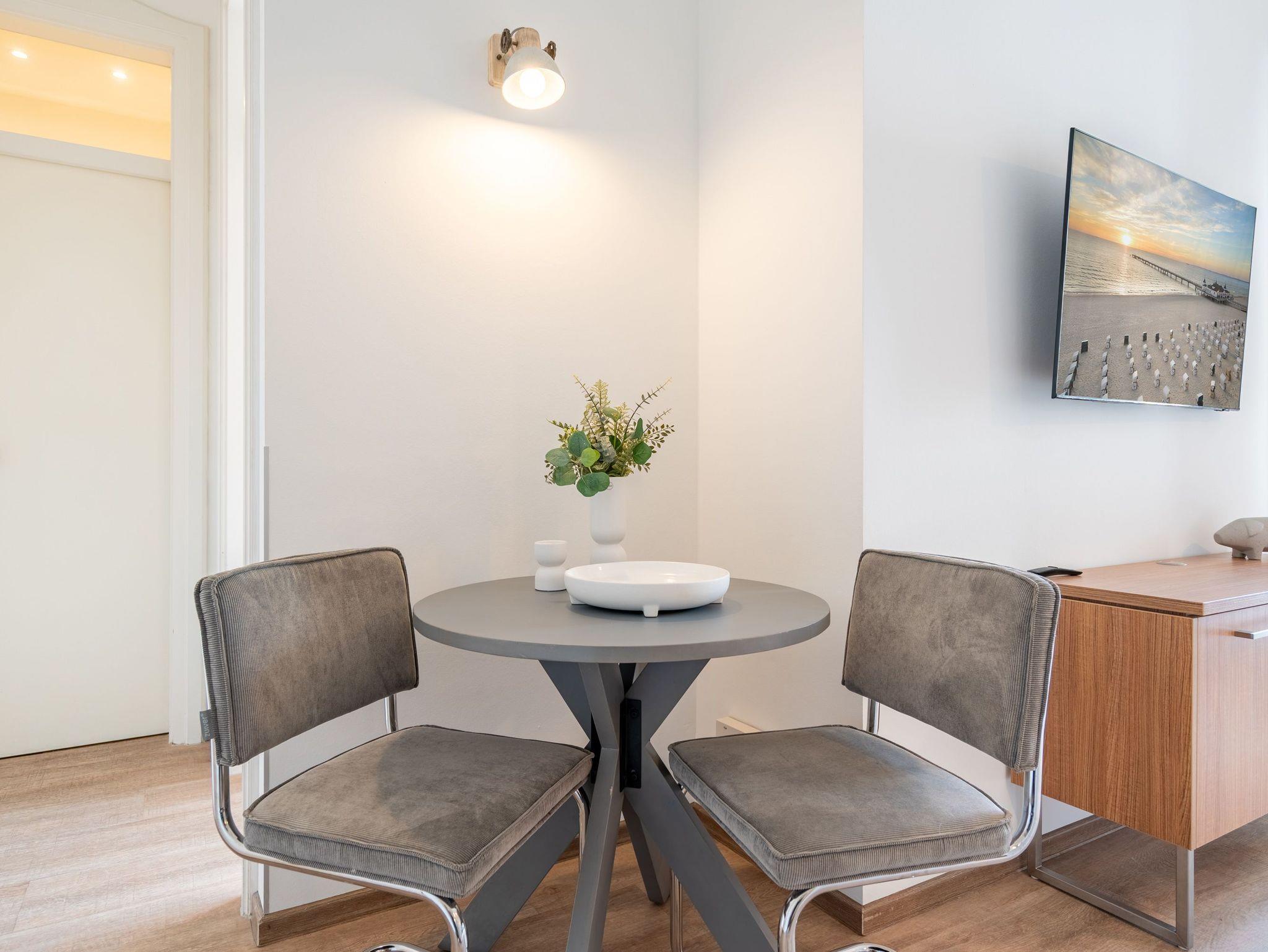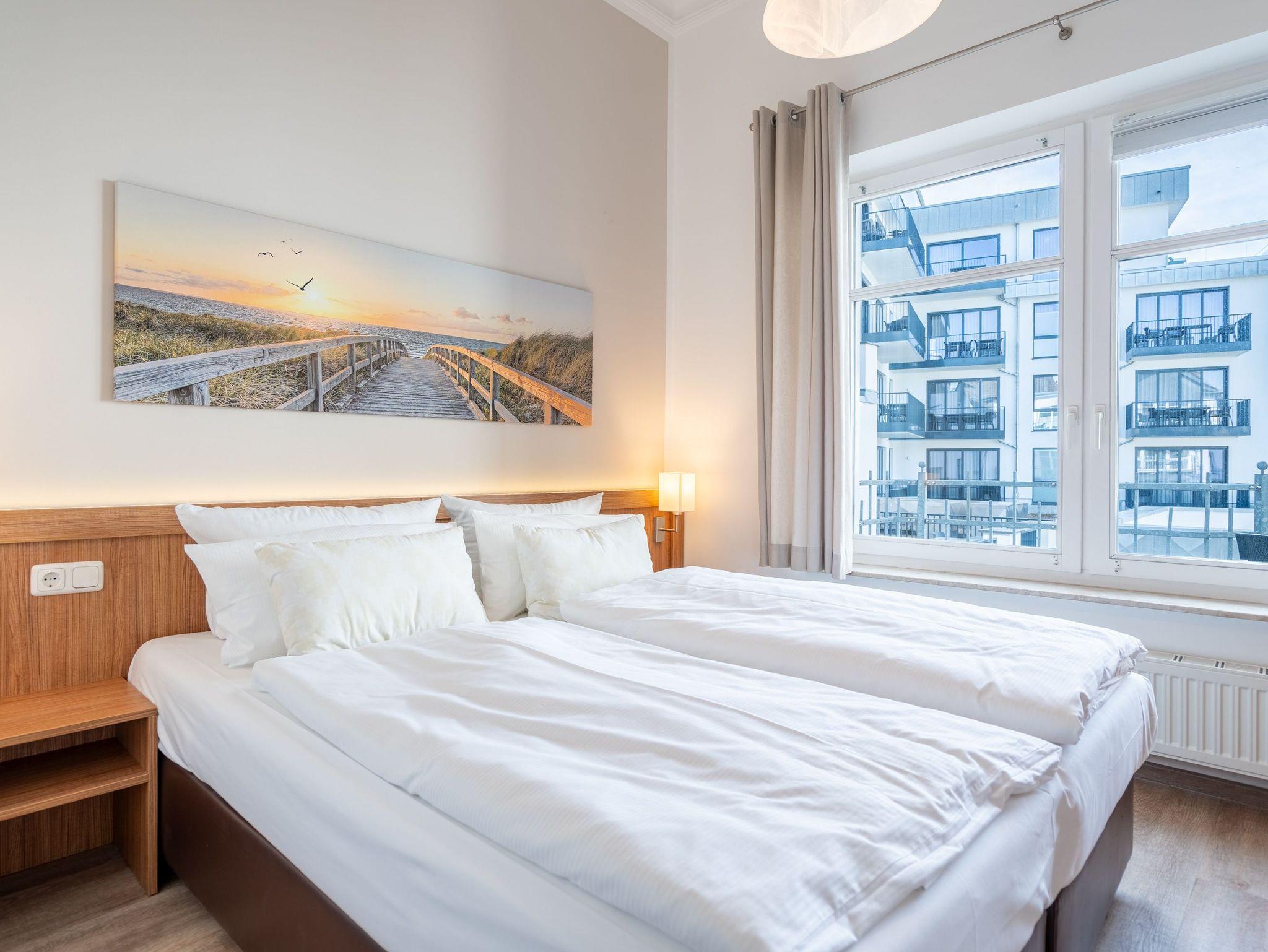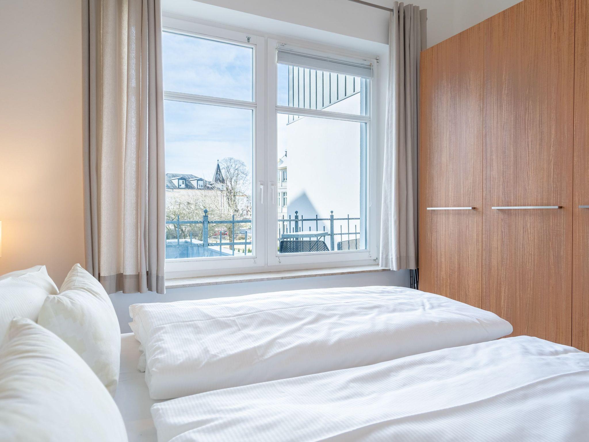Die 2-Raum-Ferienwohnung Nr. C07 in der Villa Seedüwel bietet auf 38 qm komfortablen Platz für zwei Personen und befindet sich im 1. Obergeschoss. Der offene Wohnbereich ist mit einer praktischen Küchenzeile ausgestattet, die ein Induktionskochfeld, eine Mikrowelle und einen Kühlschrank mit Gefrierfach umfasst. Ein Essplatz für zwei Personen, eine gemütliche Sitzgruppe und ein Flat-TV sorgen für eine angenehme Atmosphäre. Vom Wohnbereich aus gelangen Sie auf den Süd-Ost-Balkon, der zum Entspannen einlädt. Das Schlafzimmer ist mit einem Doppelbett (1,60 m x 2,00 m) und einem Kleiderschrank eingerichtet. Das Bad verfügt über eine Dusche und ein Waschbecken, zudem gibt es ein separates WC. Ein Stellplatz in der Tiefgarage ( Einfahrthöhe 2,03m) des benachbarten Hauses „Strandterrasse“ ist für Sie reserviert. WLAN steht Ihnen kostenfrei zur Verfügung.