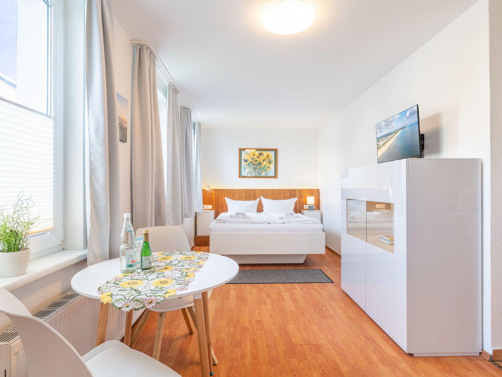 Gemütliches 27 m² Appartement nahe dem Ostseestrand in Ahlbeck mit moderner Ausstattung und Gemeinschaftssitzecke.