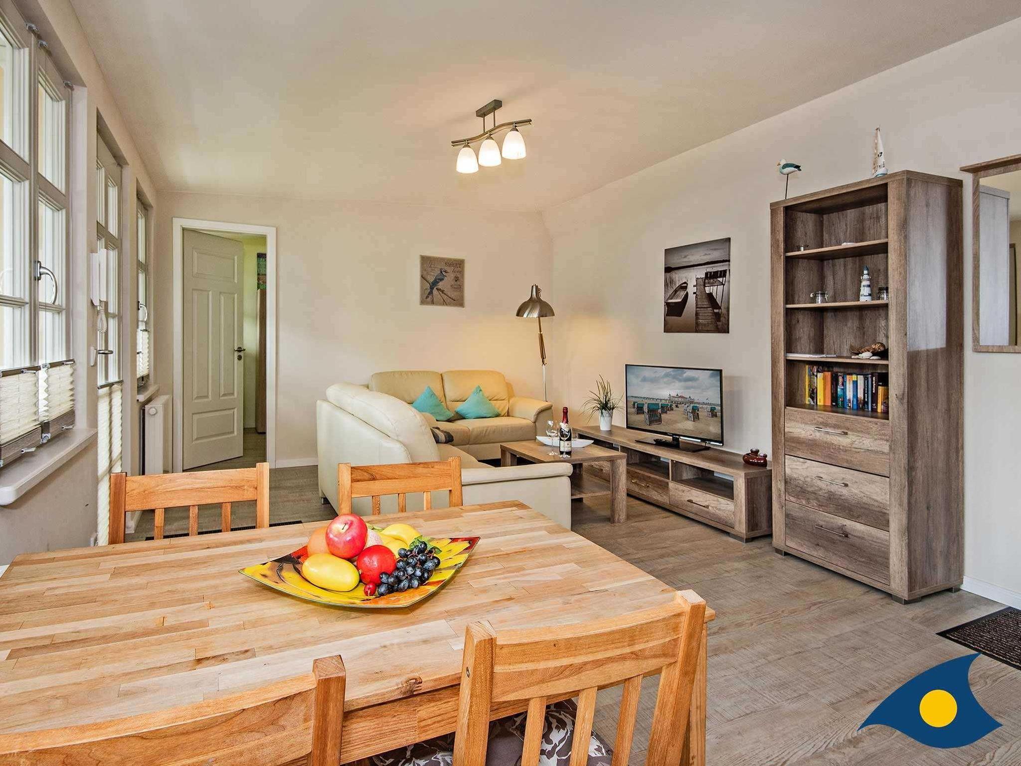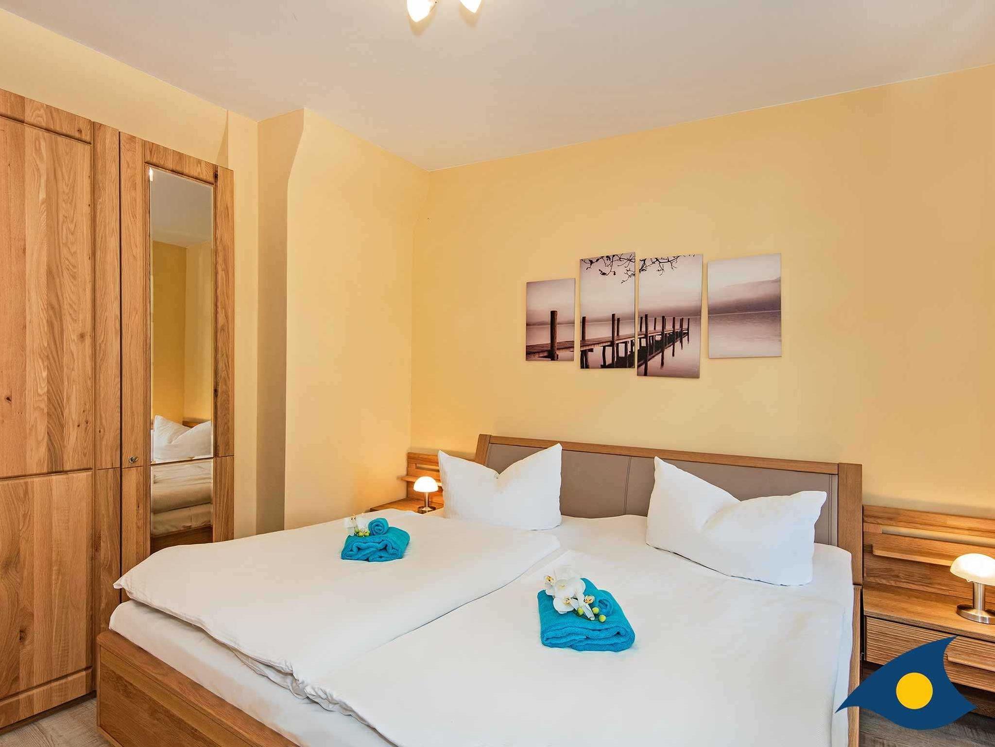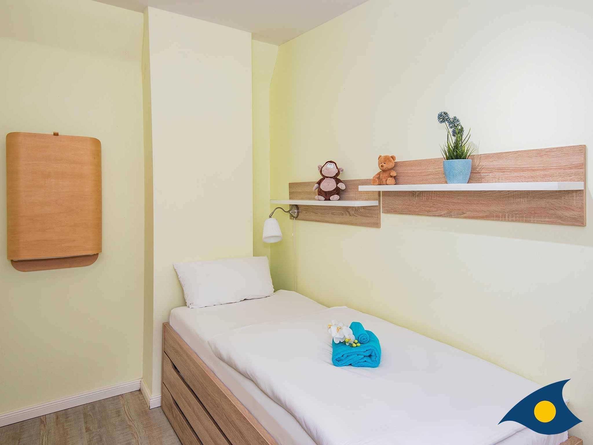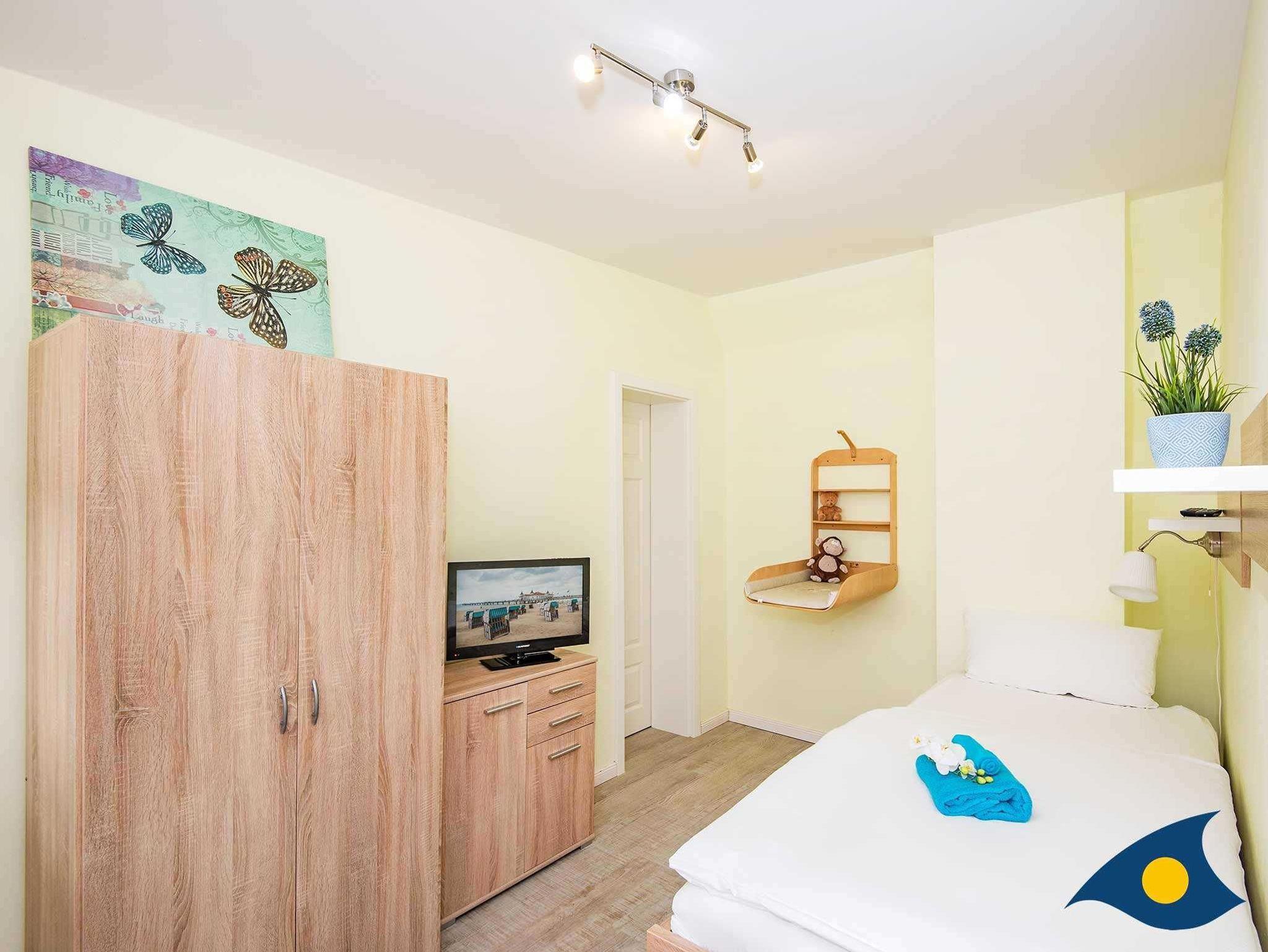 Dieses idyllische und moderne Dreiraumappartement wird Sie begeistern. Auf 60 Quadratmeter Wohnfläche erwartet Sie ein großzügiger Wohnraum für gemütliche Fernsehabende oder Spielrunden mit den Kleinen (Spielesammlung vorhanden), ein Elternschlafzimmer mit einem großen Doppelbett und genug Ablagemöglichkeiten für Ihre persönlichen Dinge, ein 2. Schlafzimmer mit einem bequemen Tandembett und Platz für zwei Schlafgäste, die vollausgestattete Küchenzeile mit einem Essplatz am Fenster und ein geschmackvolles Badezimmer mit WC und Dusche. Zusätzlich steht ein wohnungseigenes Kinderbett für die allerkleinsten Gäste zur Verfügung.