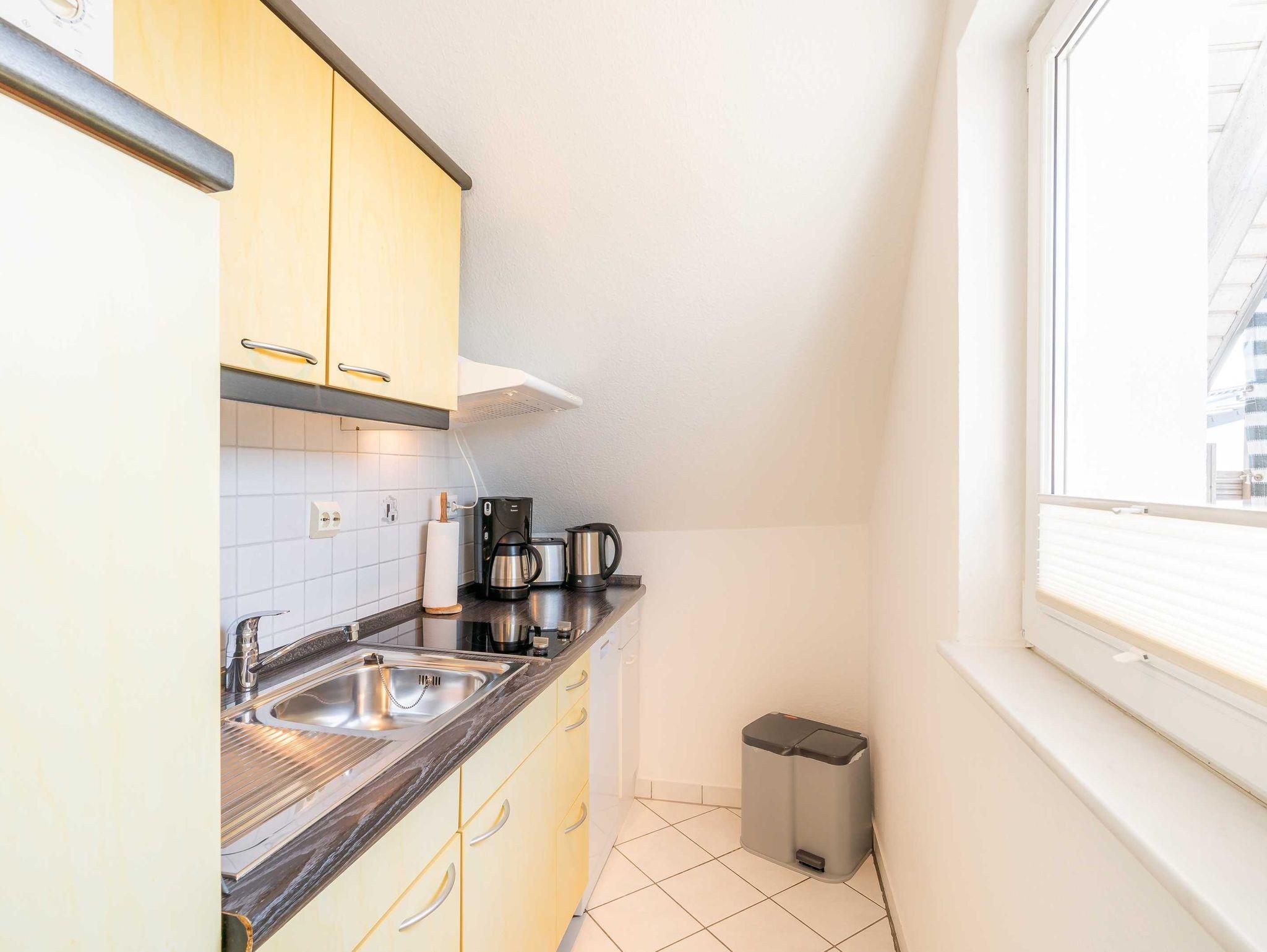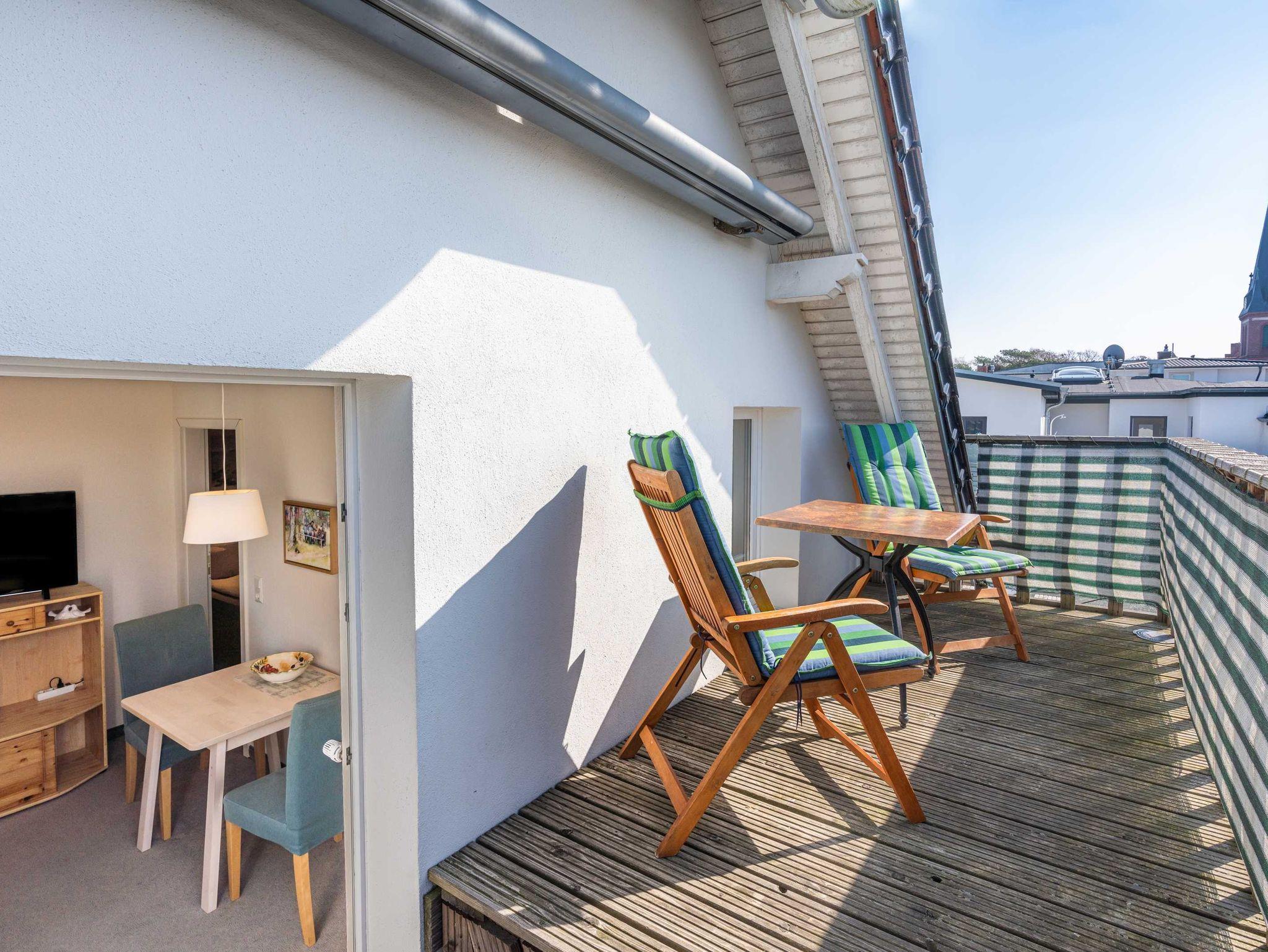 Die 30 m² große gemütliche Ferienwohnung im Dachgeschoss bietet Platz für 2 Personen. Sie verfügt über ein Schlafzimmer, einer Küche und einem Wohn- und Essbereich. Highlight dieser Wohnung ist die Dachterrasse, die einen schönen Ausblick über das Seebad bietet.