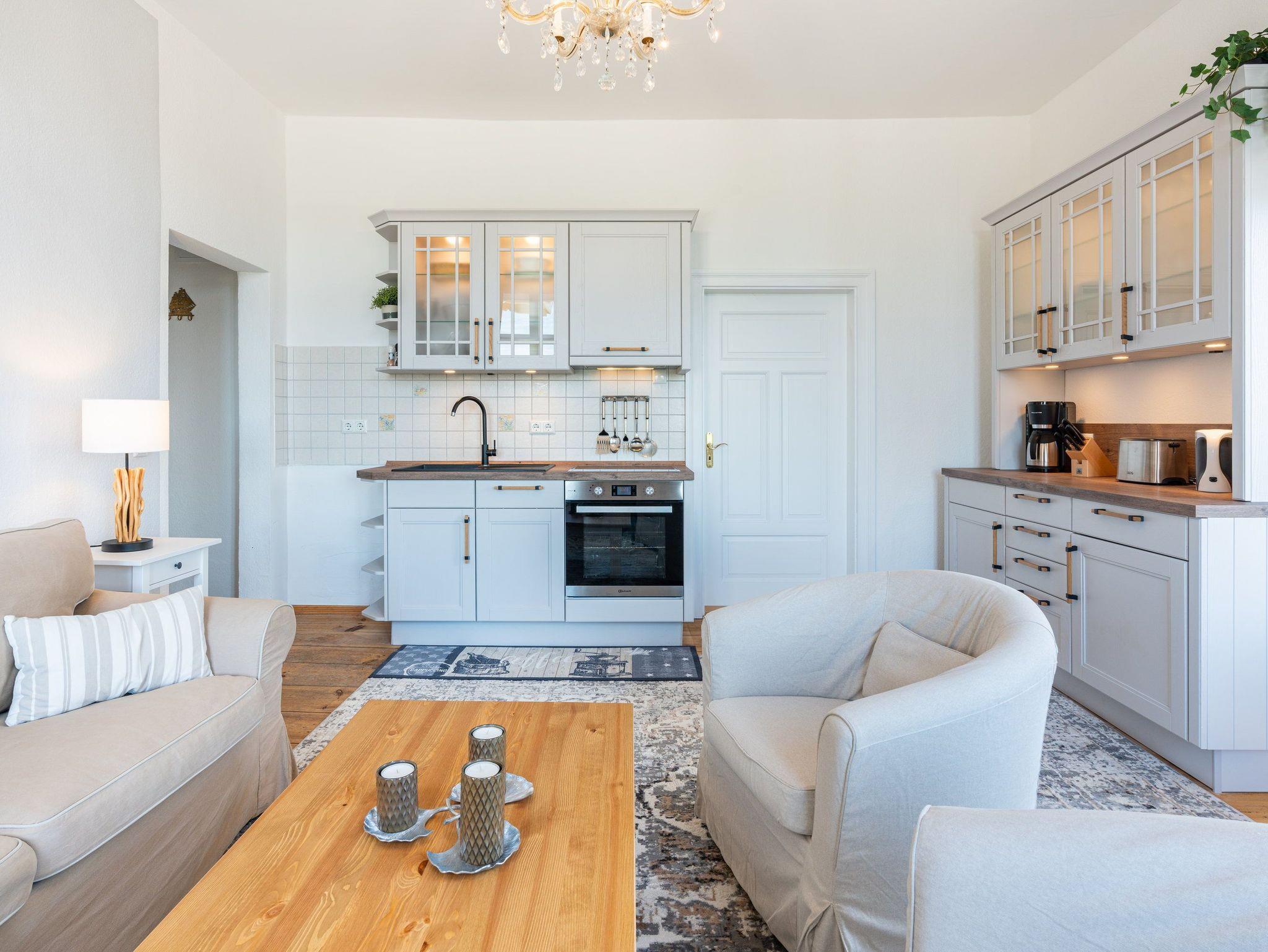 Genießen Sie mit bis zu 4 Personen Ihre wohlverdiente Urlaubszeit in dem neu möblierten 2-Raum-Appartement auf 51 Quadratmetern im 1. Obergeschoss.