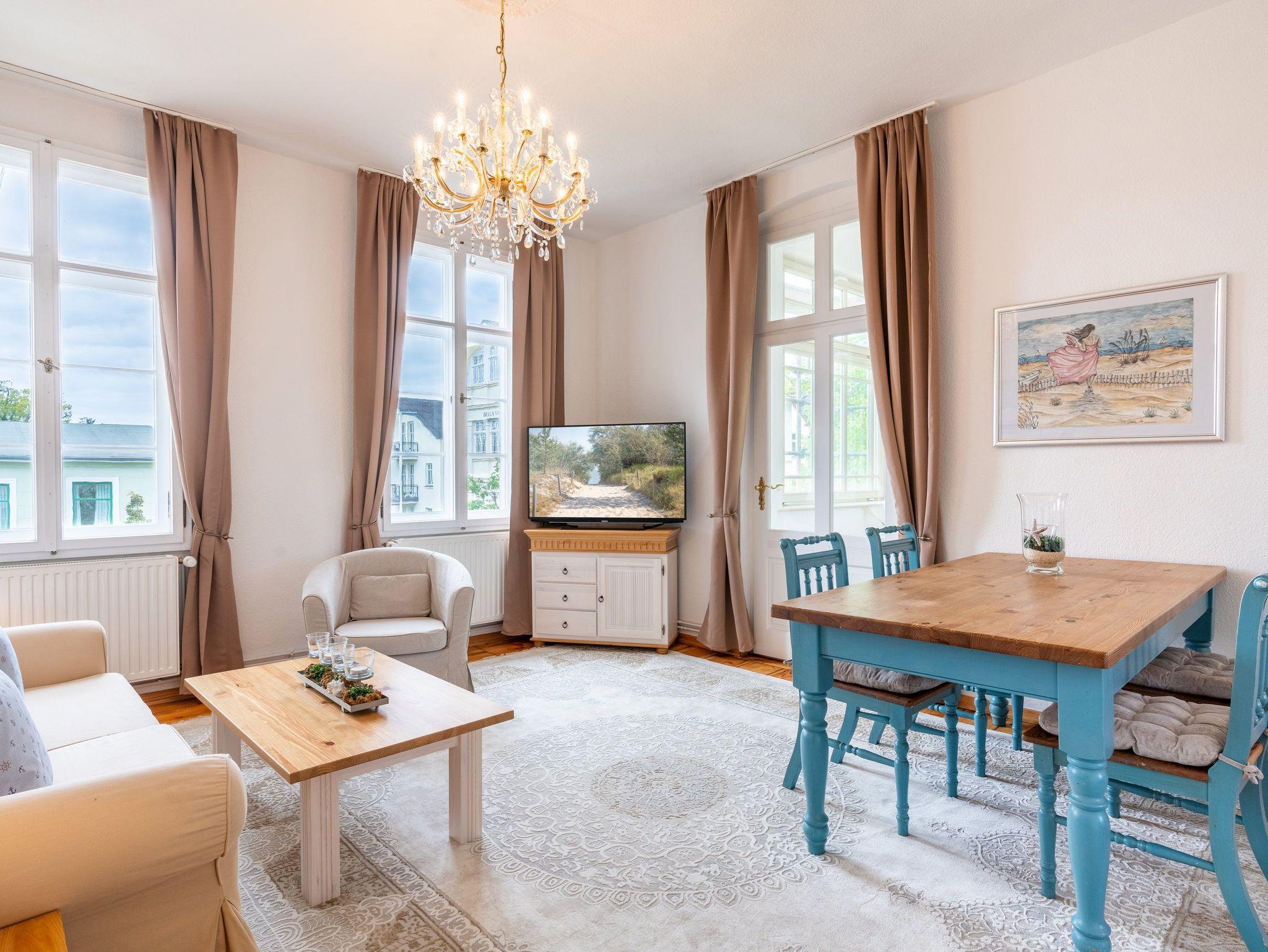 Großzügiges 3-Raum-Appartement im Stil der Bäderarchitektur in Ahlbeck, ideal für erholsame Ferien mit bis zu 6 Personen.